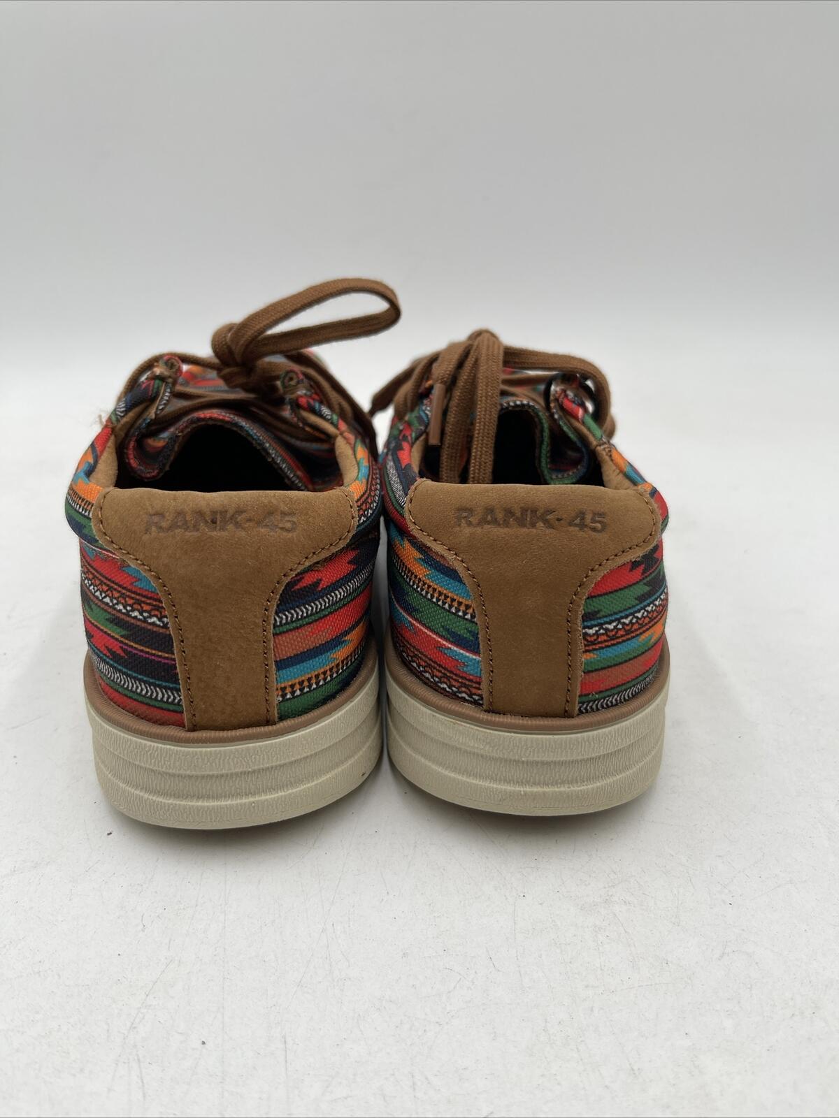 -Bottoms are lightly wornElevate your casual style with these Rank 45 Griffin 3 sneakers. The Southwestern print bison canvas upper material and fabric lining make these shoes comfortable and stylish. The lace-up closure provides a secure fit, while the multicolor design adds a unique touch to your outfit. These sneakers are perfect for men who want to make a statement with their footwear.