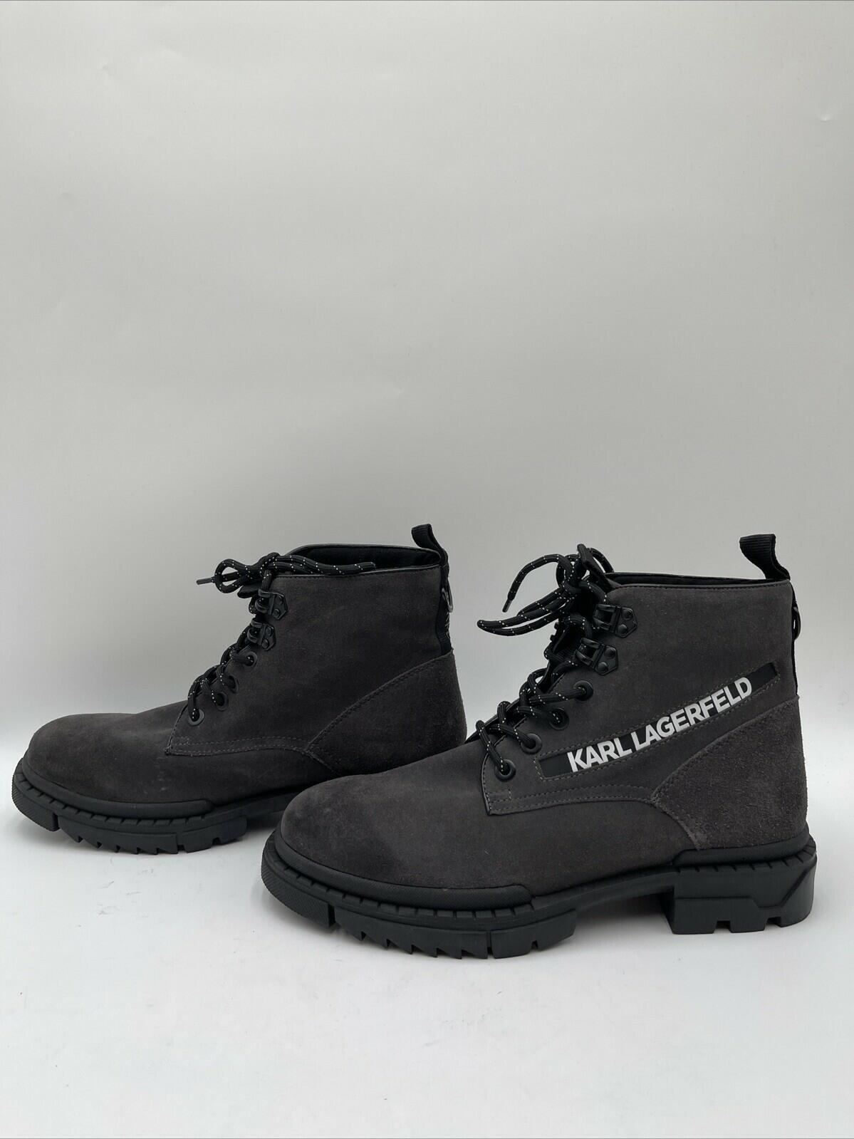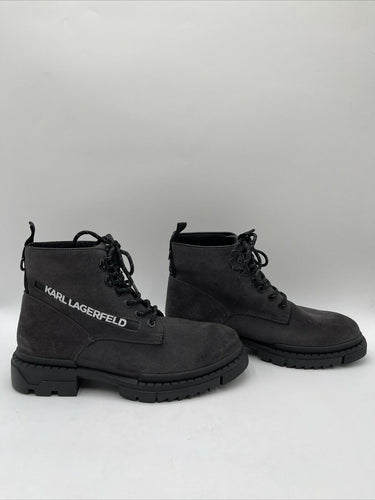 Karl Lagerfeld Logo Print Gray Suede Leather Lace Up Combat Boots Men’s 10M/43 - Very Good