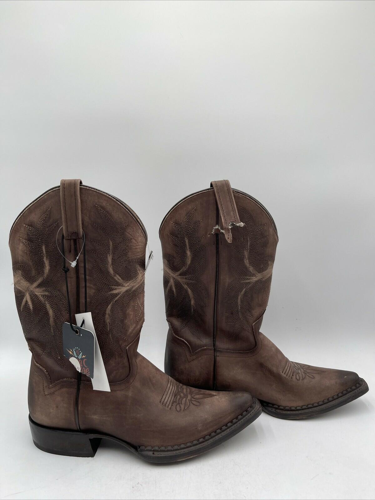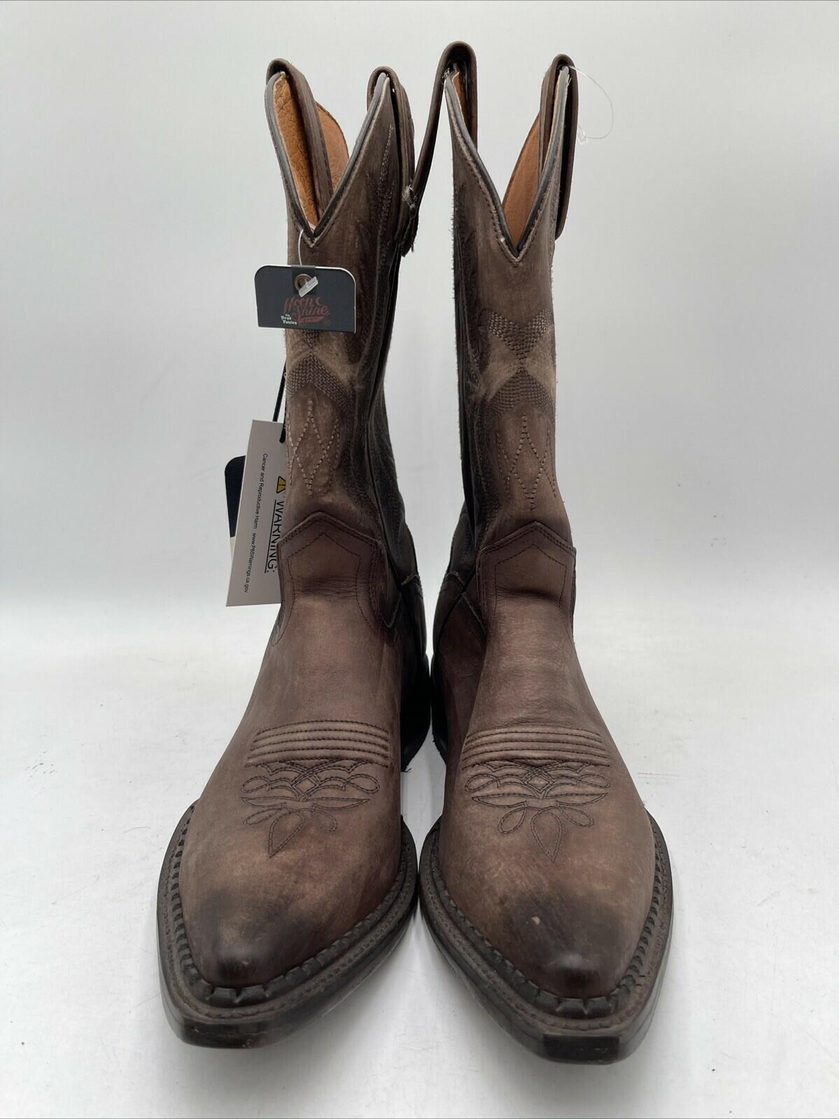 Moonshine Spirit LARDIN Brown Leather Snip Toe Pull On Western Boots Men’s 9D - Very Good - Ufashion