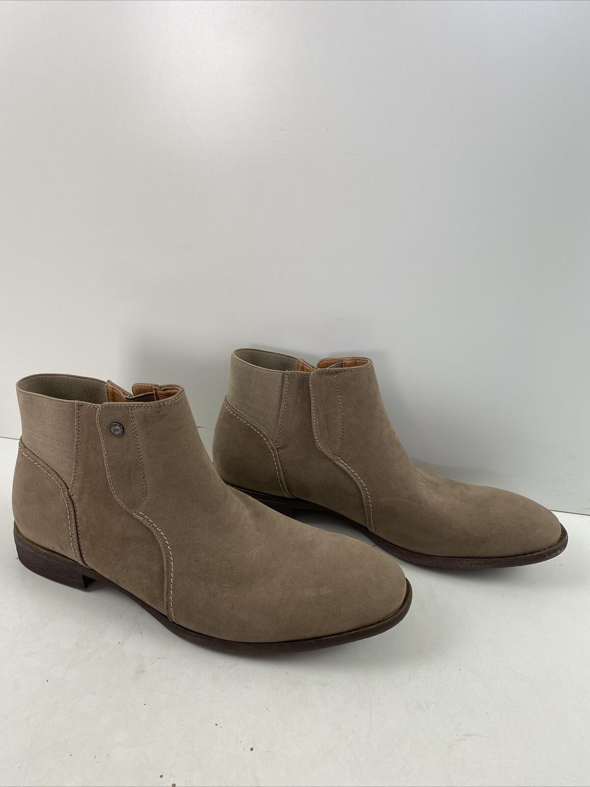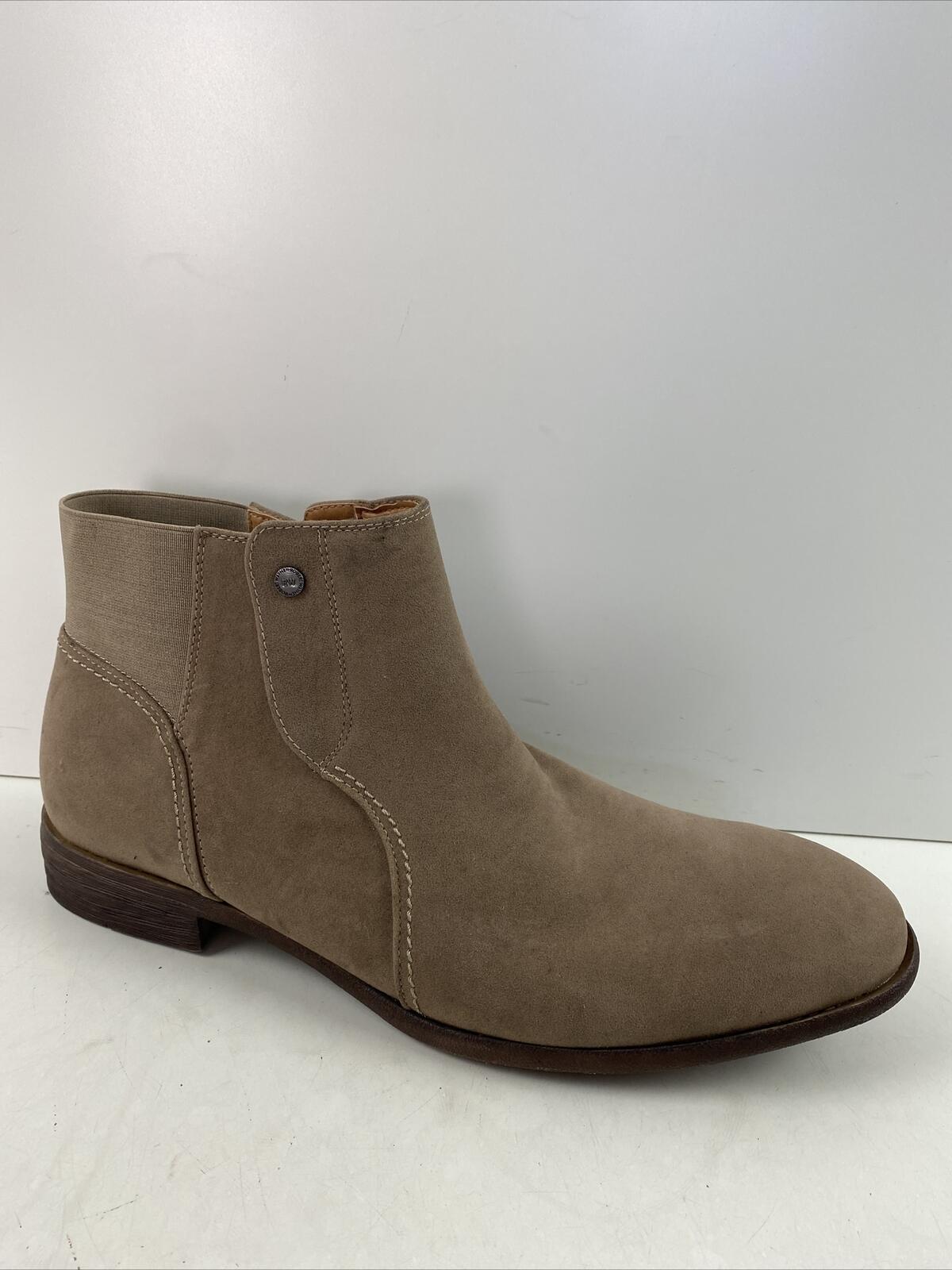 RW by Robert Wayne Beige Faux Leather Round Toe Side Zip Ankle Boots Men’s 13 D