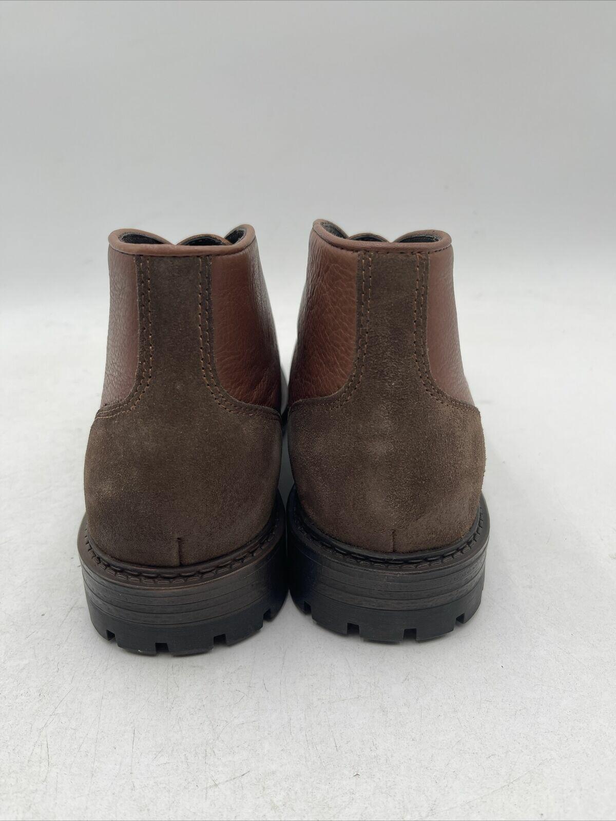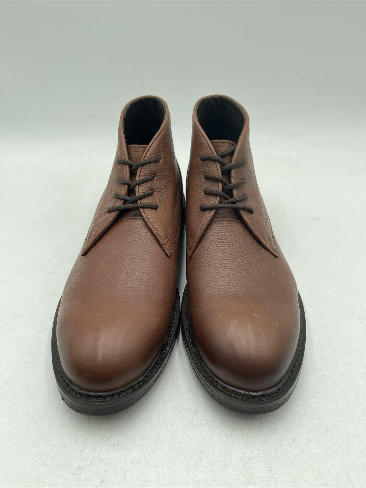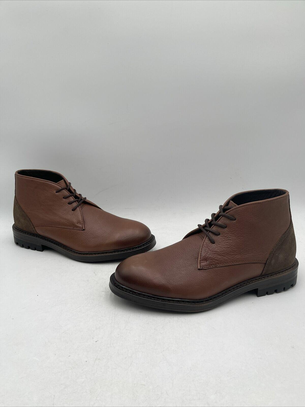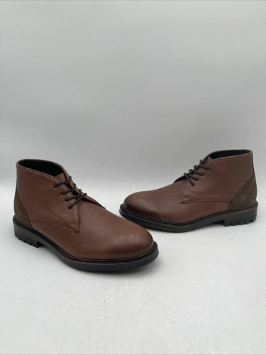 -Bottoms are barely wornElevate your style with these Vince Camuto Men's Leandro Lace Up Boots in a rich cognac/mocha color. Crafted from premium leather, these boots feature a lace-up closure for a secure fit. The boots are designed with a classic style in mind, making them perfect for any occasion.