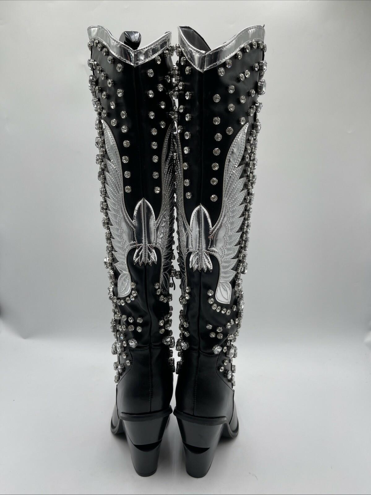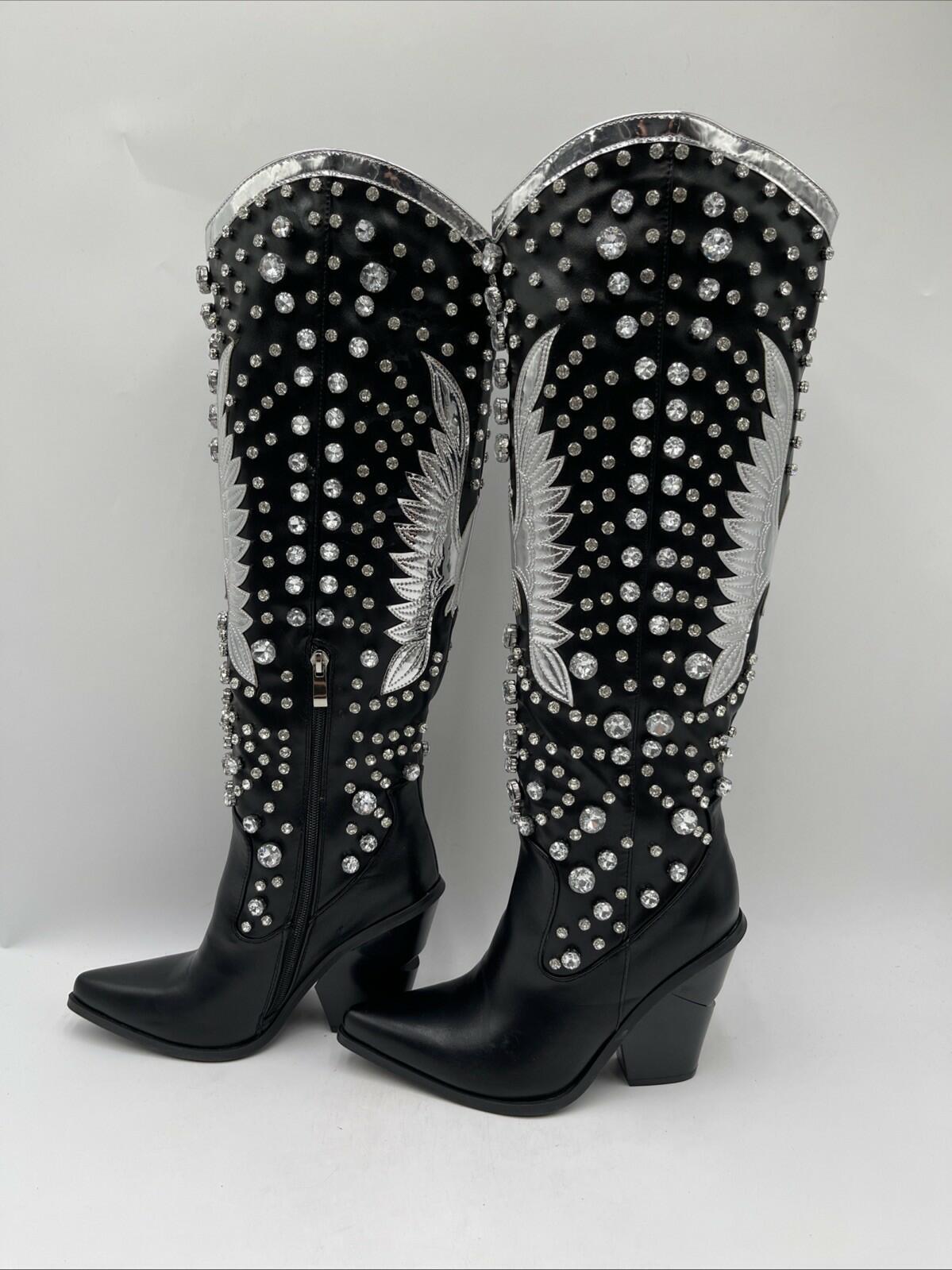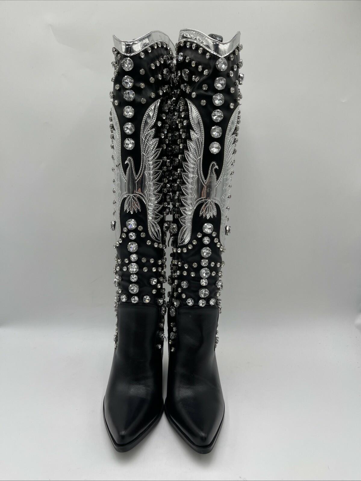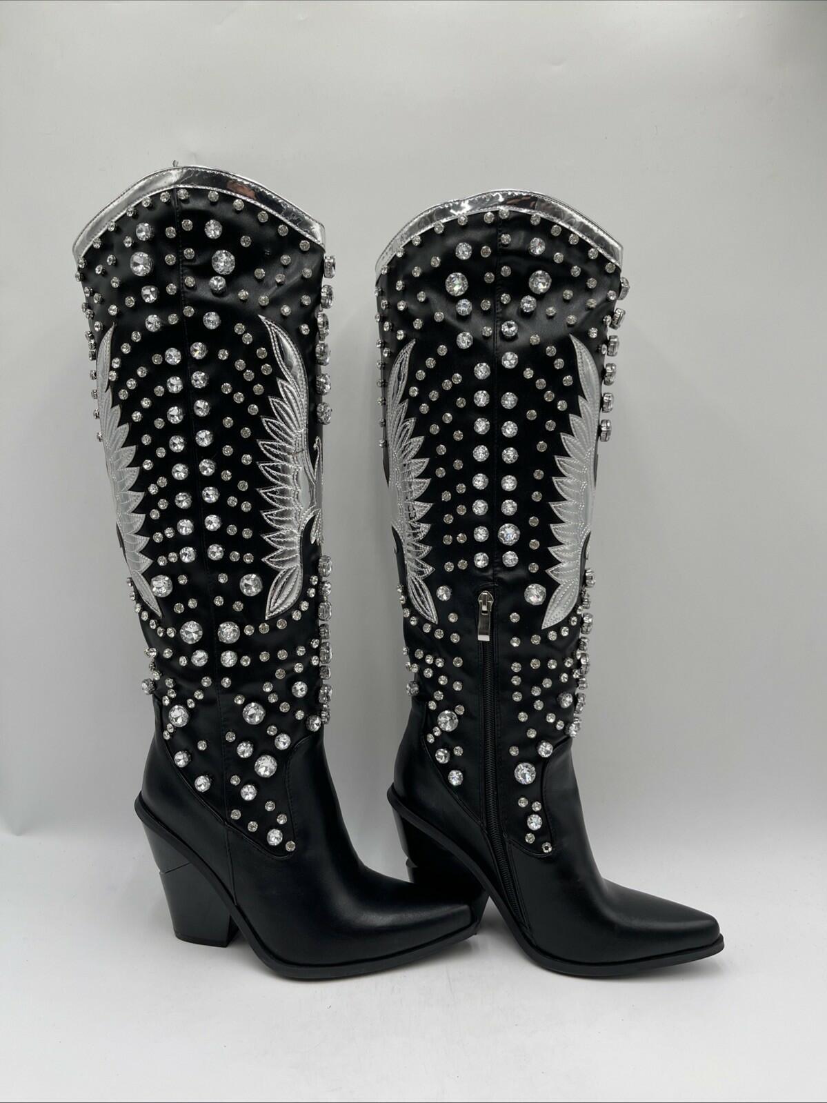 Azalea Wang Women's Upbeat Western Boots Black/Silver Size 7 - Very Good