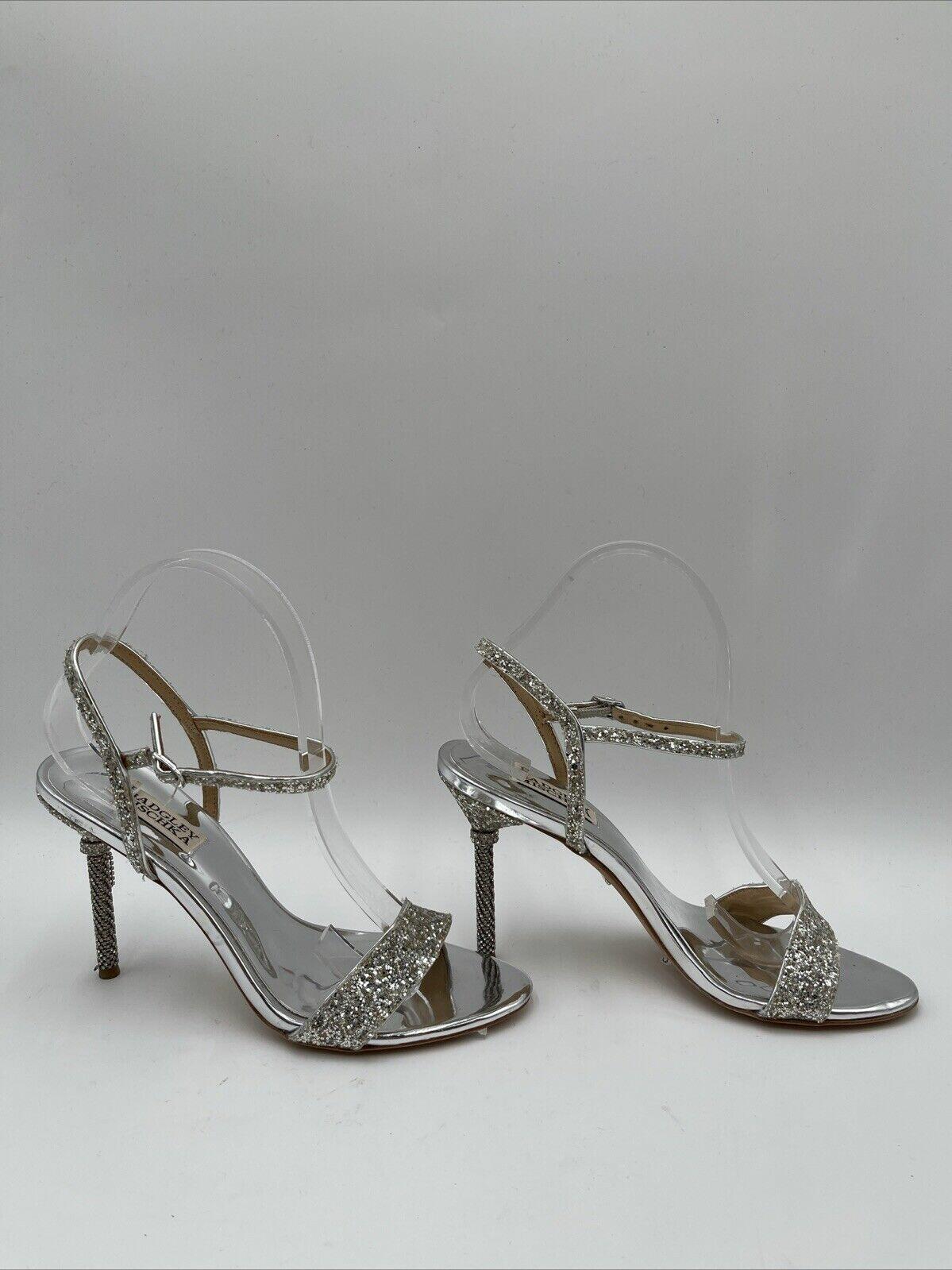 Badgley Mischka Olympia Glitter Women's Heeled Sandals Silver Size 7.5 - Very Good - Ufashion Badgley Mischka Olympia Glitter Women's Heeled Sandals Silver Size 7.5 - Very Good - Ufashion