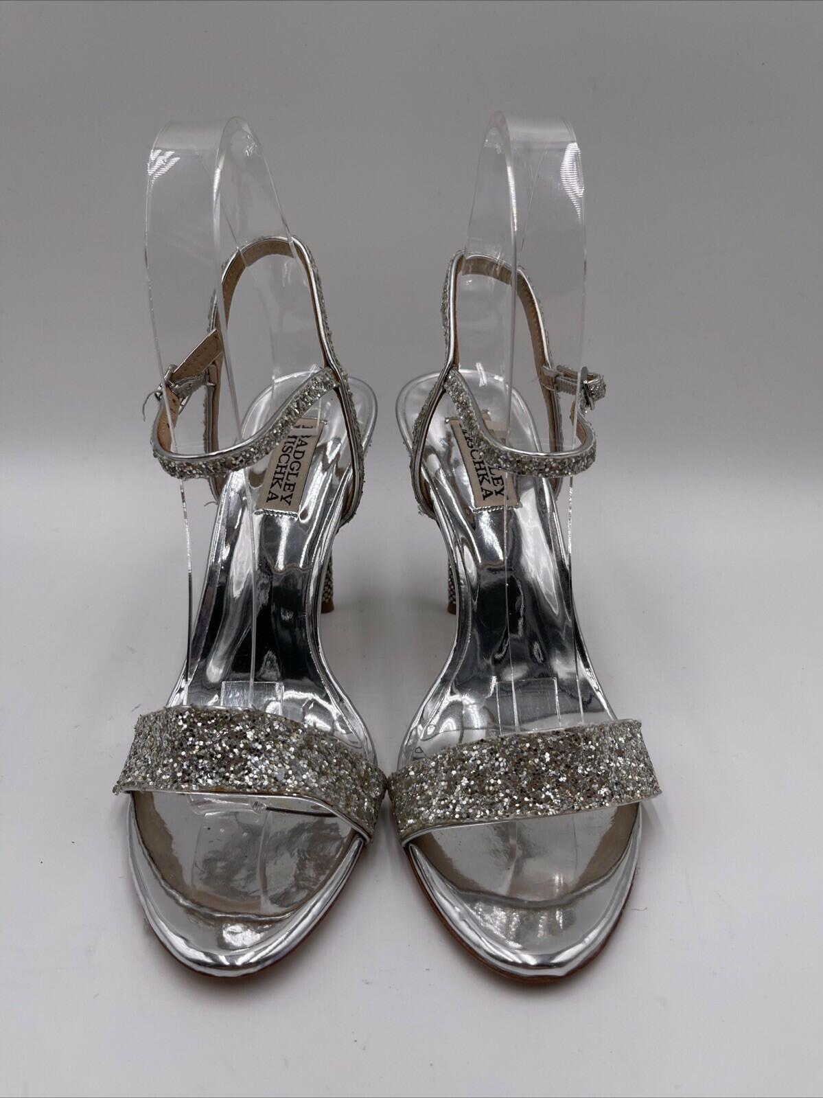 Badgley Mischka Olympia Glitter Women's Heeled Sandals Silver Size 7.5 - Very Good - Ufashion