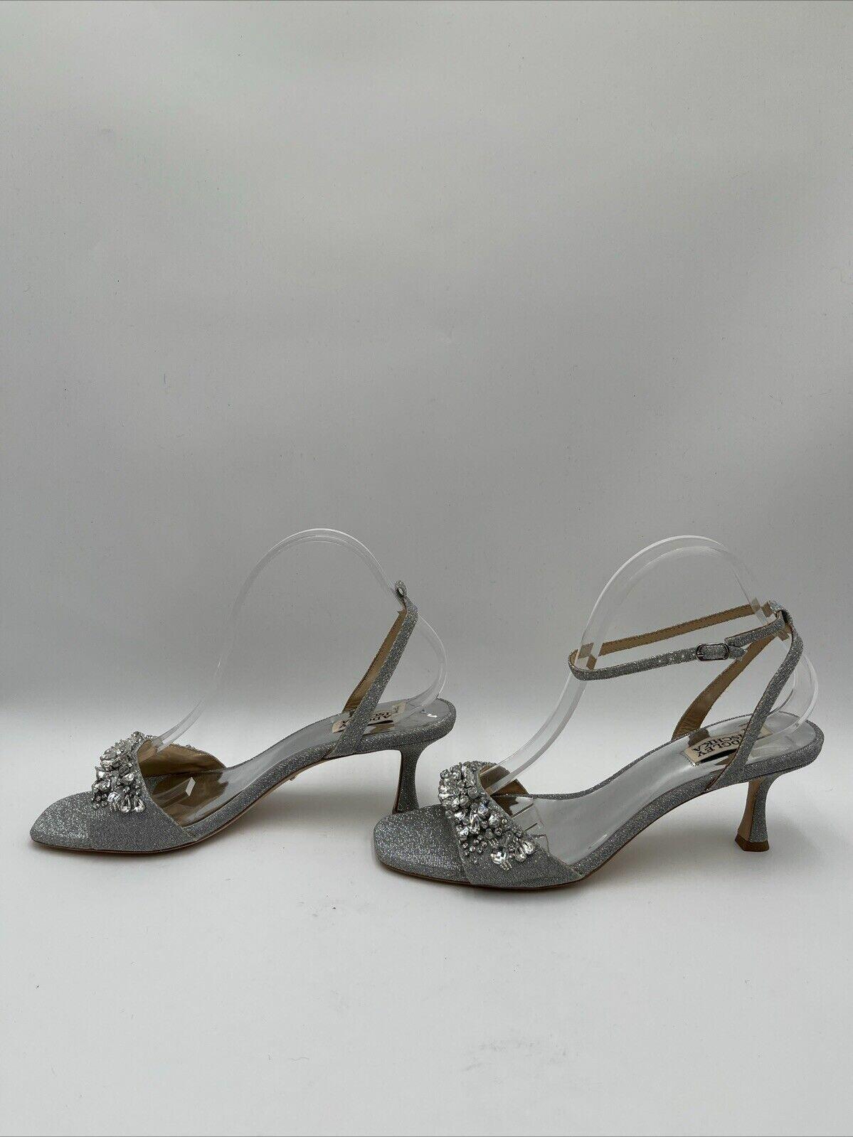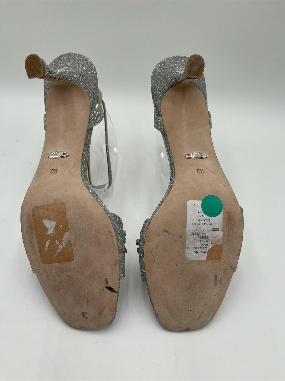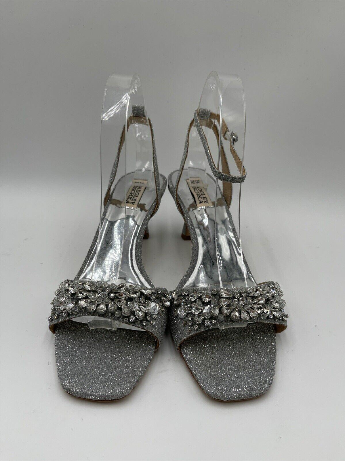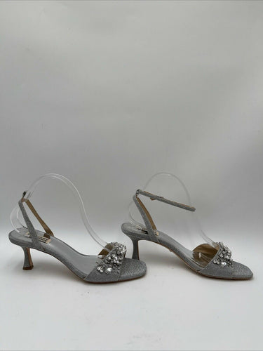 Badgley Mischka Women's Timber Glitter & Embellished Stiletto Sandals Silver 9.5 - Very Good