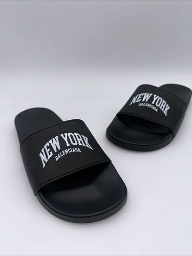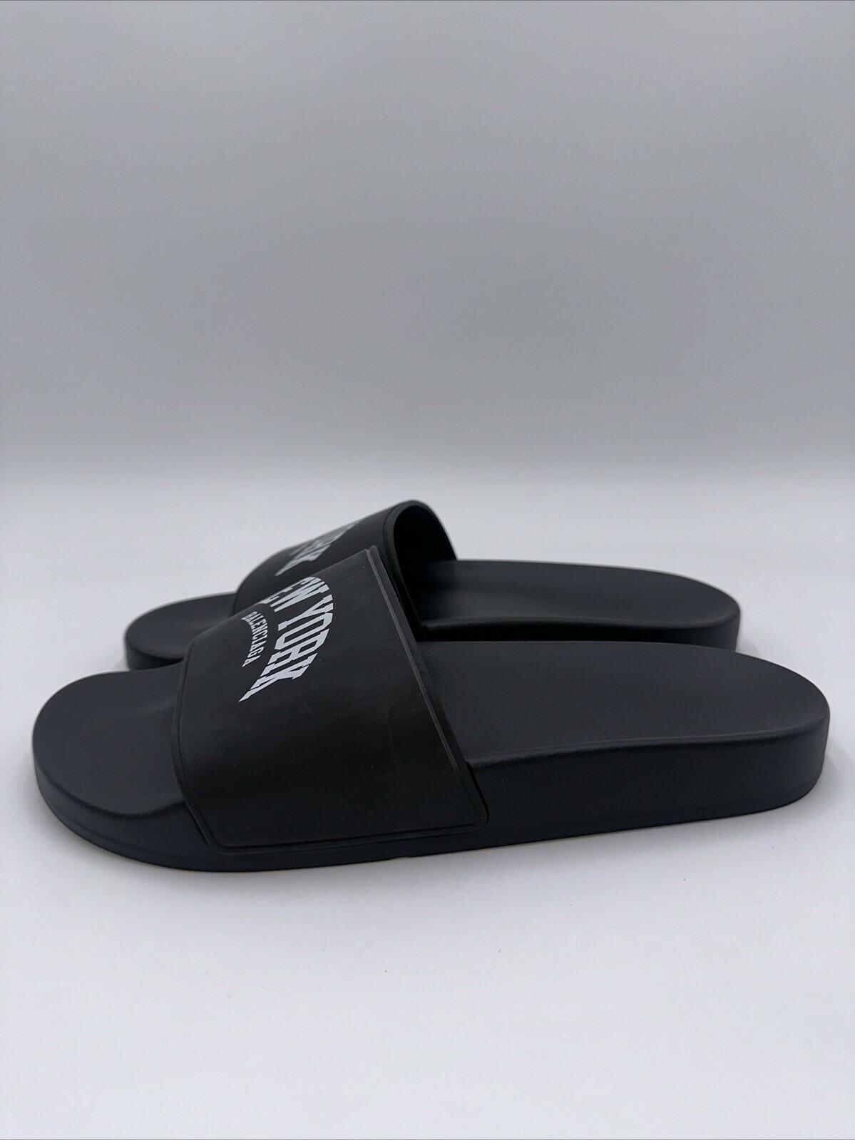 Balenciaga Women’s Black Cities New York Pool Rubber Slide Sandals Size 10 - Very Good