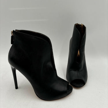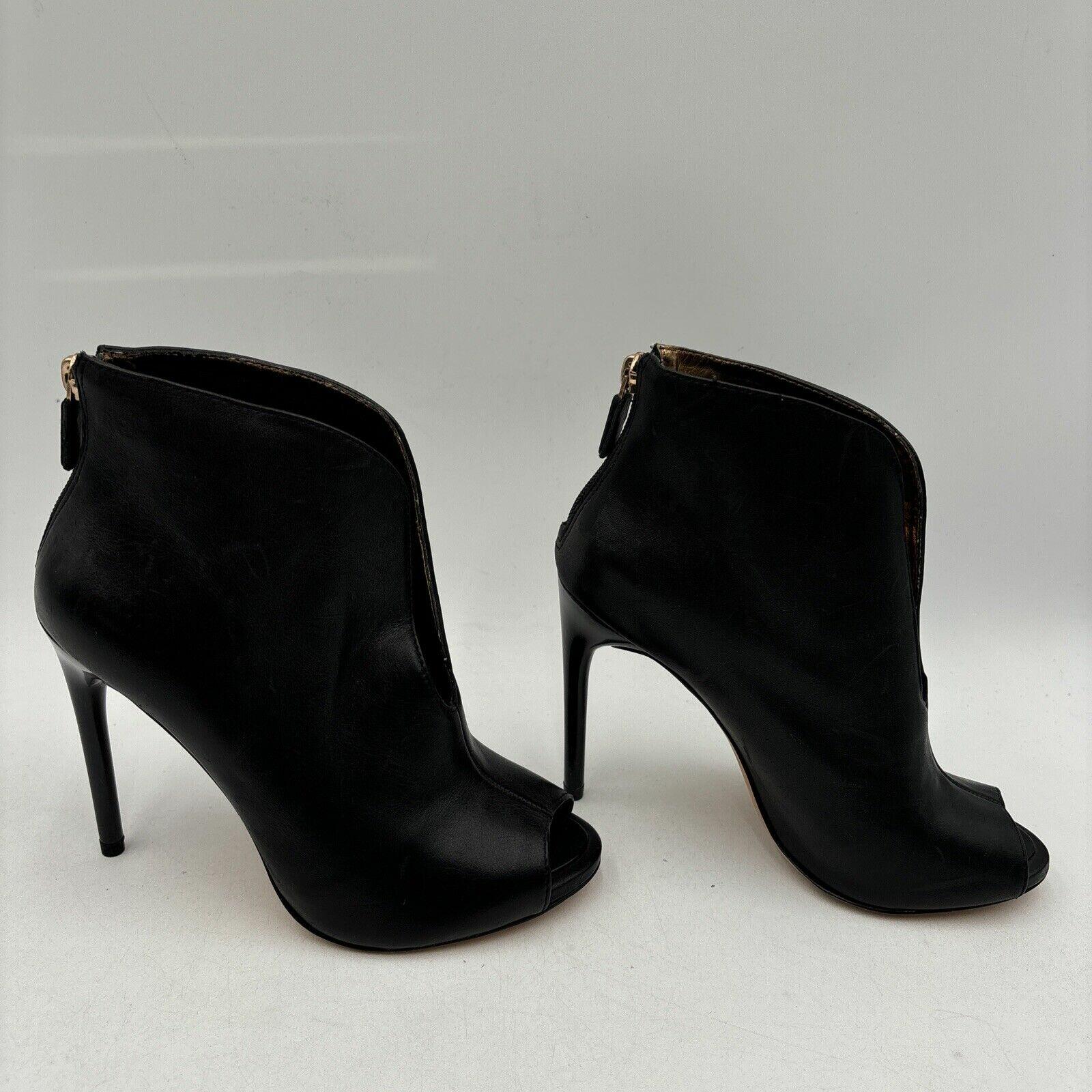 BCBGMaxazria Durres Black Leather Peep Toe Back Zip High Heel Ankle Boots, 6M - Very Good