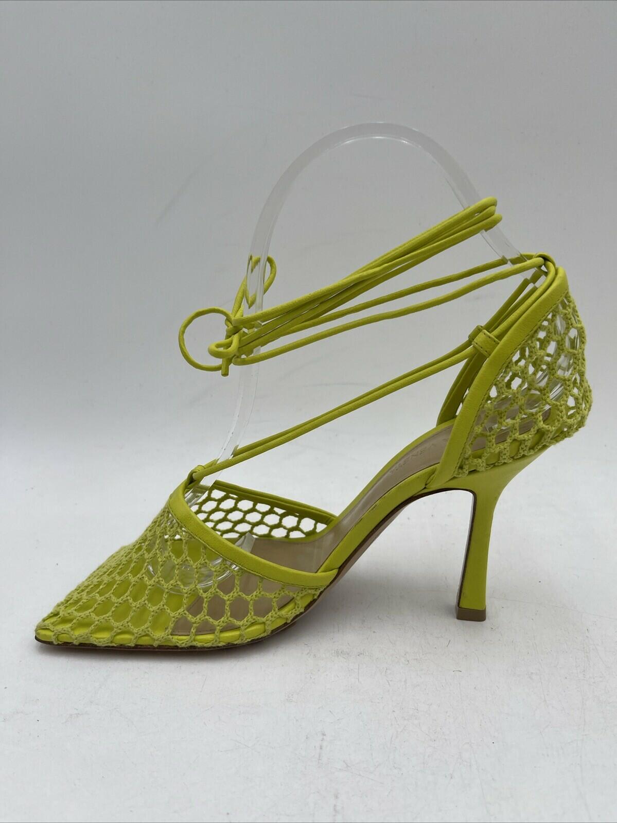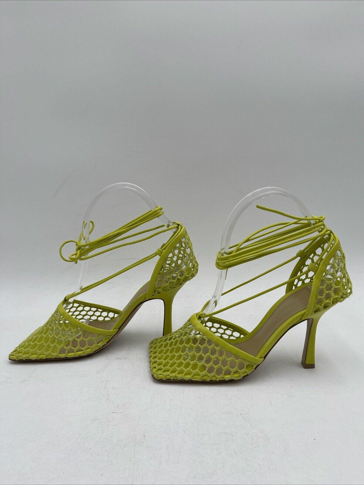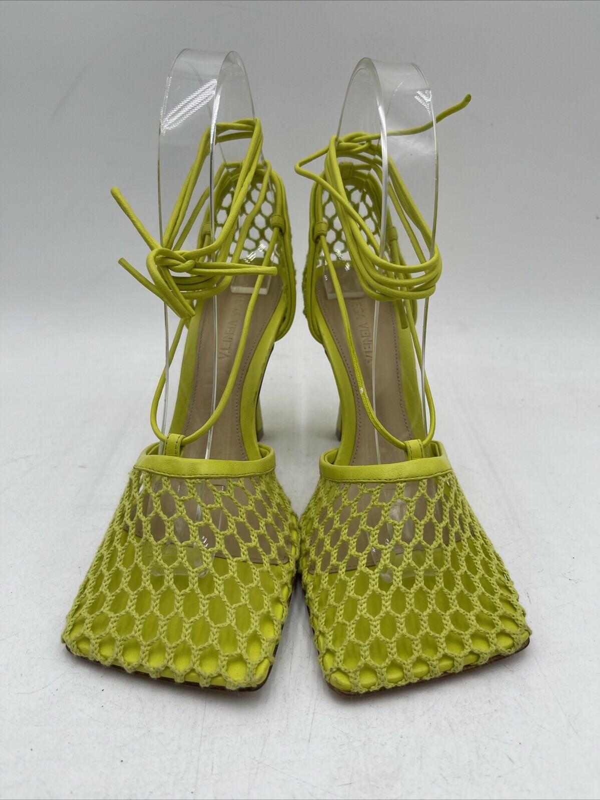 Bottega Veneta Stretch 90mm Mesh Sandals Neon Yellow Leather Ankle Strap Size 37