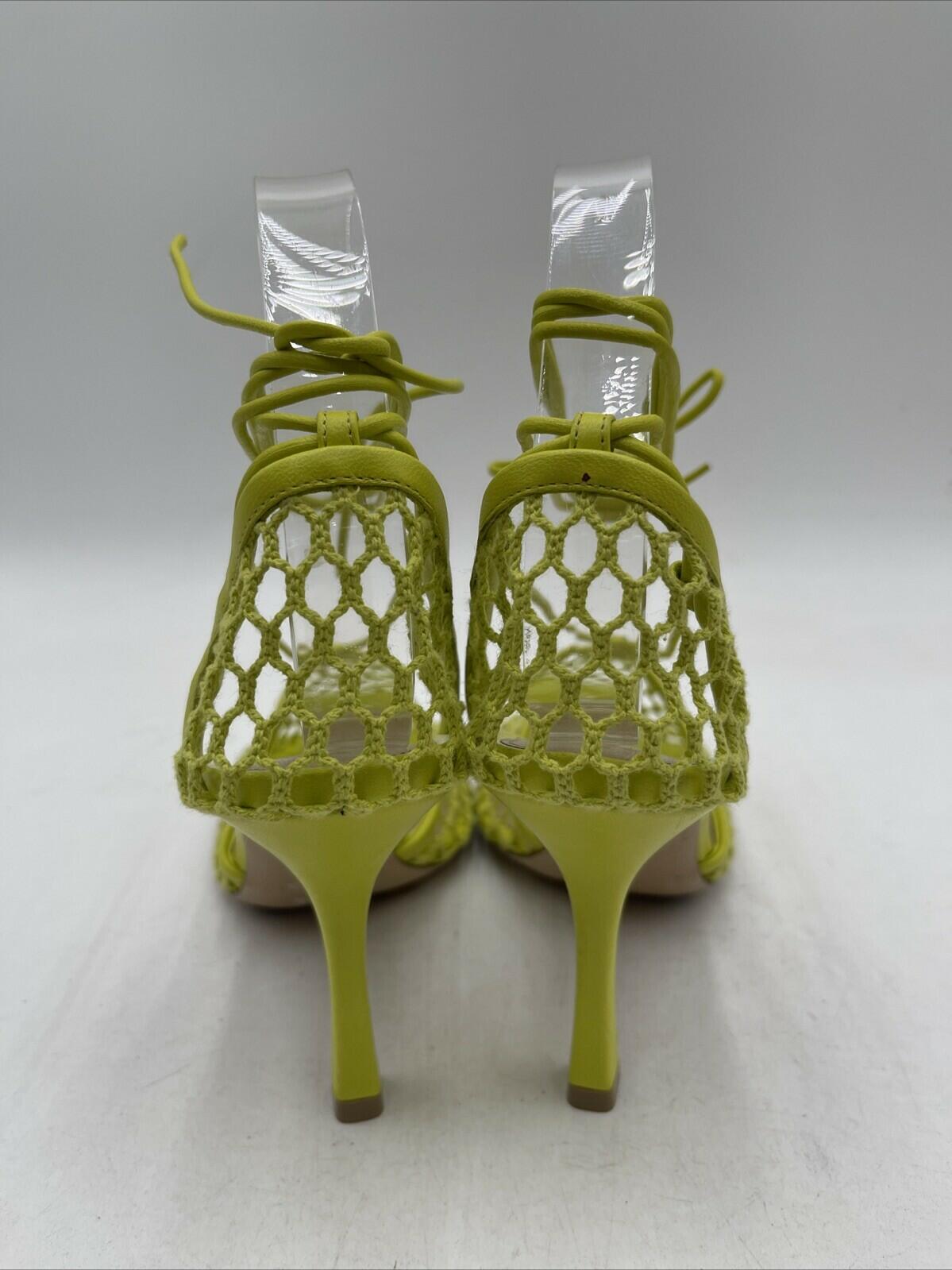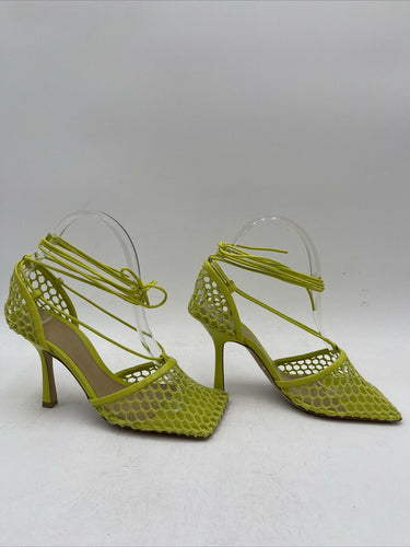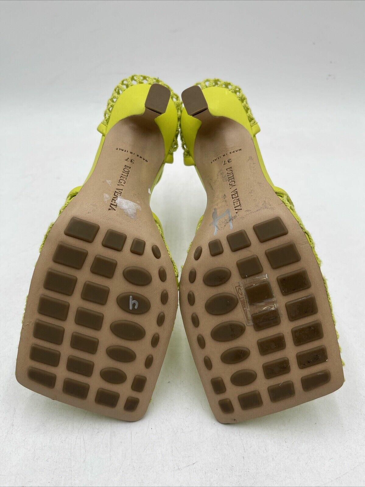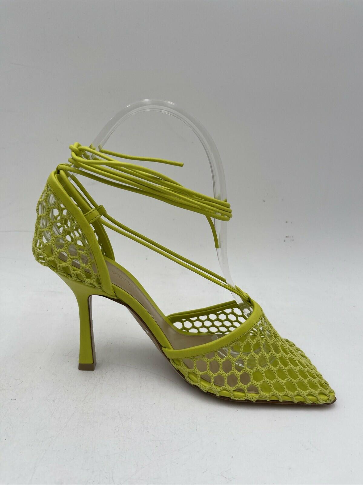 Bottega Veneta Stretch 90mm Mesh Sandals Neon Yellow Leather Ankle Strap Size 37
