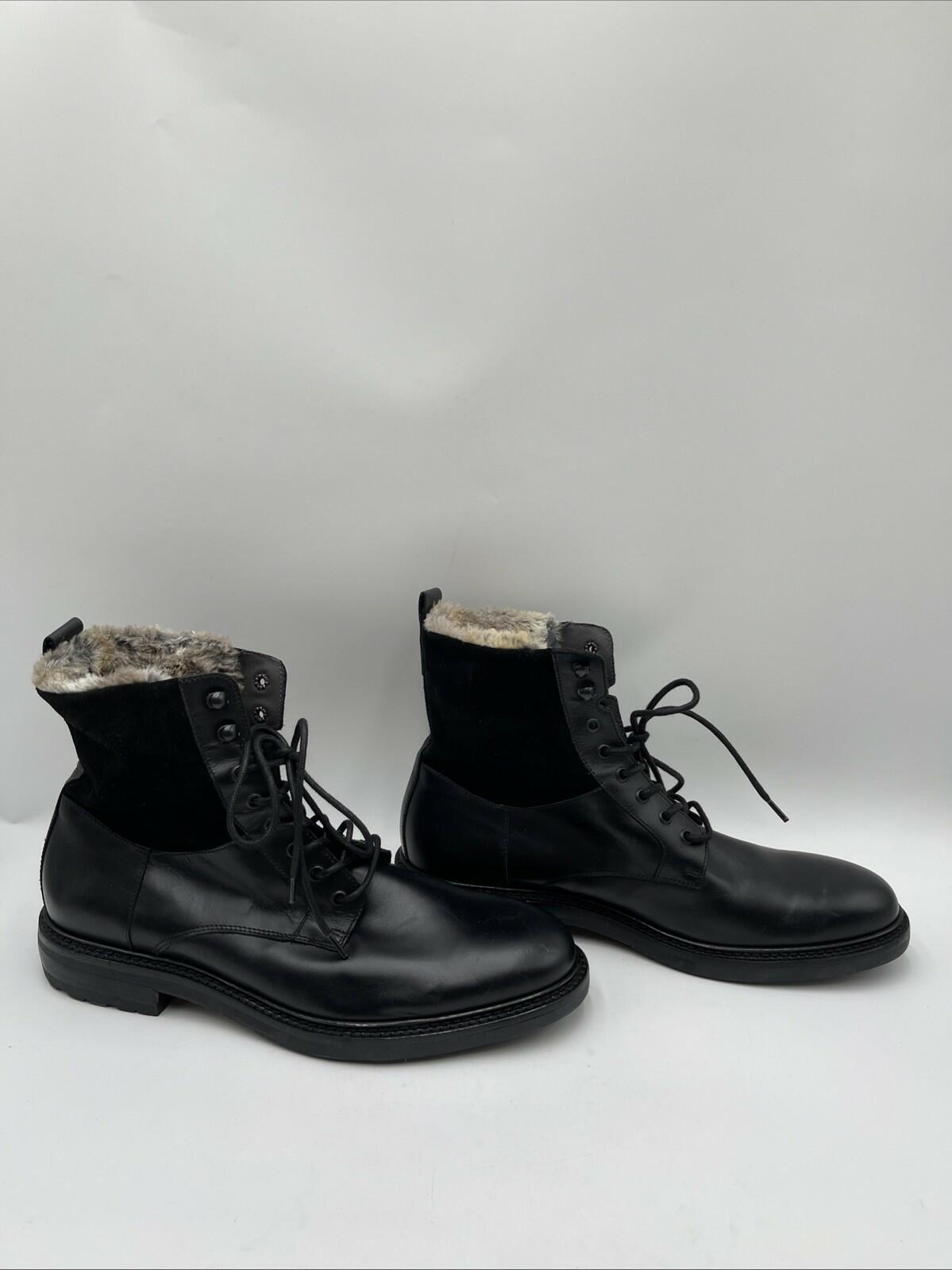Bruno Magli Cerone Leather Suede Faux Fur Lined Boots Black Size 12M - Very Good