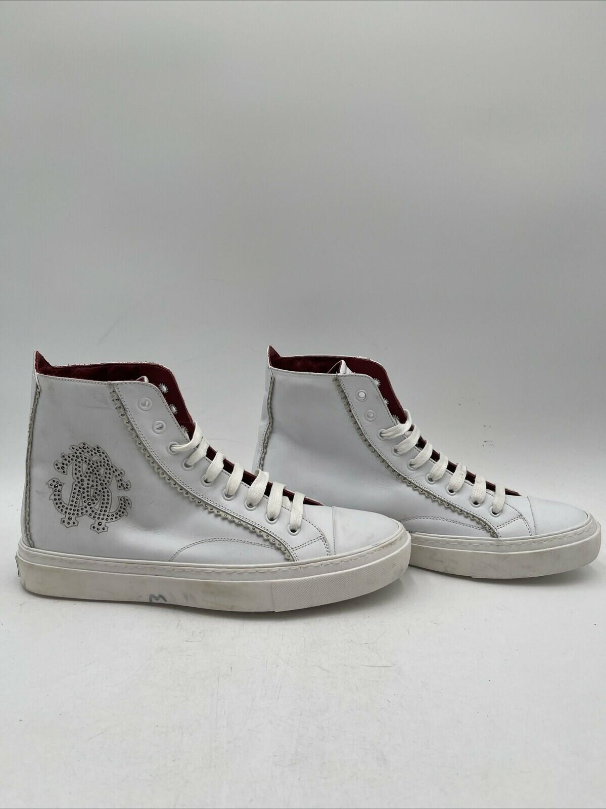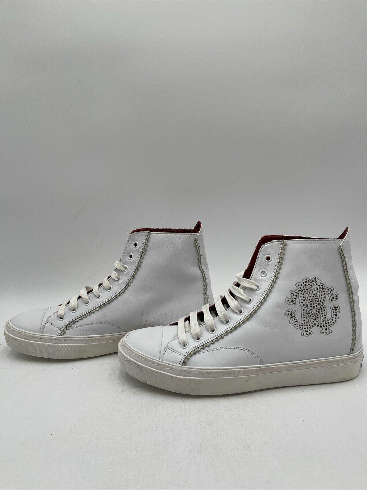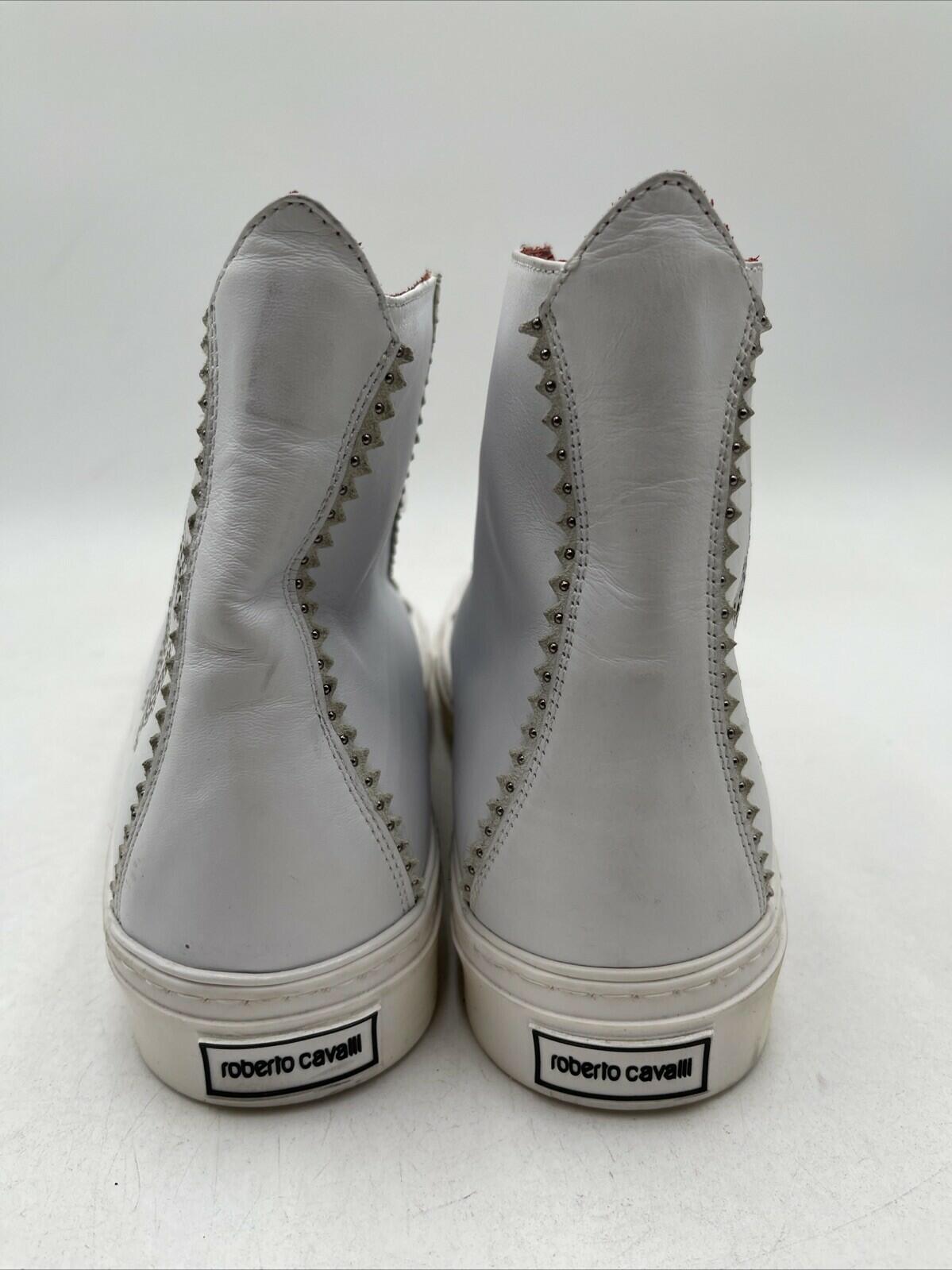 Cavalli Class by Roberto Cavalli Logo High-Top Sneakers White Size 43.5