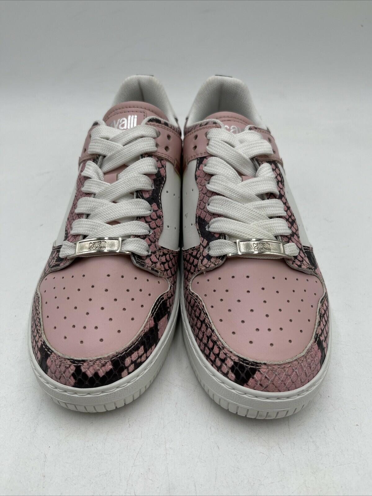 CAVALLI CLASS BY ROBERTO CAVALLI Snakeskin Embossed Trim Leather Sneakers 38