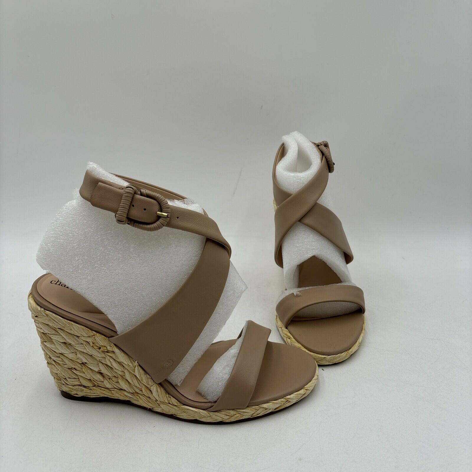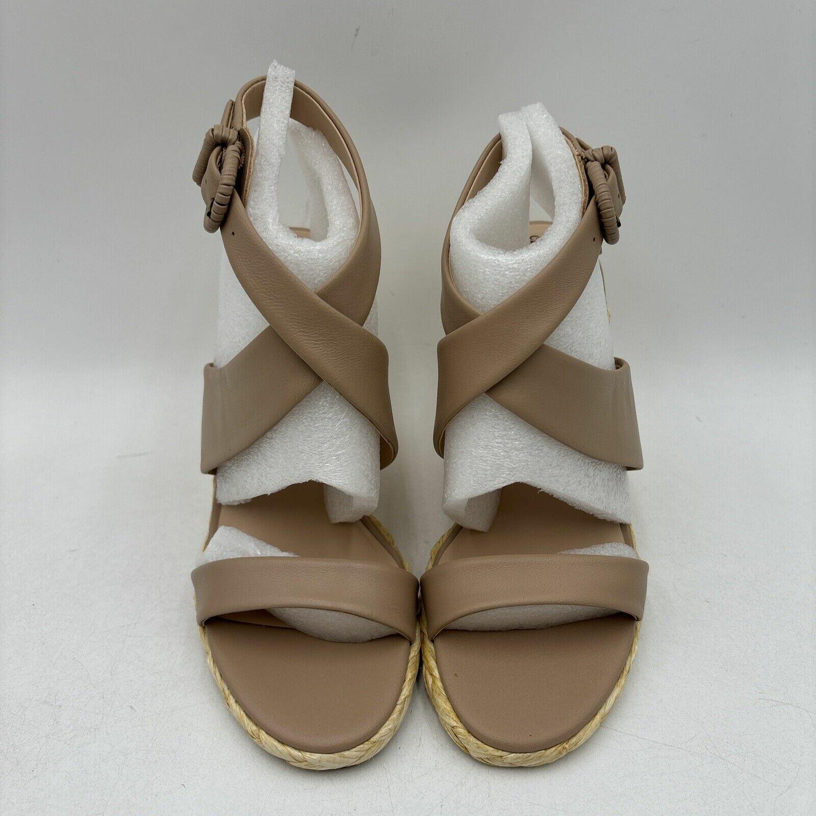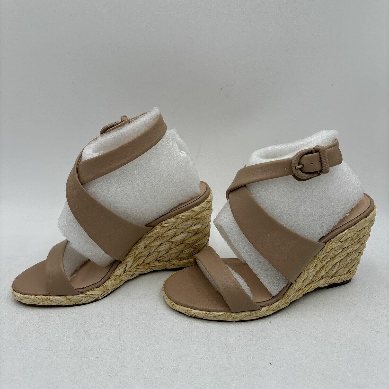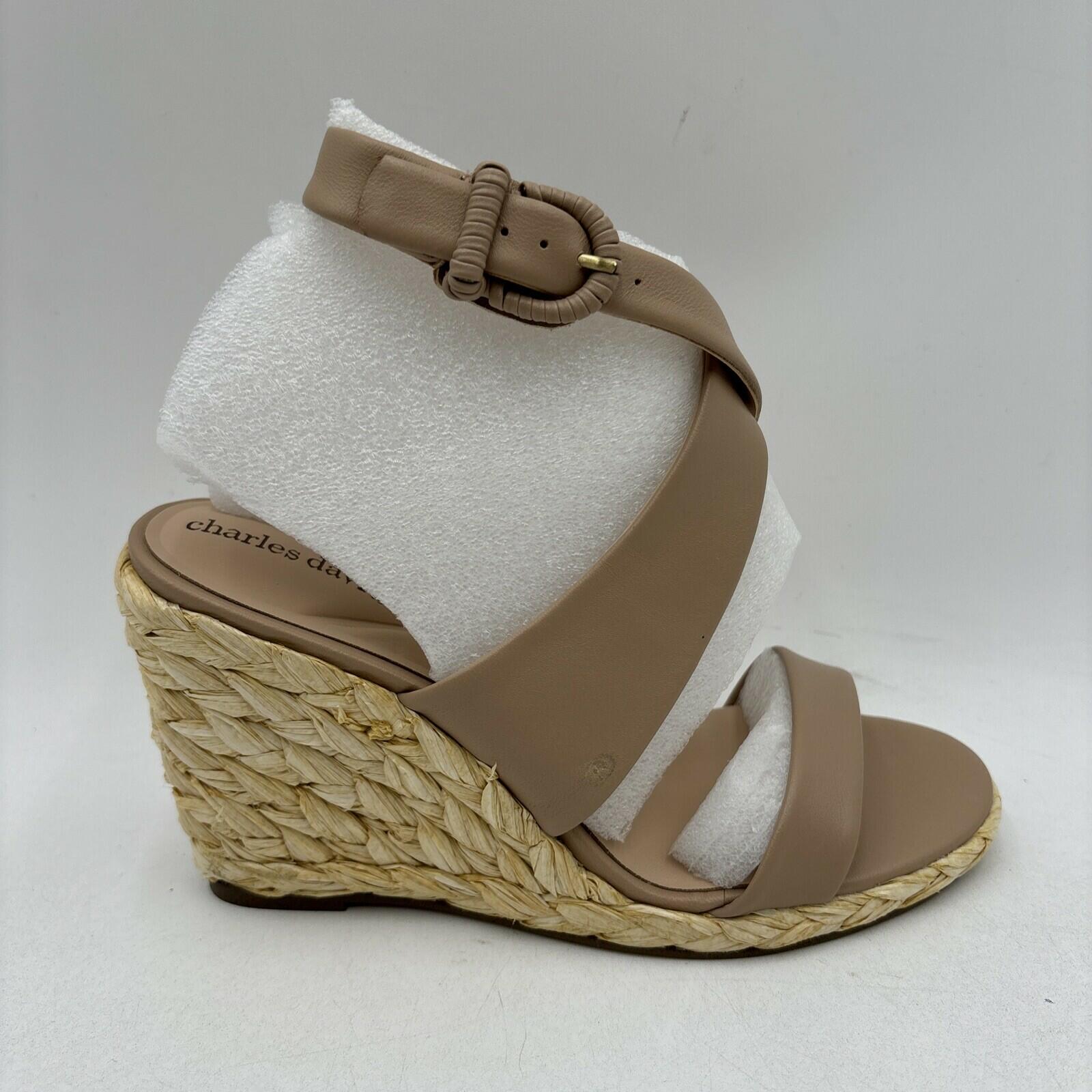 Charles David RUSSELL Beige Leather Open Toe Cross Strap Wedge Sandals, Size 7M - Very Good - Ufashion
