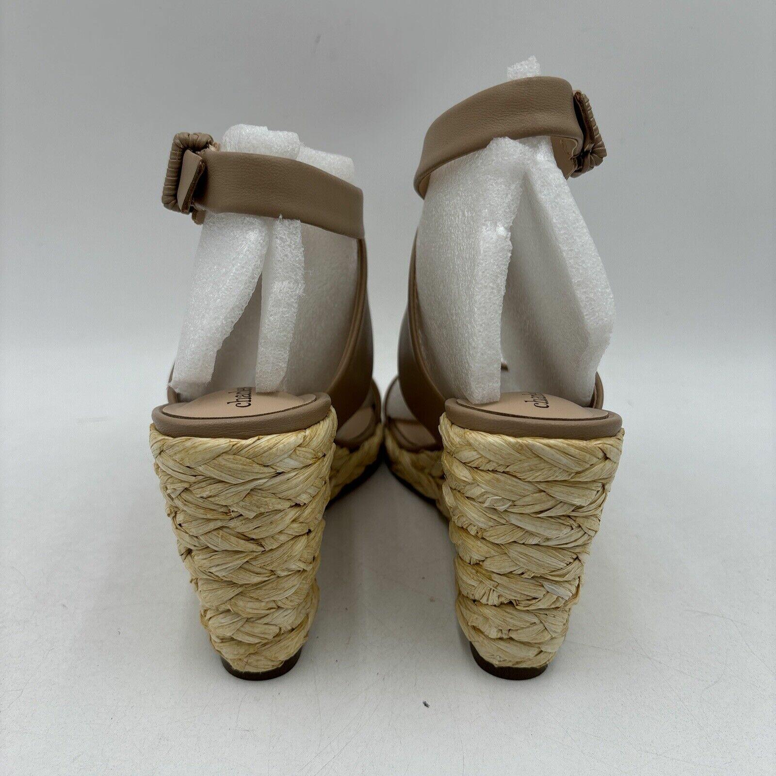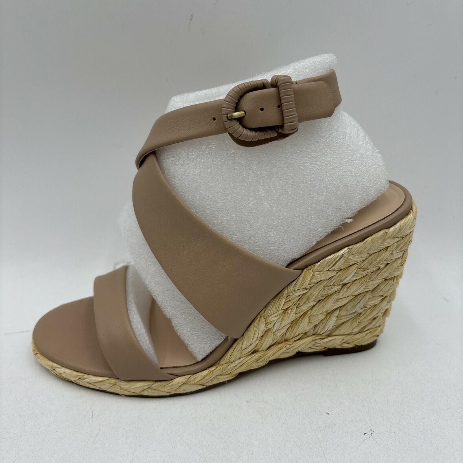 Charles David RUSSELL Beige Leather Open Toe Cross Strap Wedge Sandals, Size 7M - Very Good