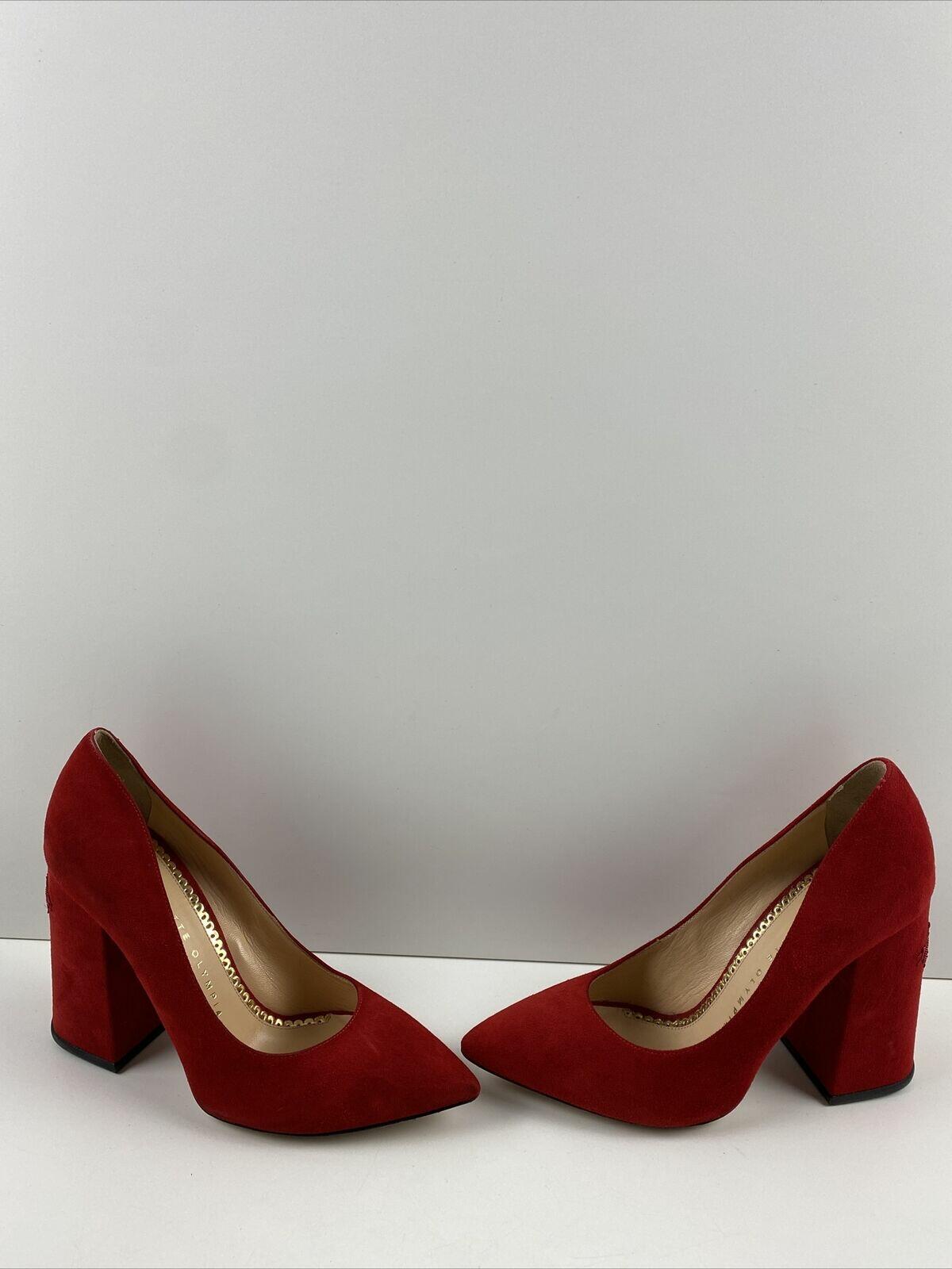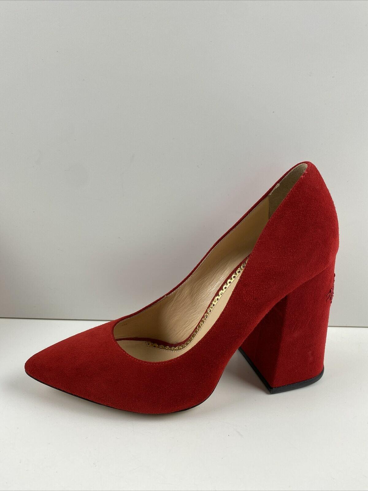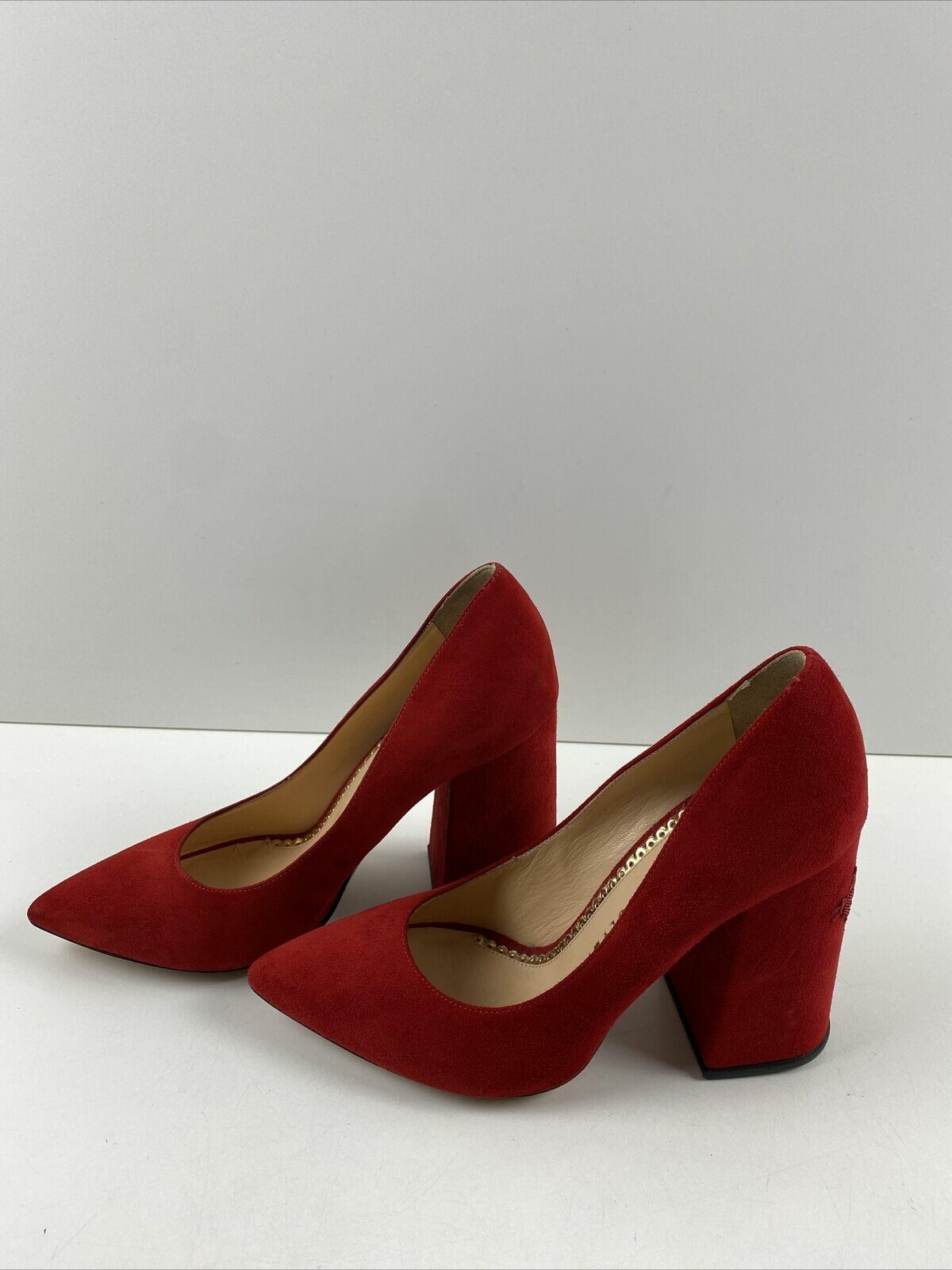 Charlotte Olympia AMANDA Red Suede Block Heel Pointy Toe Slip On Heels Size 35
