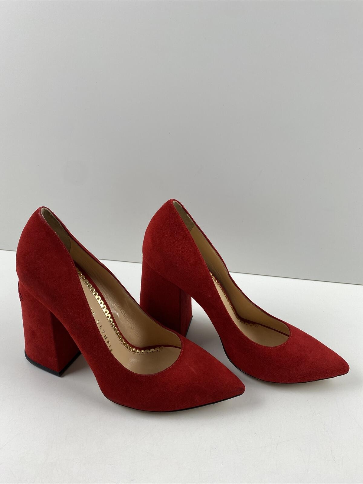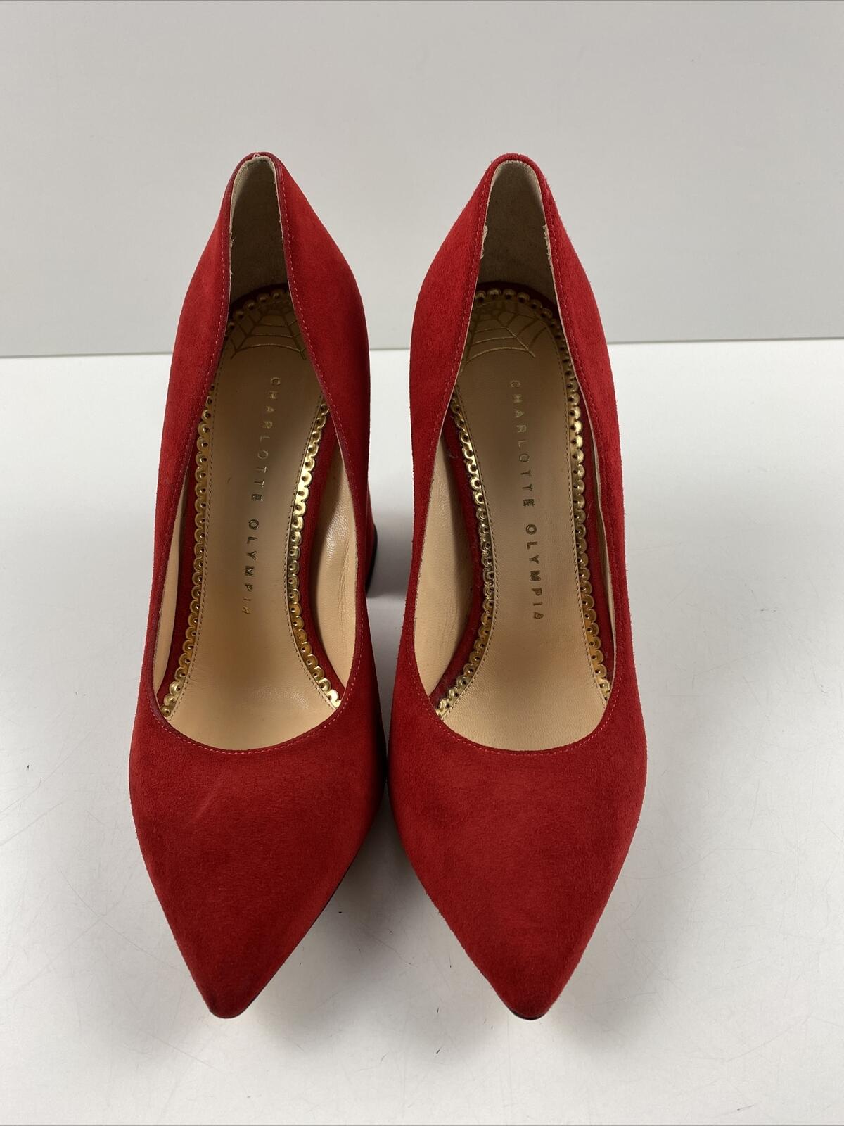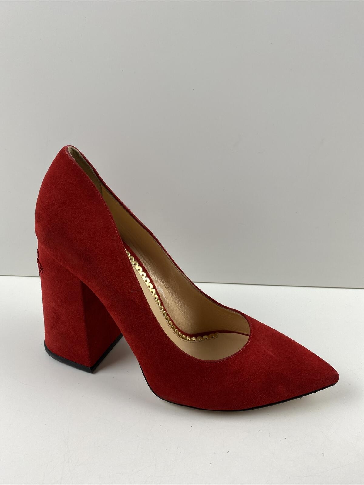 Charlotte Olympia AMANDA Red Suede Block Heel Pointy Toe Slip On Heels Size 35The heels are in good condition
