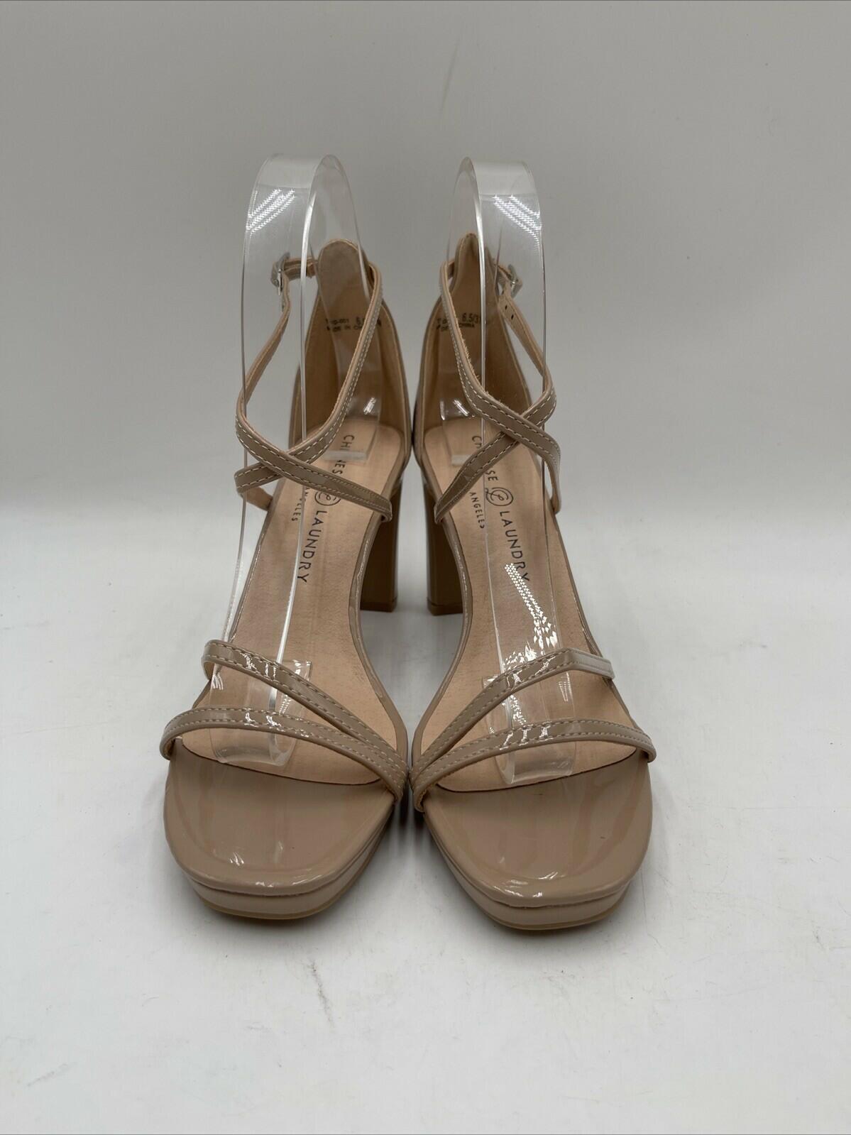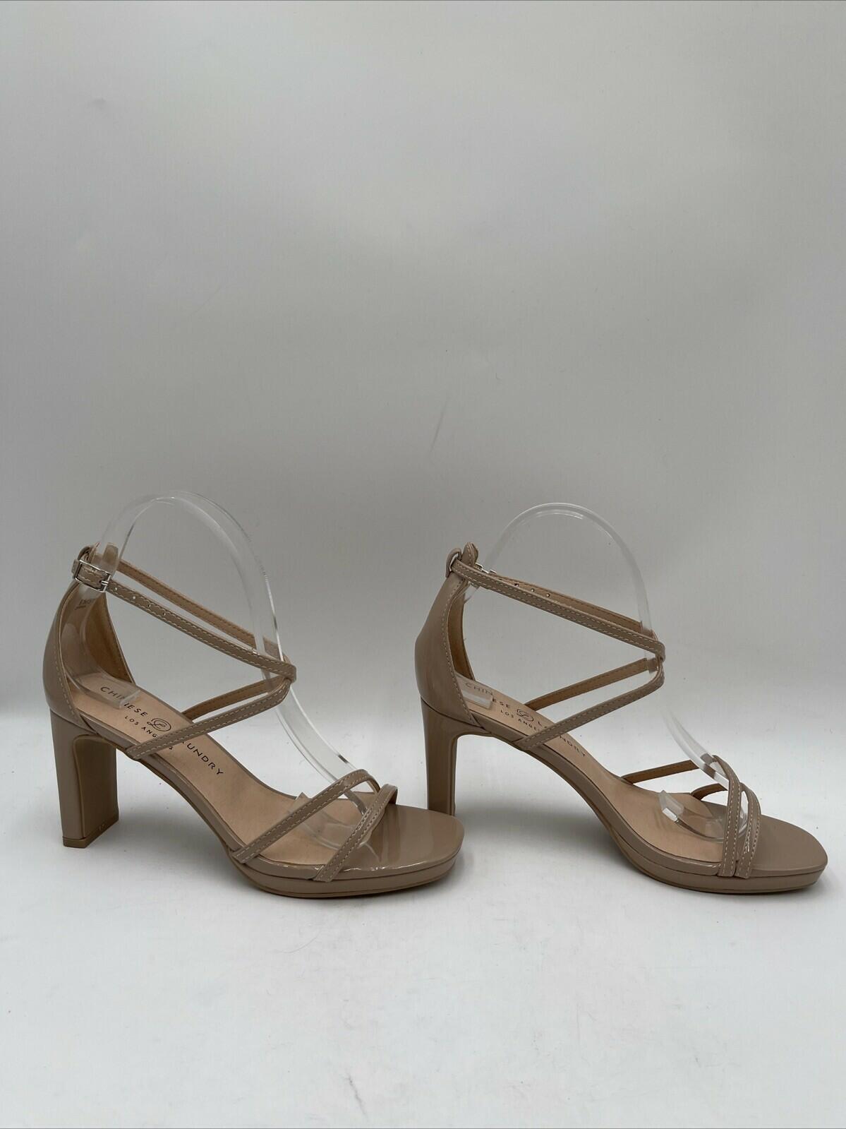 -Bottoms are barely wornElevate your formal attire with these Chinese Laundry Women's Taryn Dress Sandals. The solid pattern and strappy style give a stylish edge, while the adjustable buckle strap ensures a comfortable fit. The beige color with logo accents adds a touch of sophistication, perfect for any occasion.