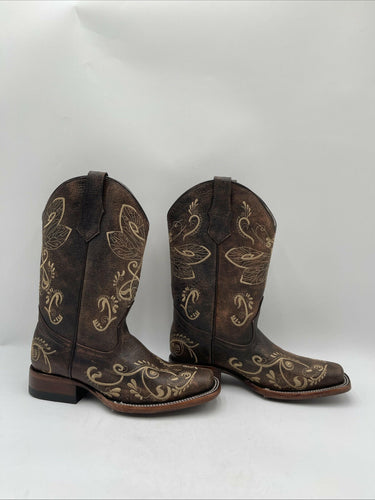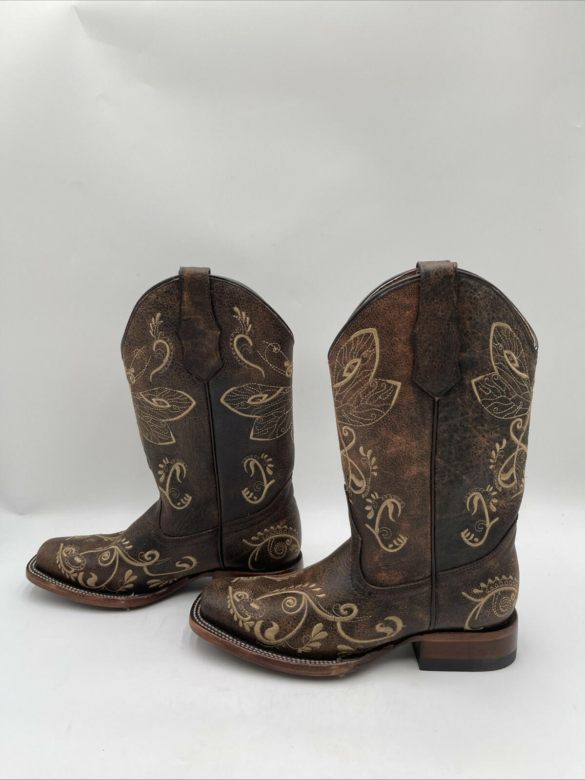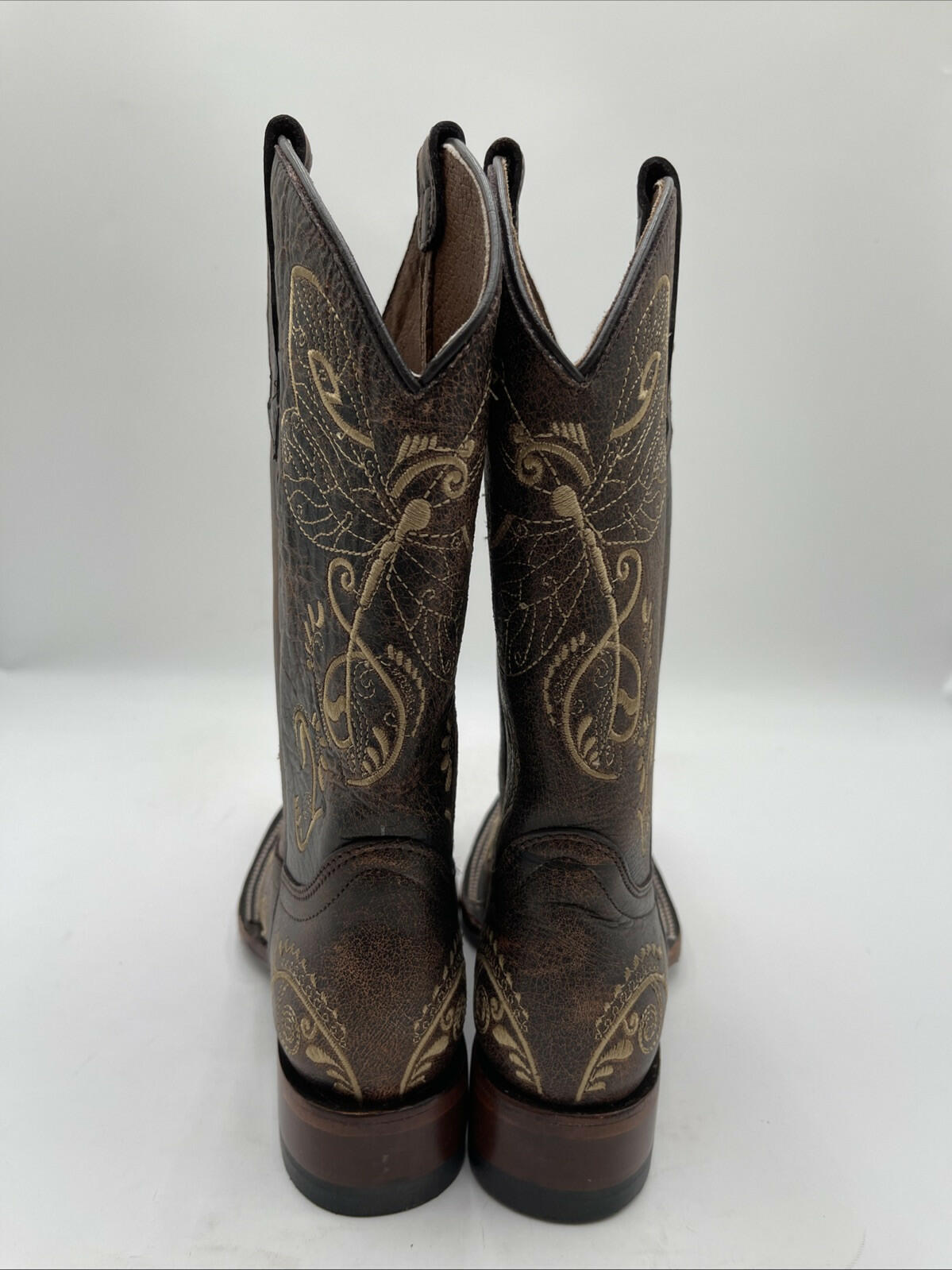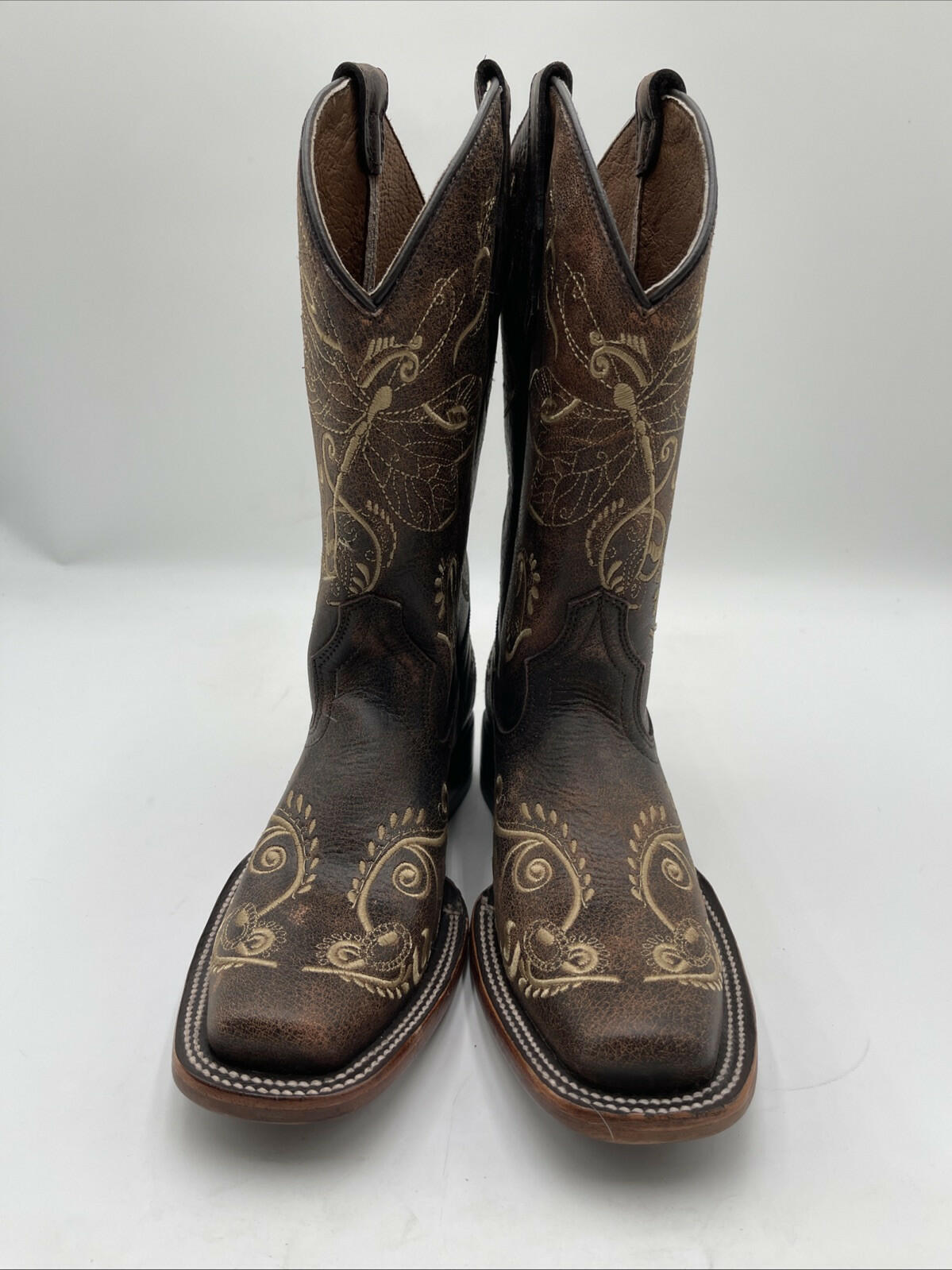 Circle G Women's Dragonfly Square Toe Boots Brown Leather Size 7M - Very Good