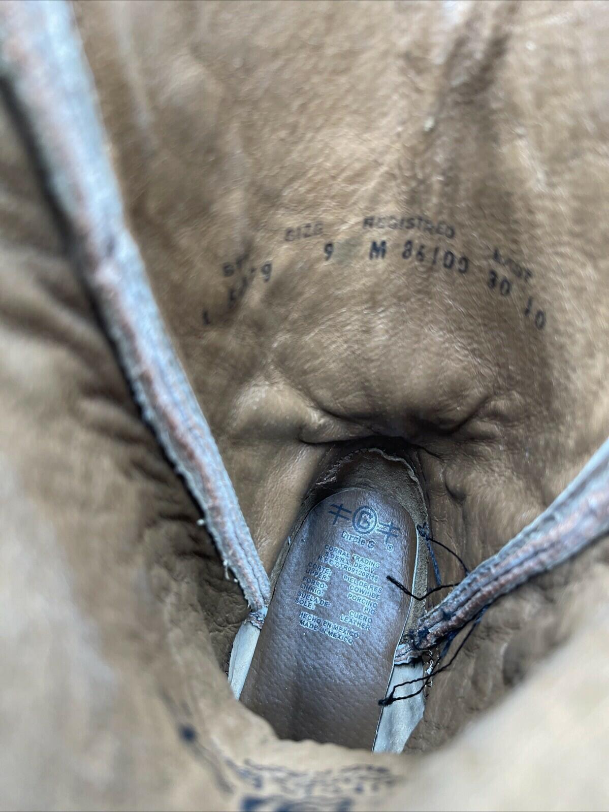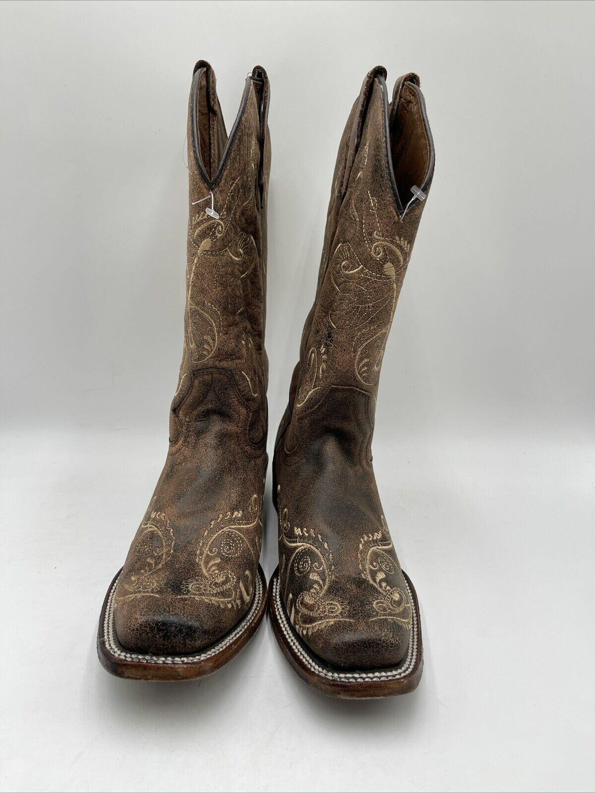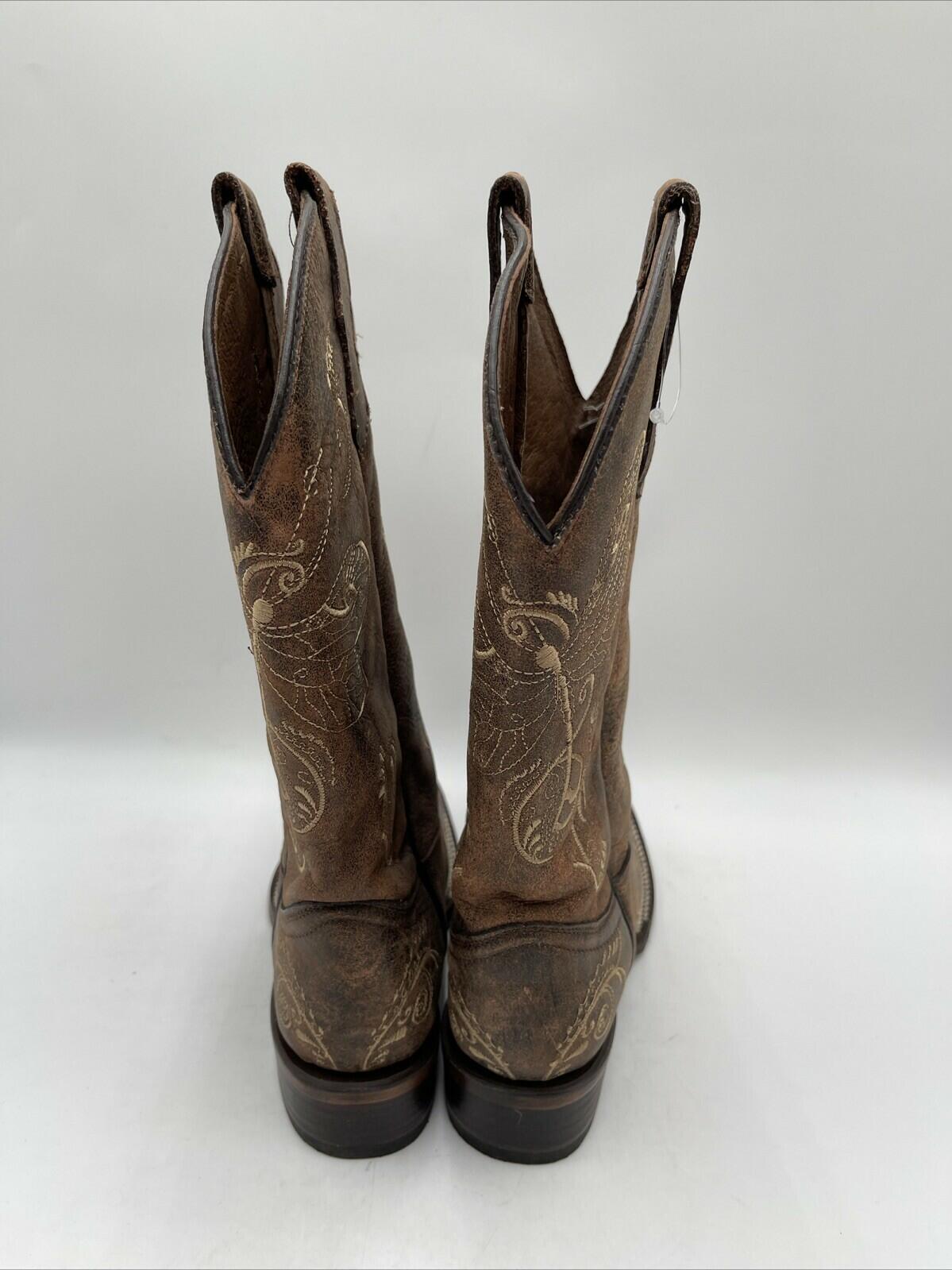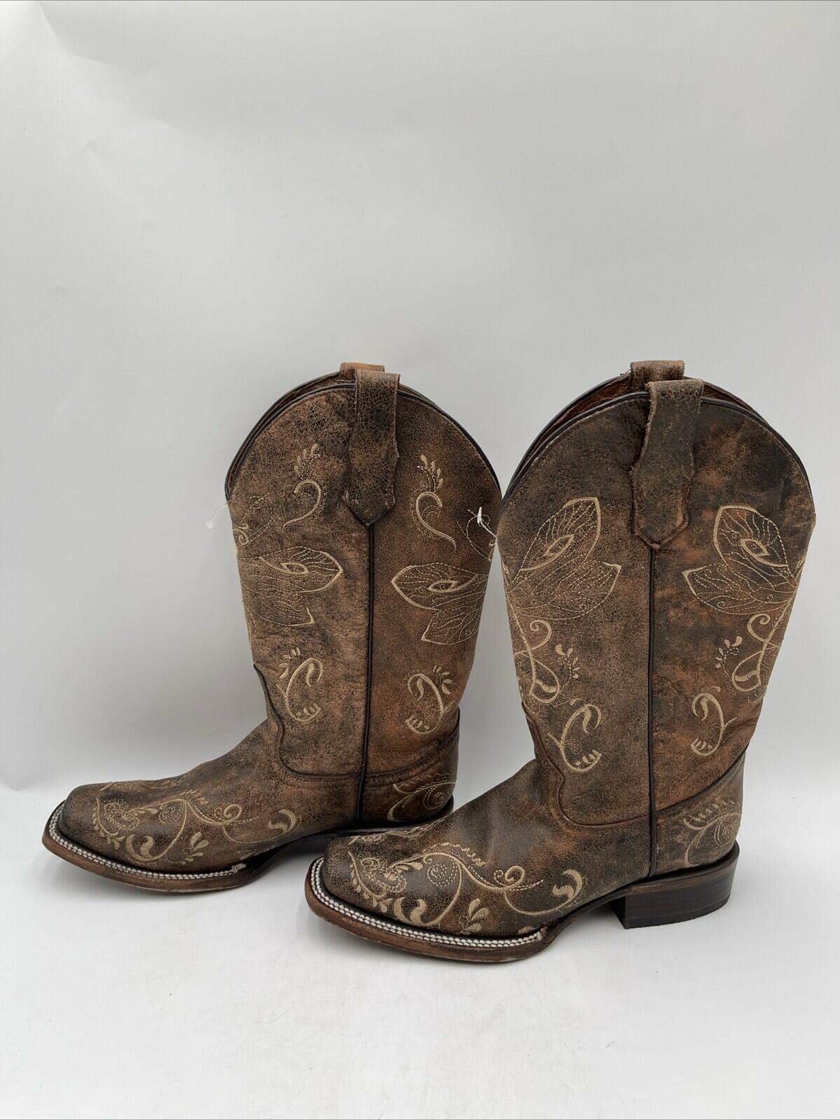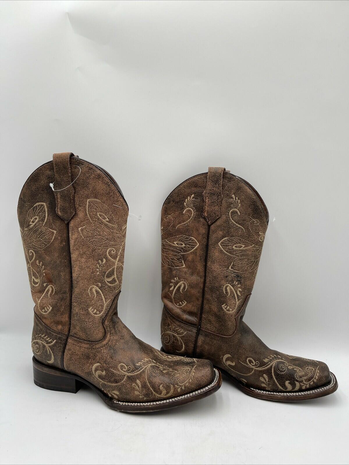 Circle G Women's Dragonfly Square Toe Boots Brown Leather Size 9M - Very Good - Ufashion