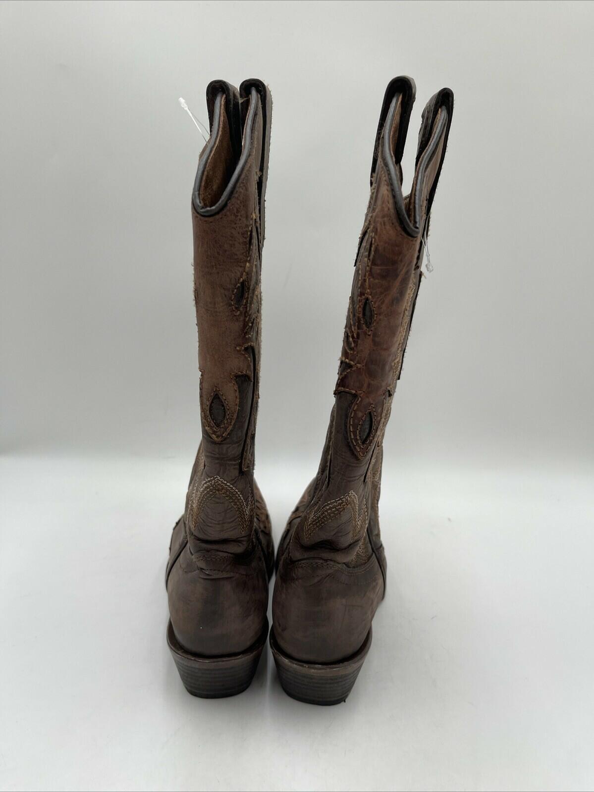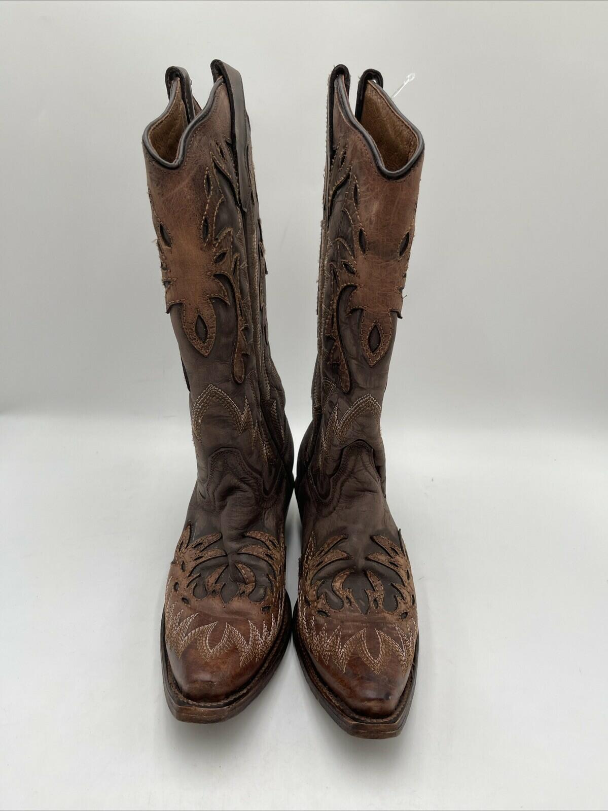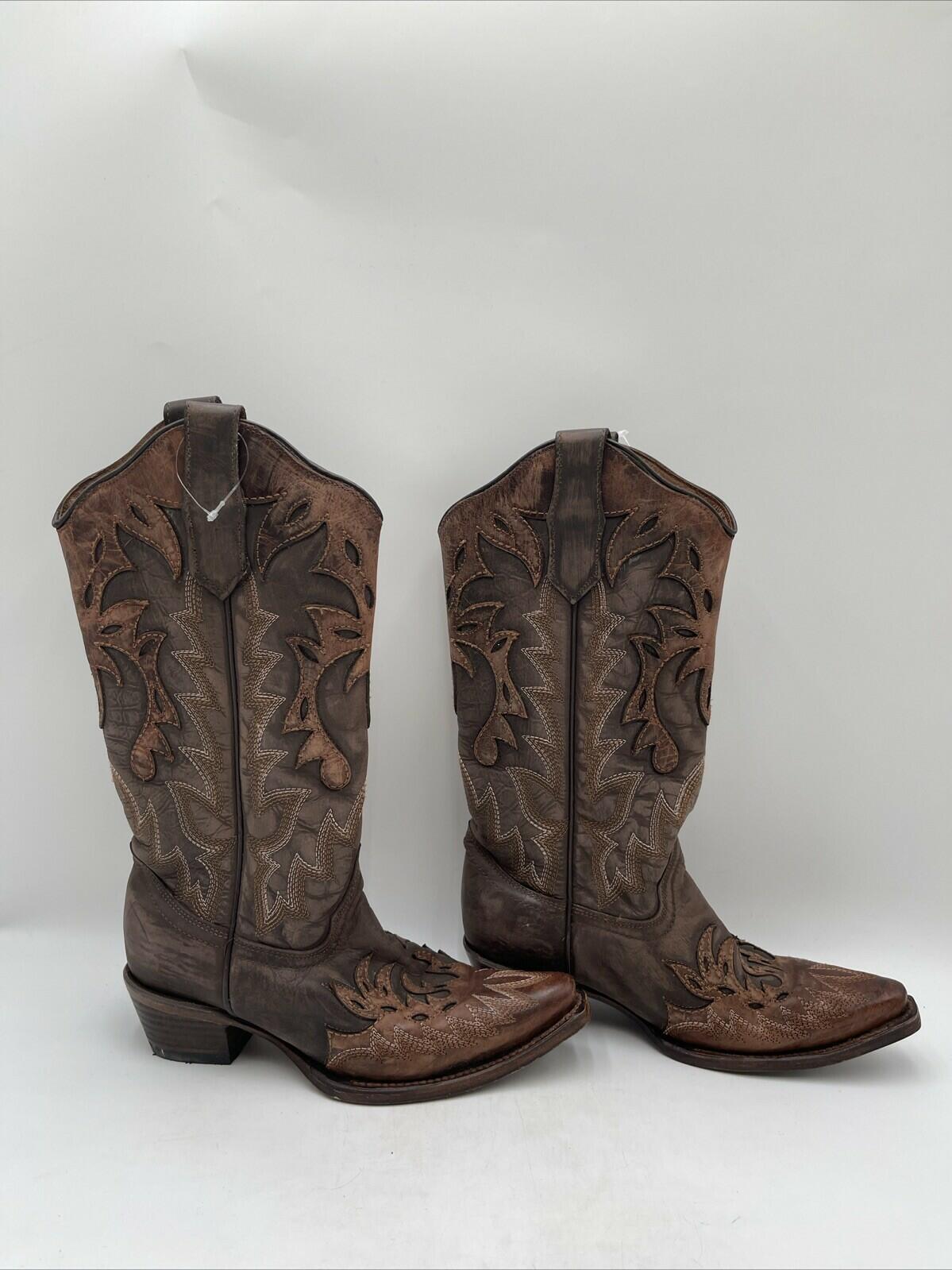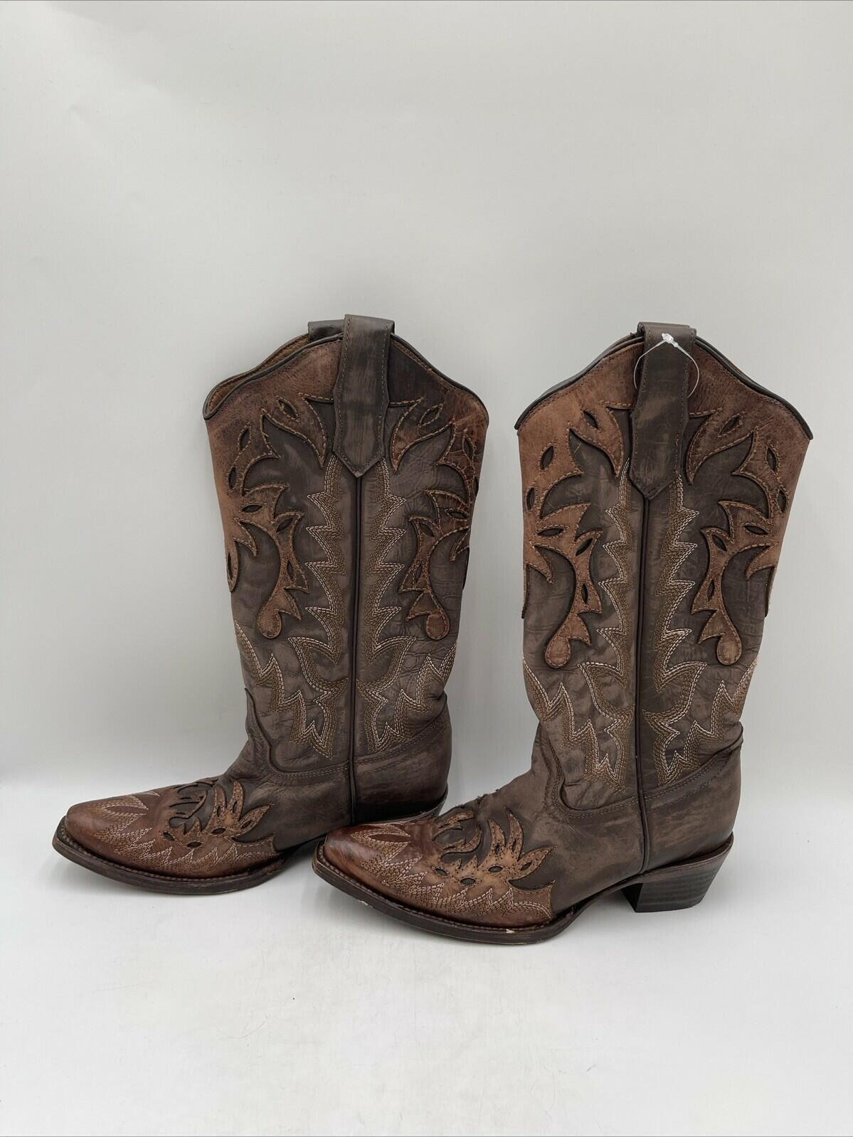 Circle G Women's Western Boots Embroidery Overlay Chocolate Brown Size 7M - Very Good