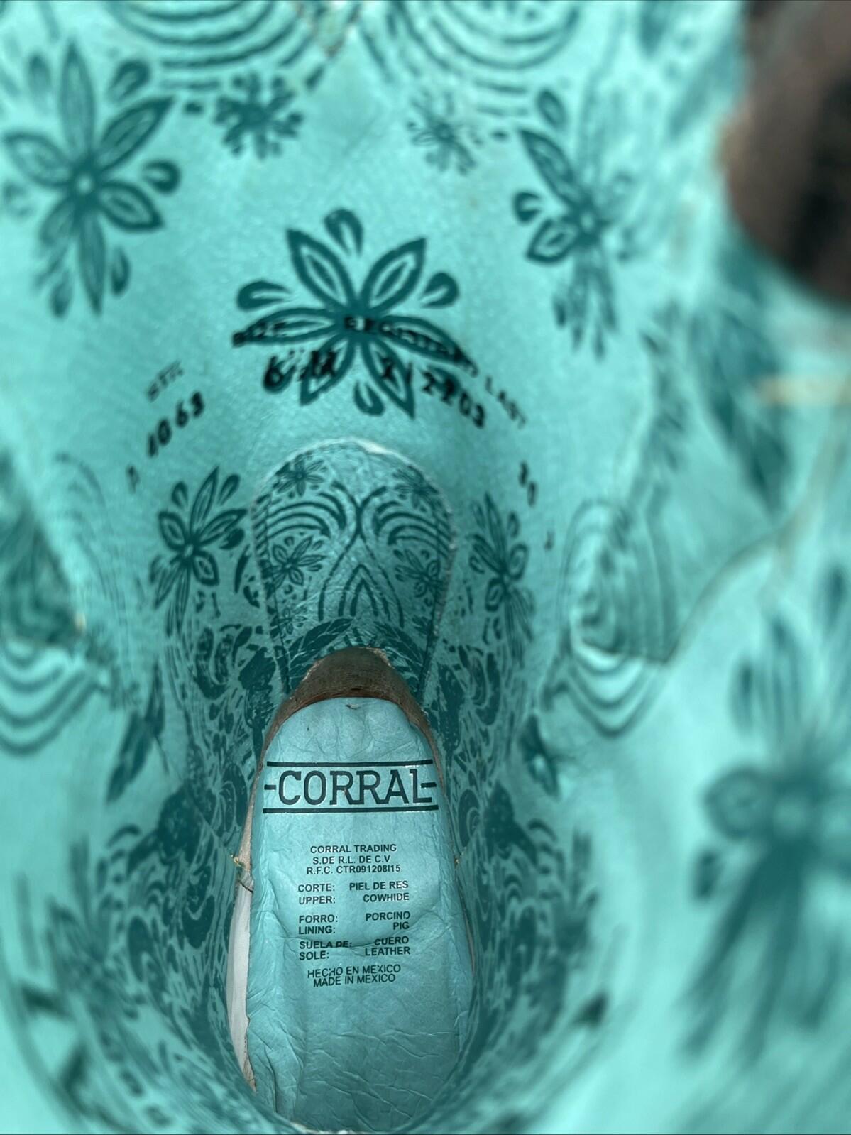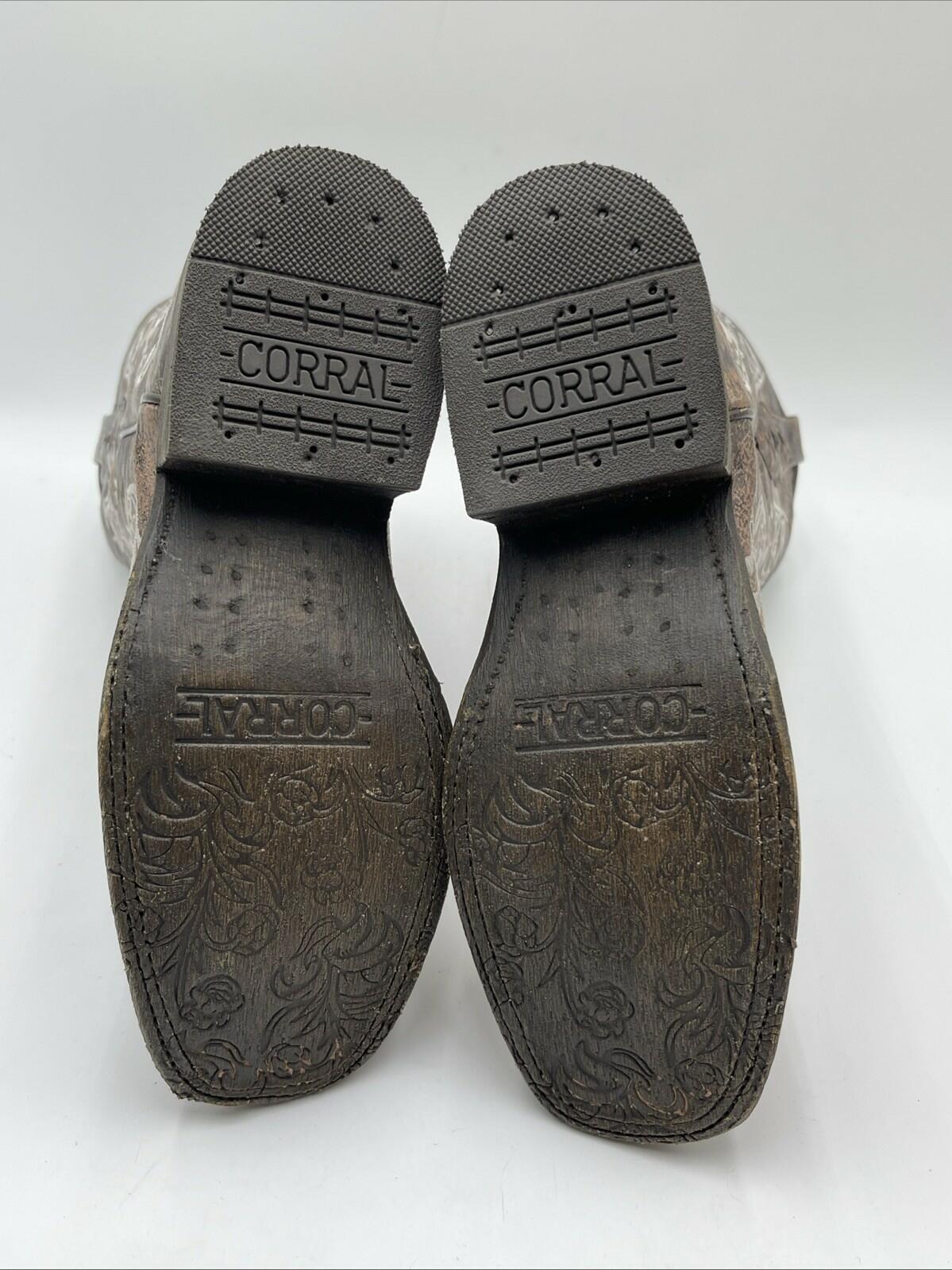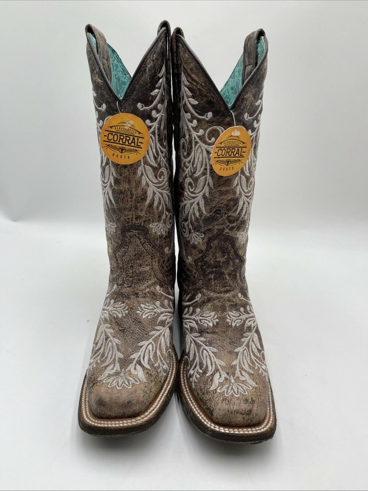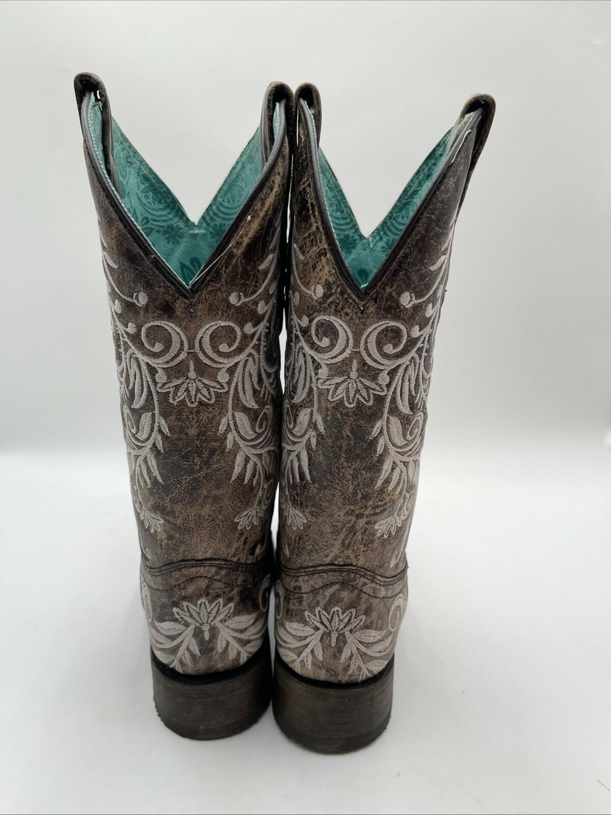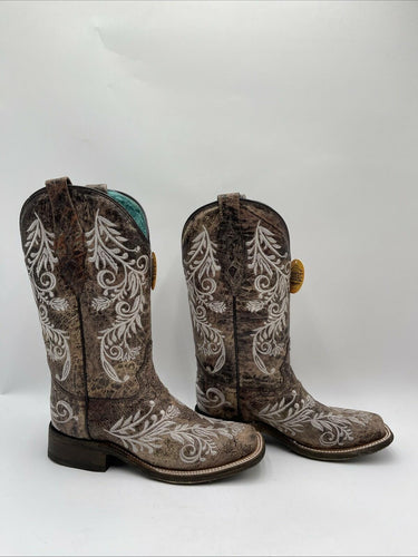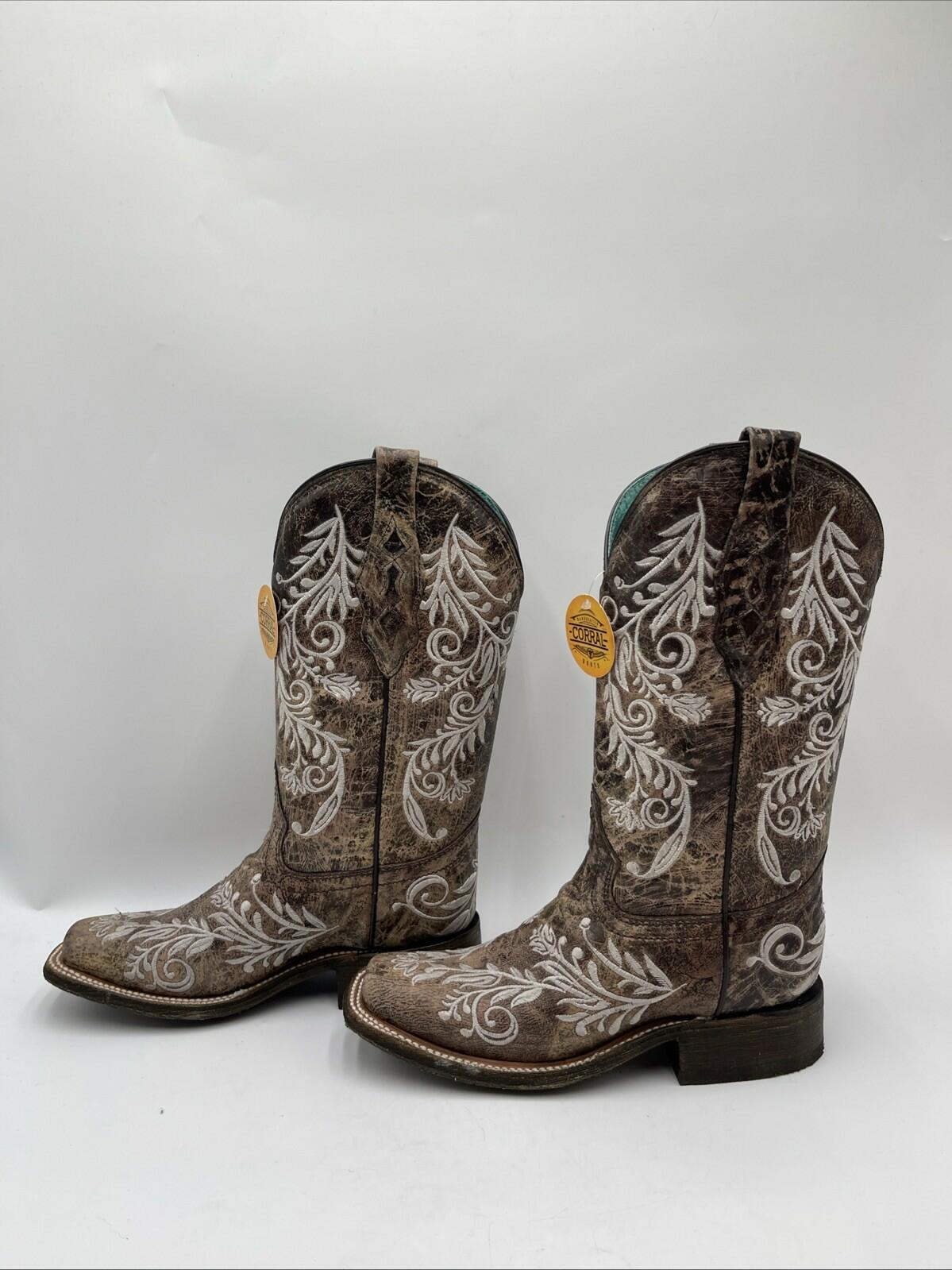 Corral Distressed Filigree Embroidery Leather Square Toe Western Boots Size 6.5M - Very Good