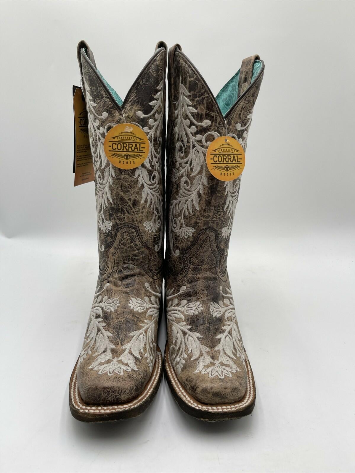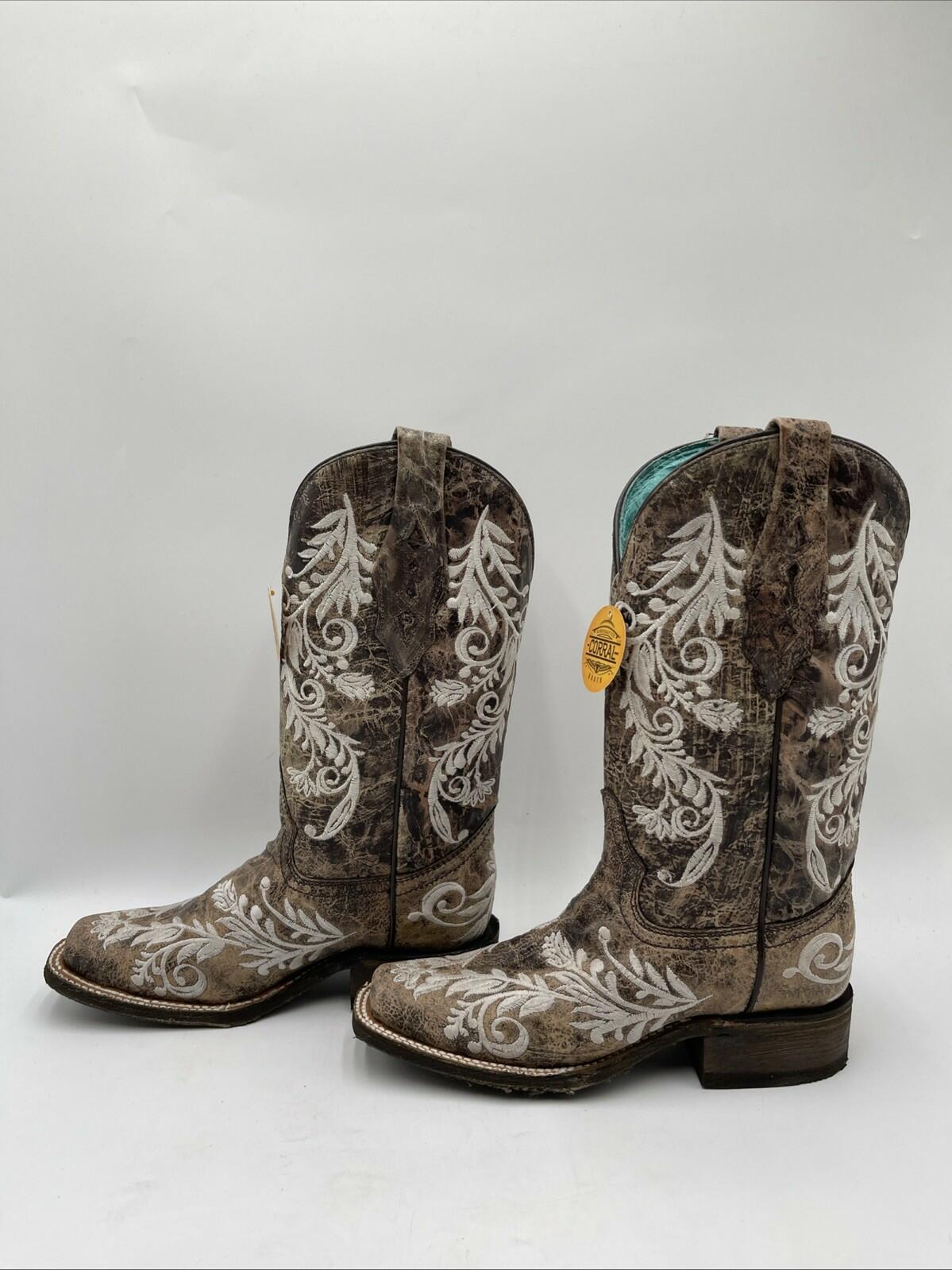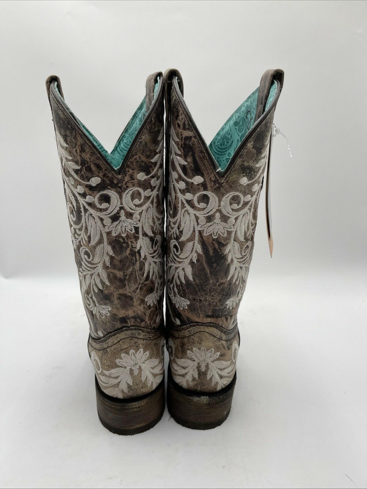 Corral Distressed Filigree Embroidery Leather Square Toe Western Boots Size 7M - Very Good