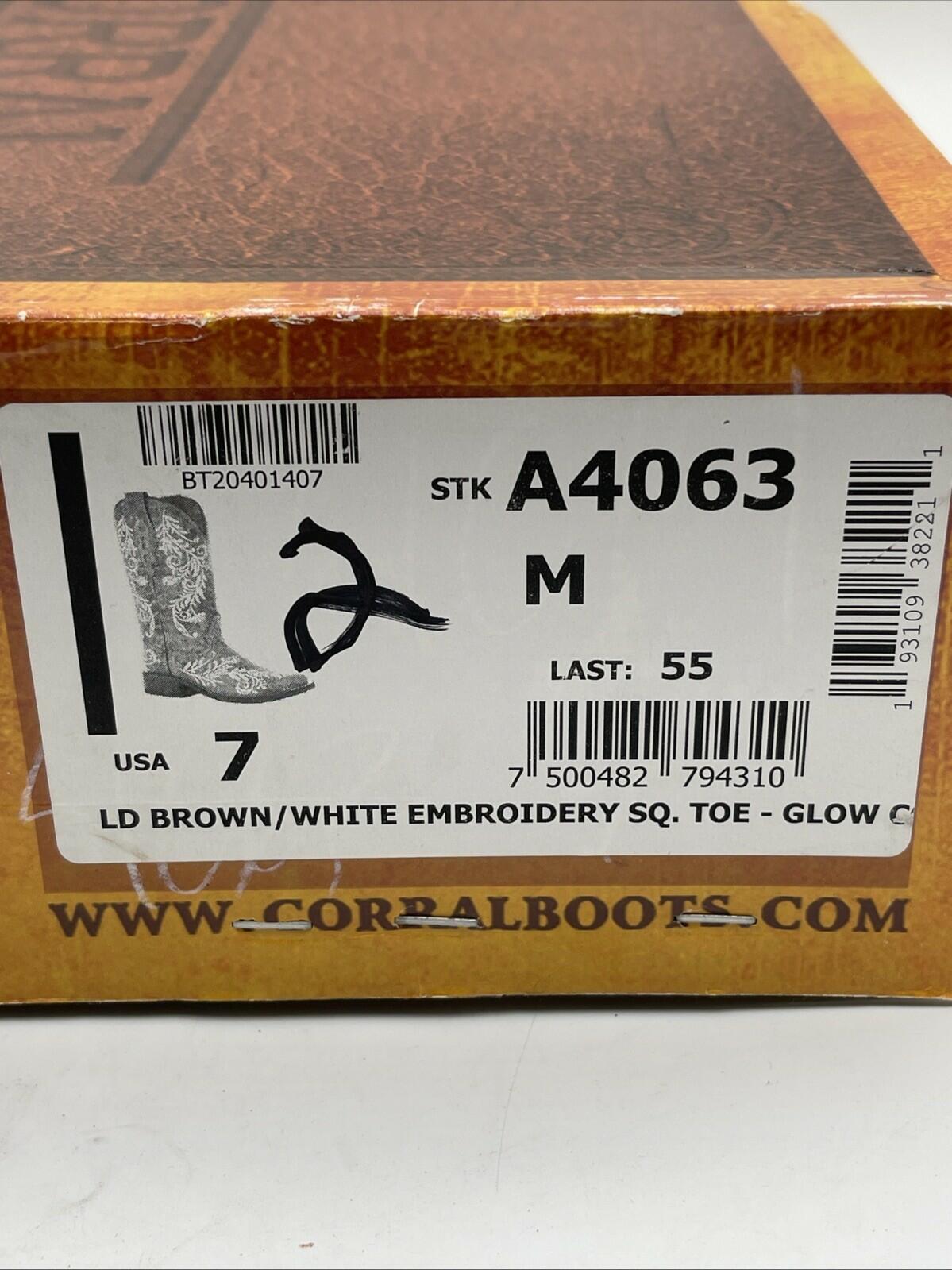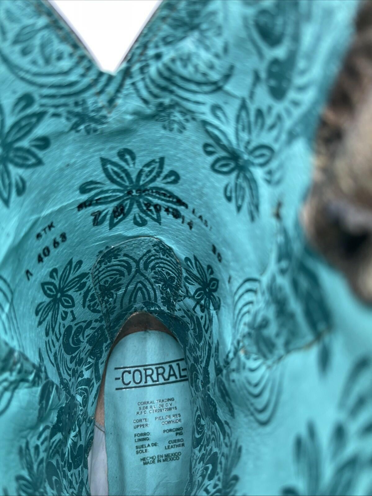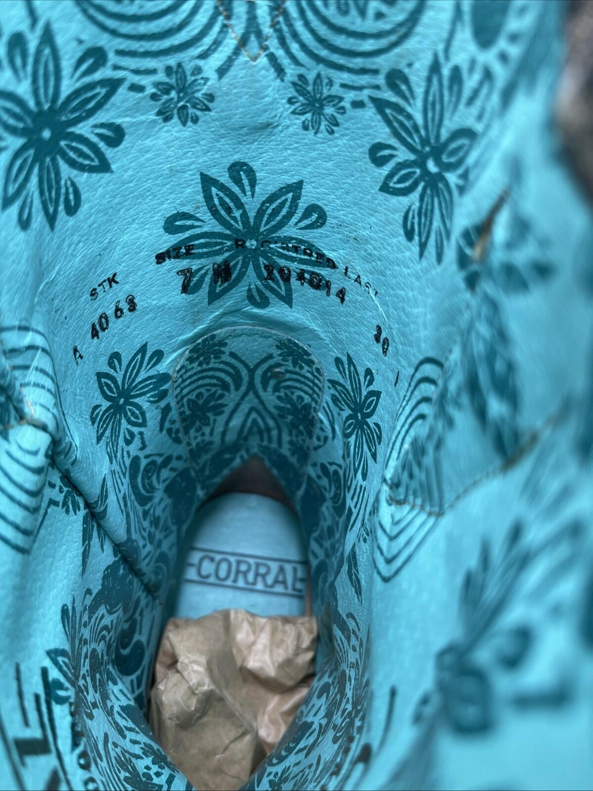 Corral Distressed Filigree Embroidery Leather Square Toe Western Boots Size 7M - Very Good