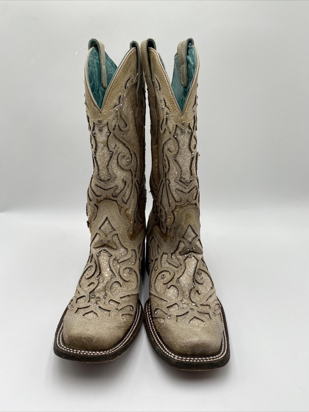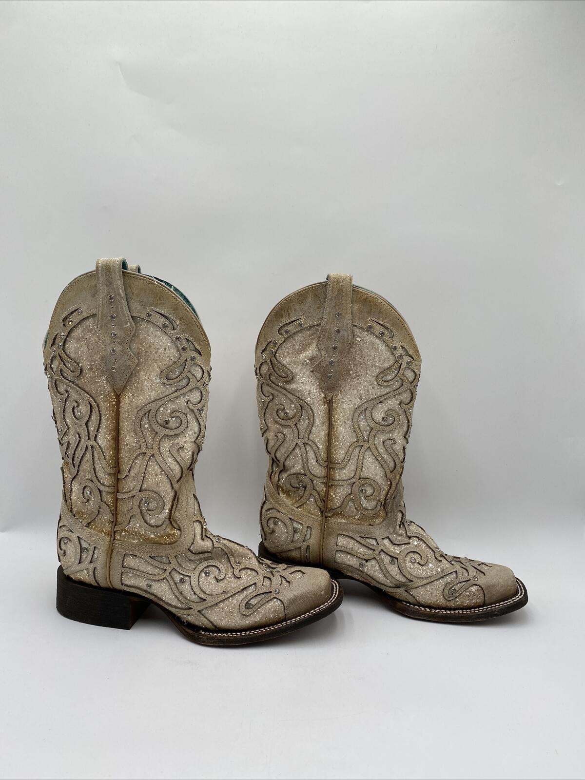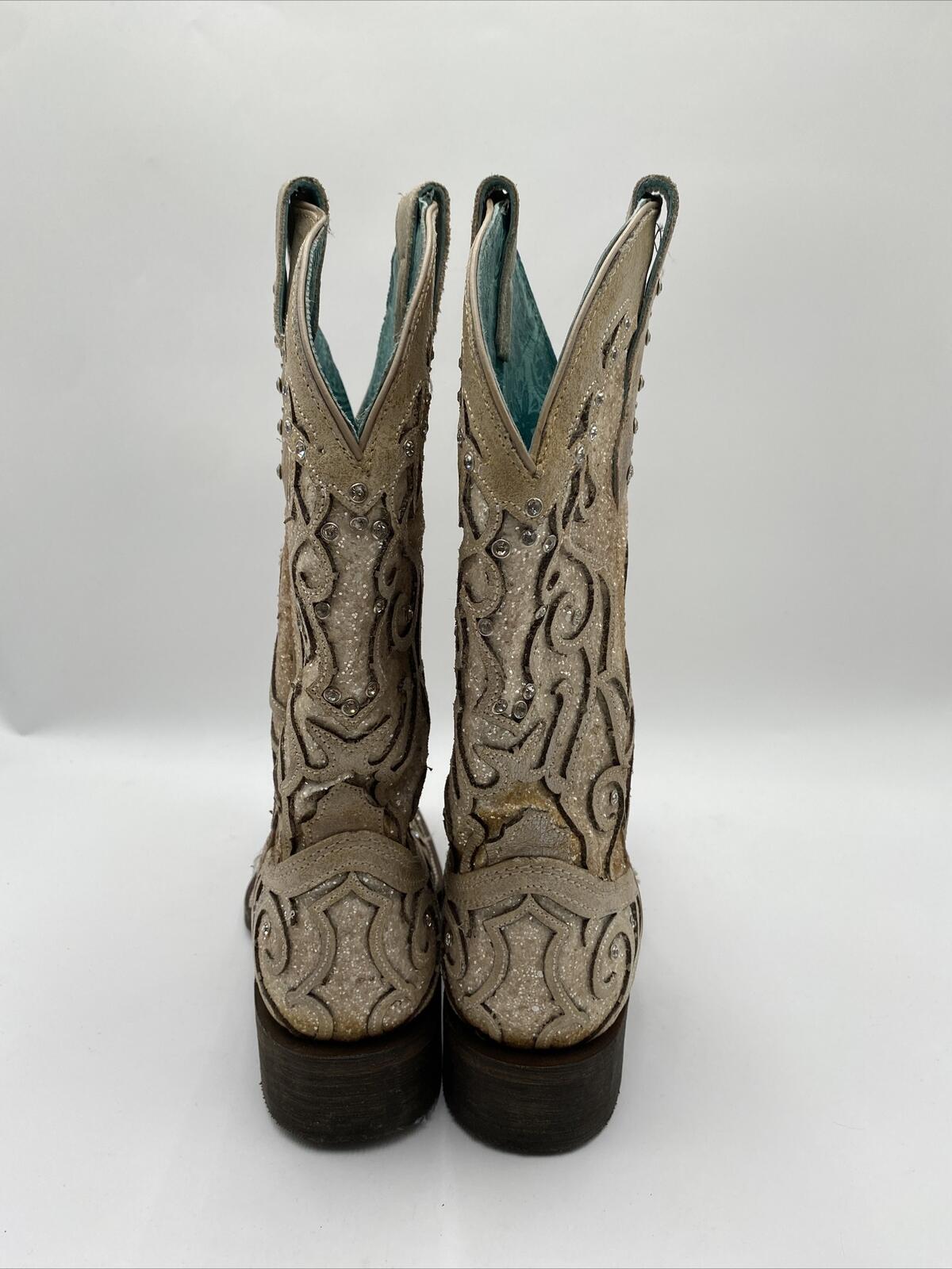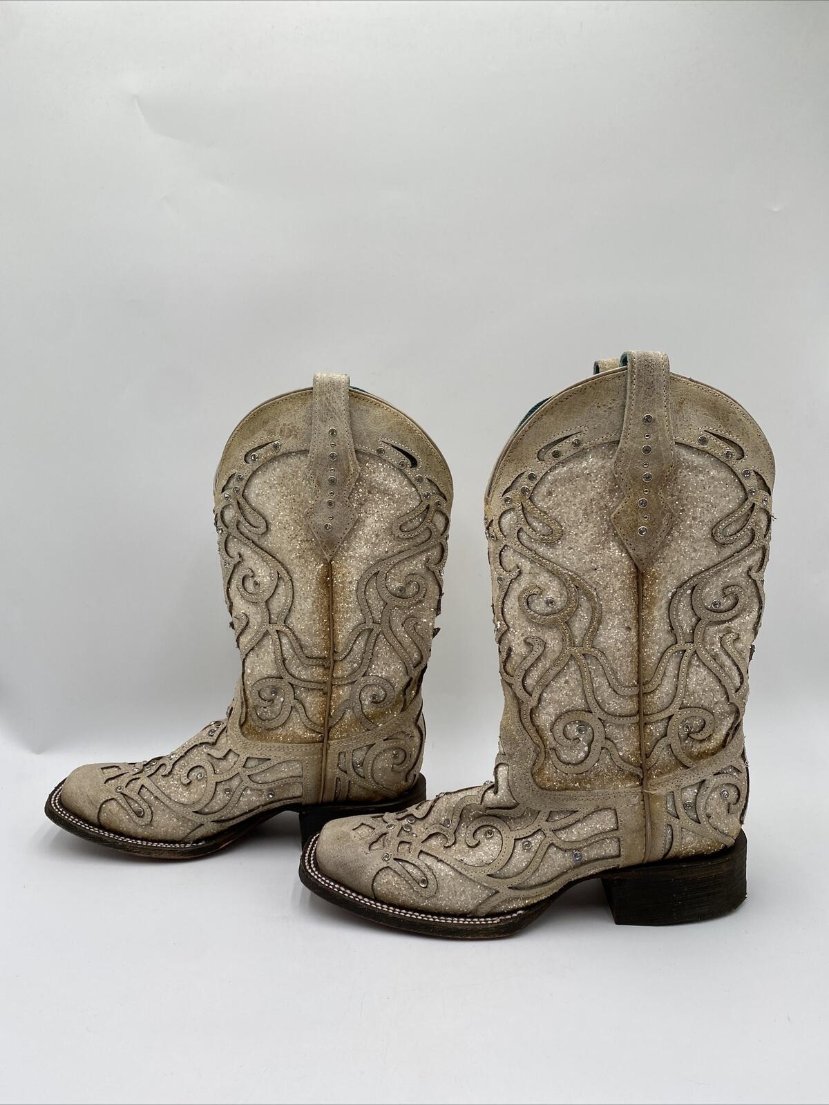 Corral Ladies White Glitter Inlay and Crystals Boots Size 8.5M - Very Good - Ufashion Corral Ladies White Glitter Inlay and Crystals Boots Size 8.5M - Very Good - Ufashion