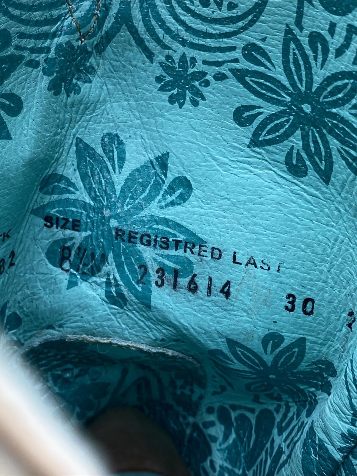 Step into a blend of comfort and striking style with these Corral Ladies boots, sized at a generous 8.5M. The gleaming white leather upper boasts a captivating glitter inlay, complemented by sparkling crystals that lend an eye-catching shimmer to your every stride. Designed with a classic Western flair, these mid-calf boots feature a practical square toe and a low heel for day-long ease.
