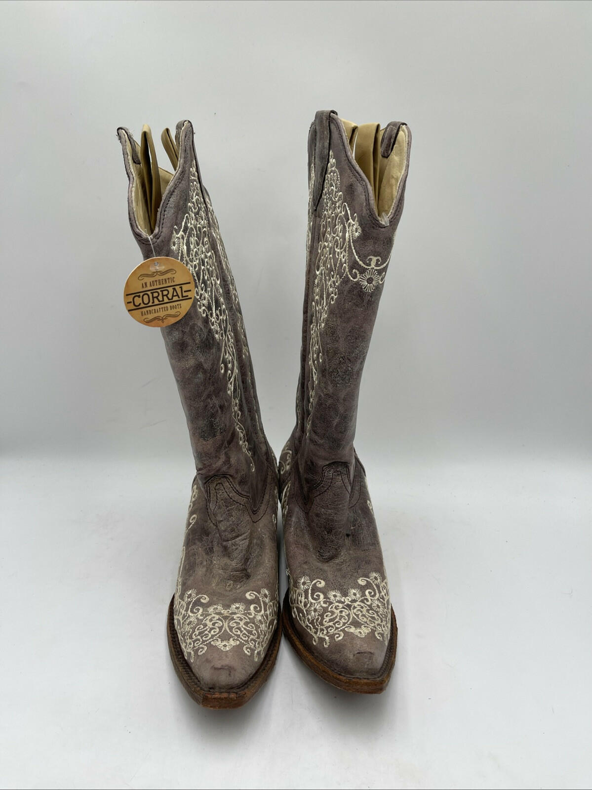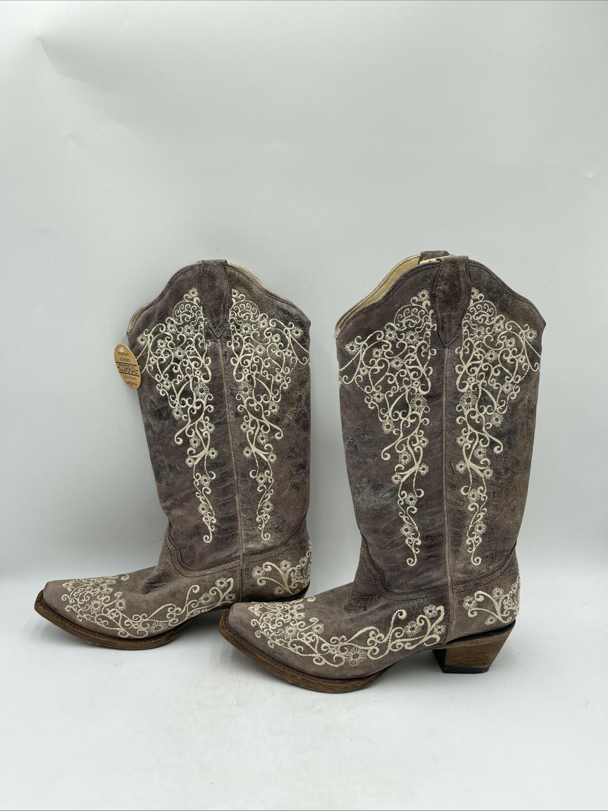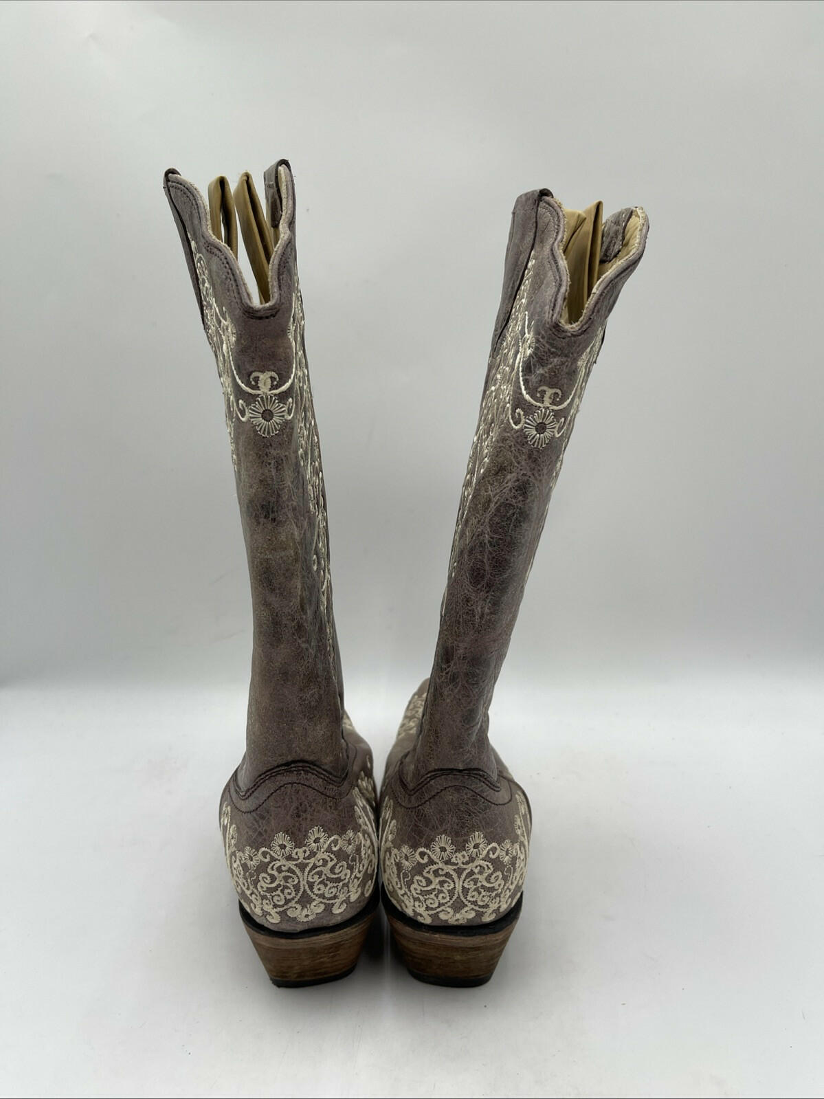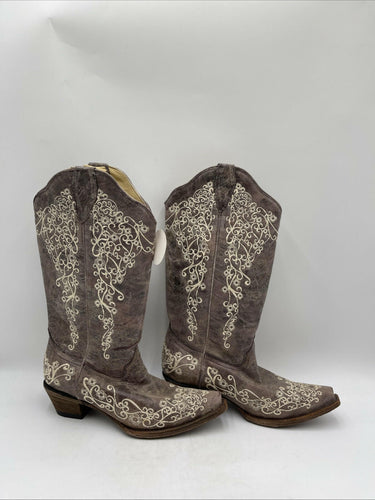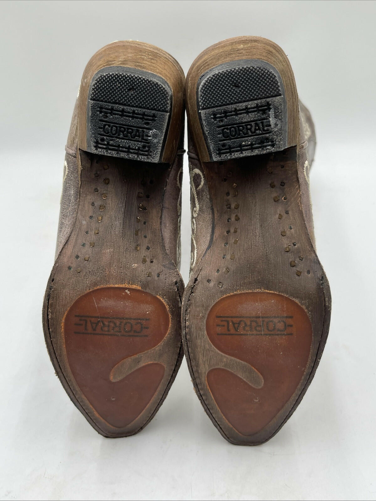 Corral Women's Brown Crater Bone Embroidery Boots Size 7.5M - Very Good