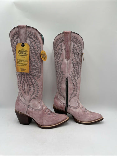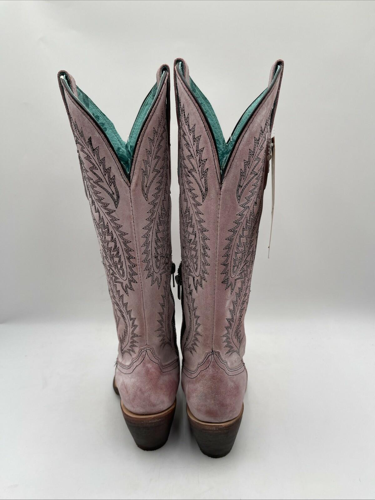 CORRAL WOMEN'S EMBROIDERY ROSE TALL TOP SNIP TOE COWBOY BOOTS PINK SIZE 6M - Very Good