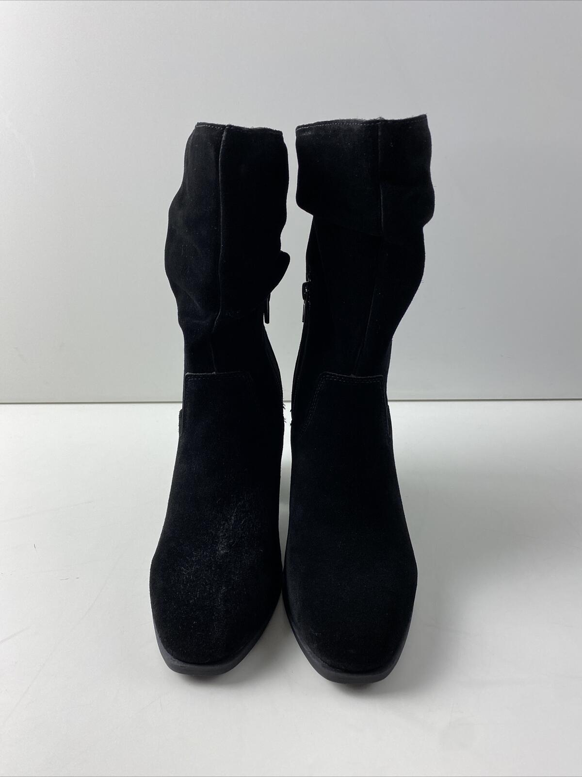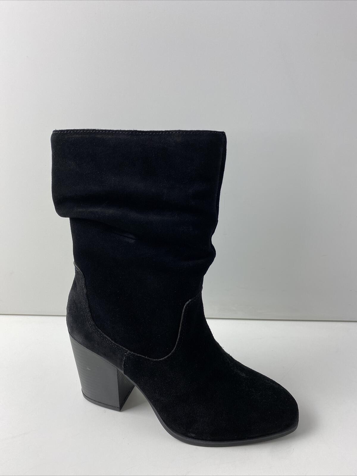 Crown & Ivy ZODIAC Black Suede Pull On Block Heel Ankle Boots Women’s Size 7 M - Very Good