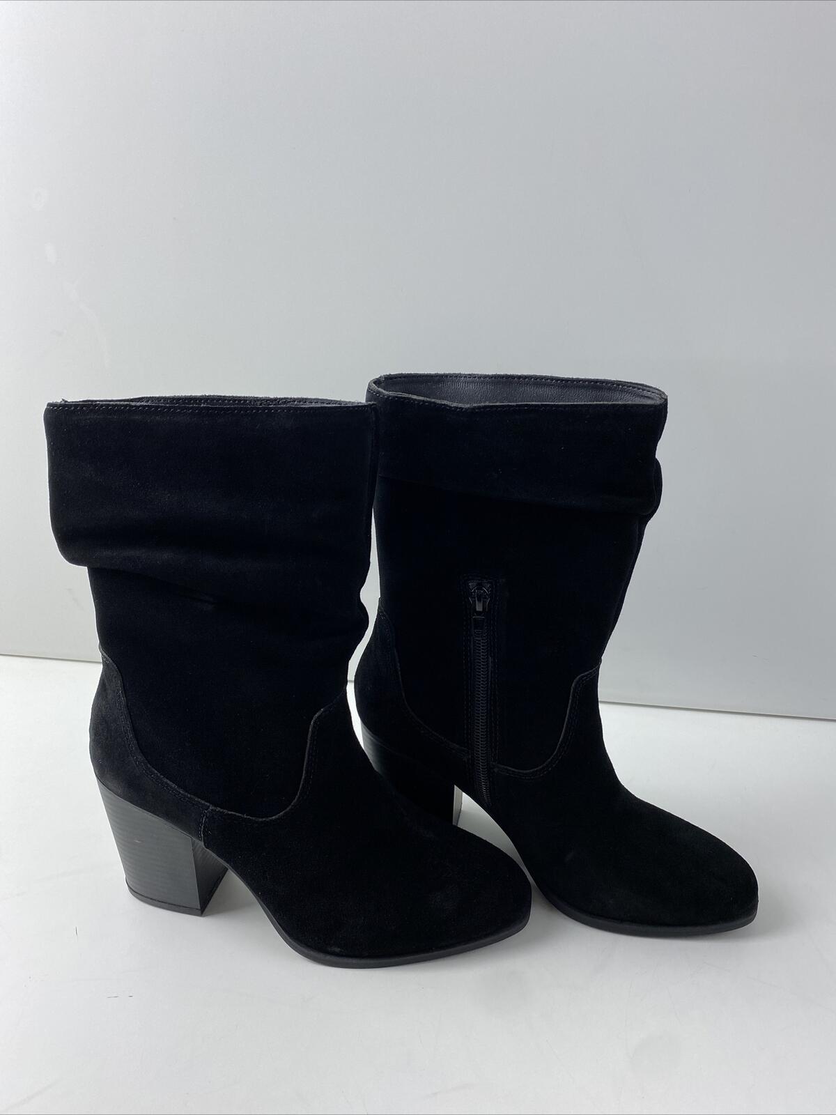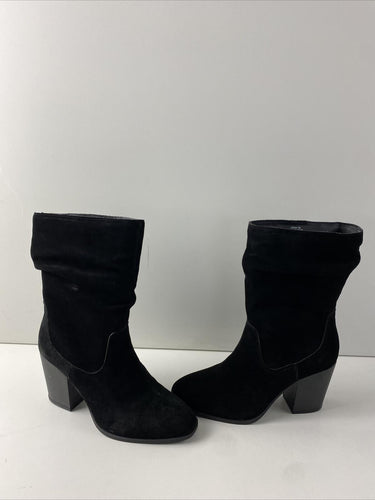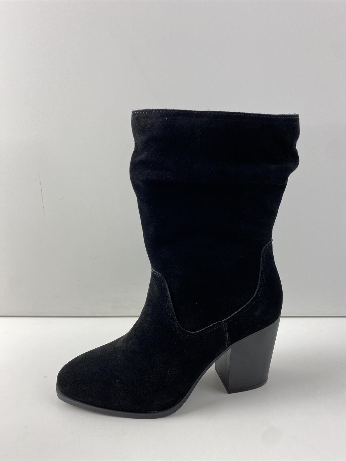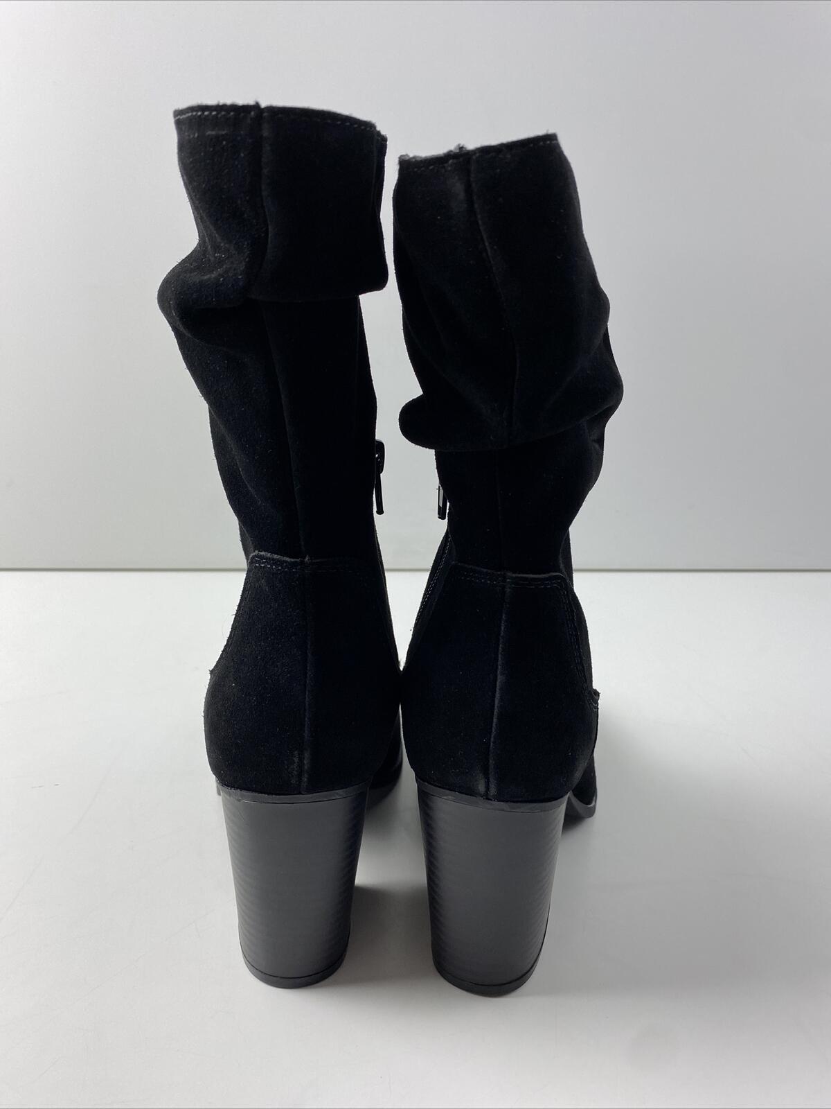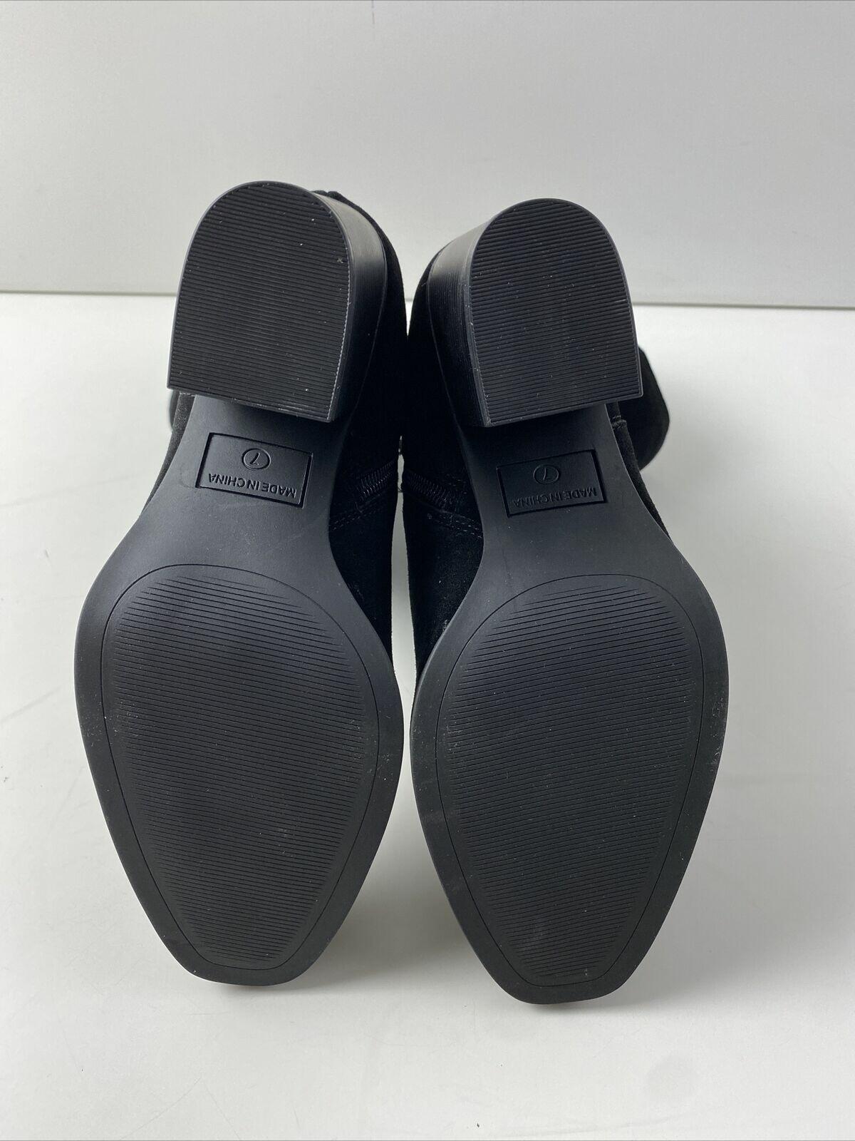 Crown & Ivy ZODIAC Black Suede Pull On Block Heel Ankle Boots Womens Size 7 M