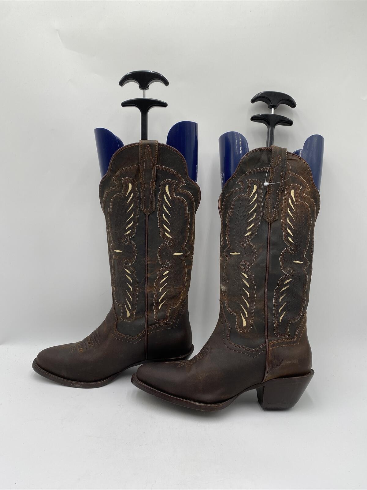 Dan Post TILLIE Brown Leather Round Toe Pull On Western Boots Women’s Size 6.5M - Very Good