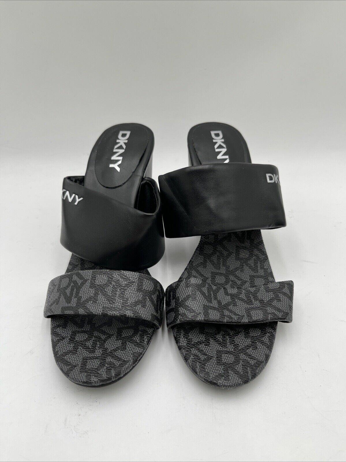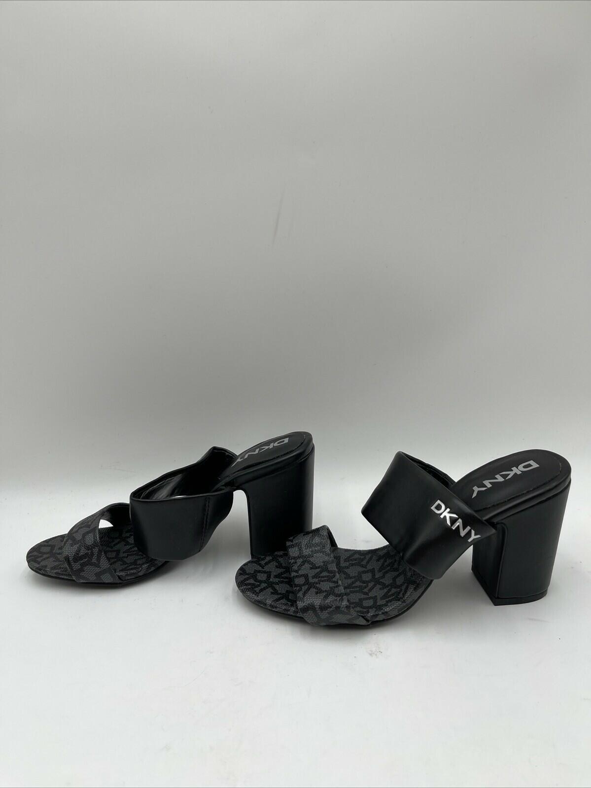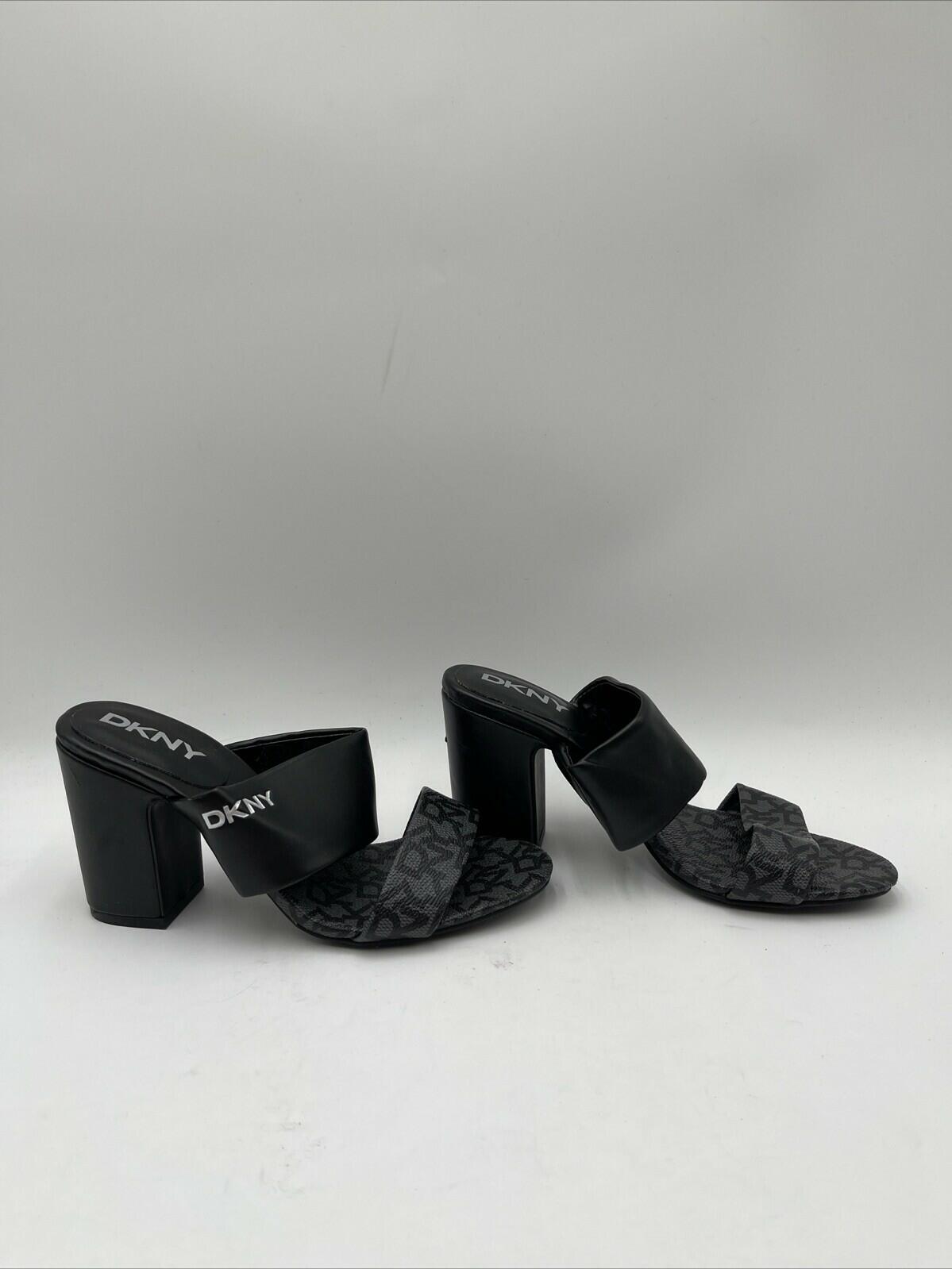 Dkny Women's Hazel Logo Print Heel Sandals Black Size 6.5M/37
