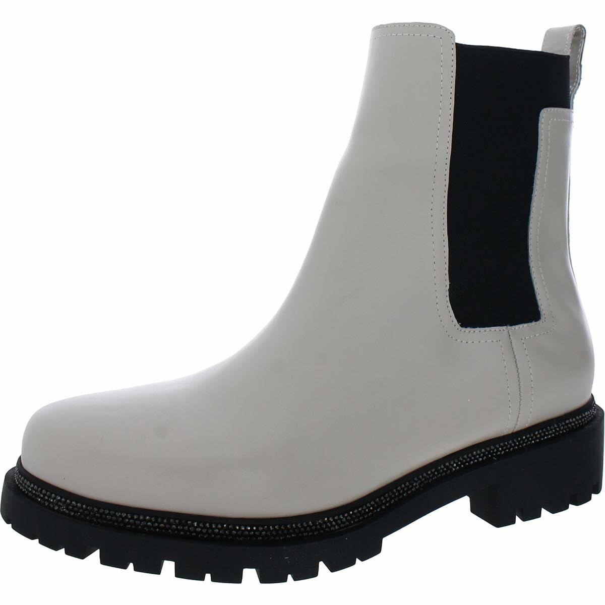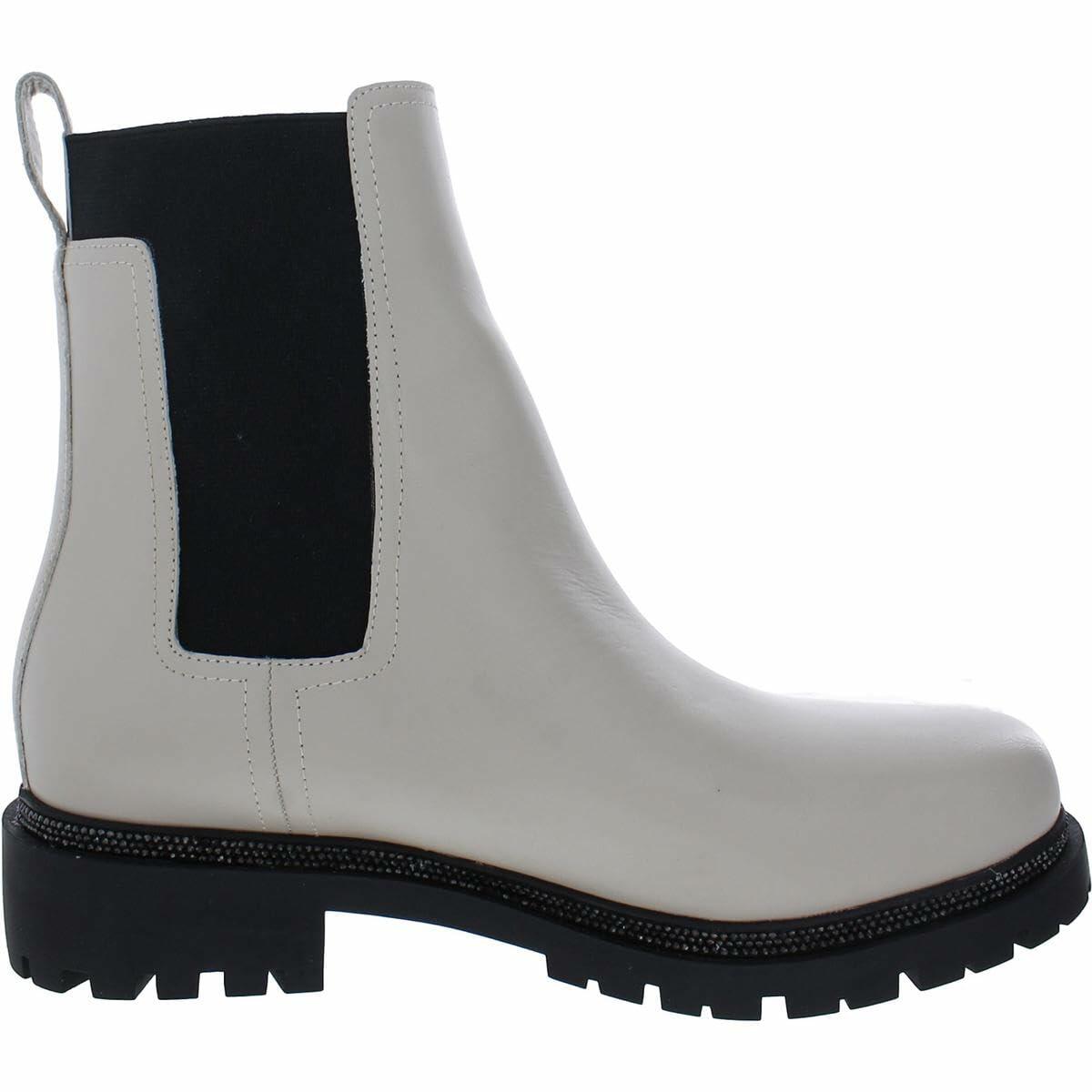 DKNY Womens Rick Leather Pull On Chelsea Boots Black-Ivory 9 Medium (B,M), Dp