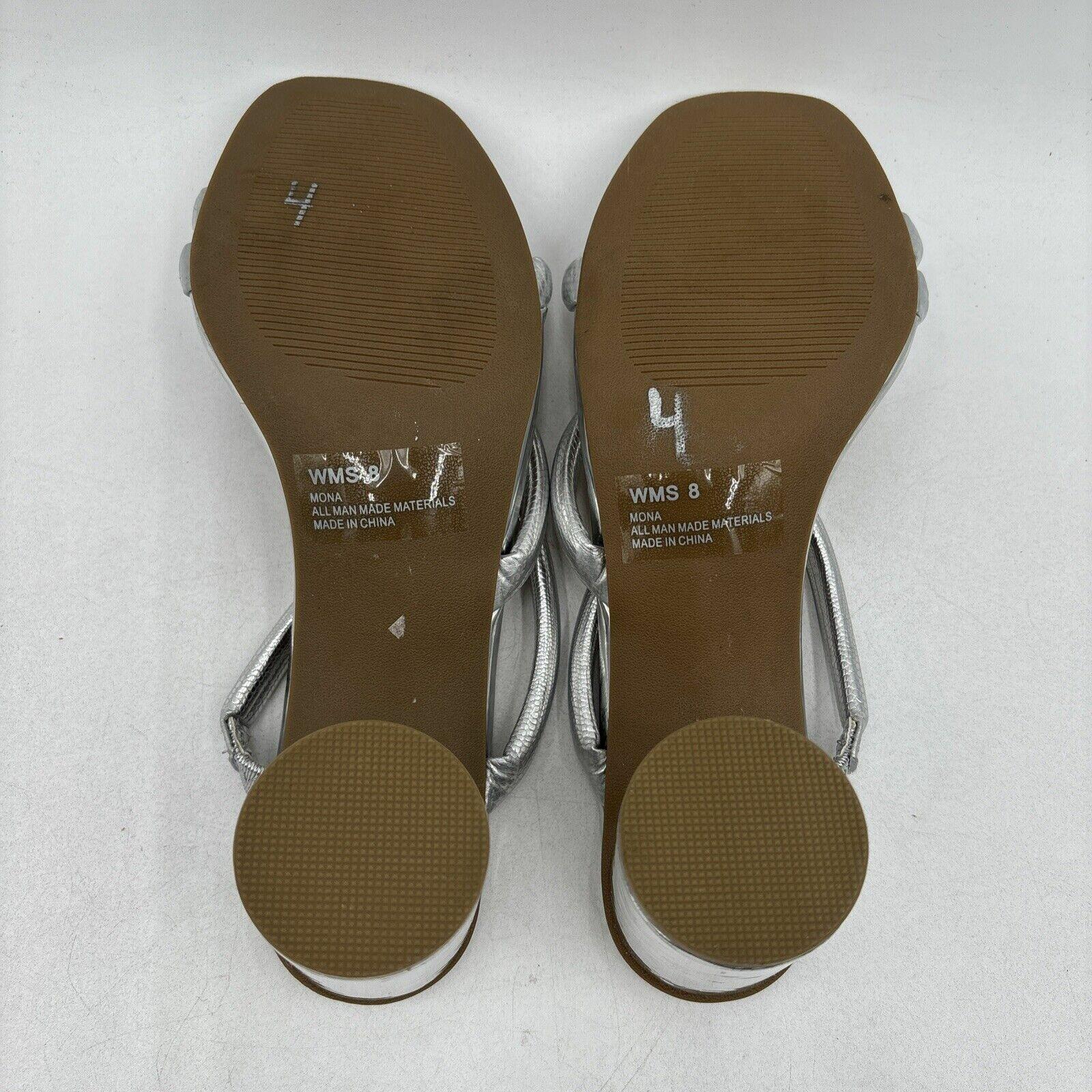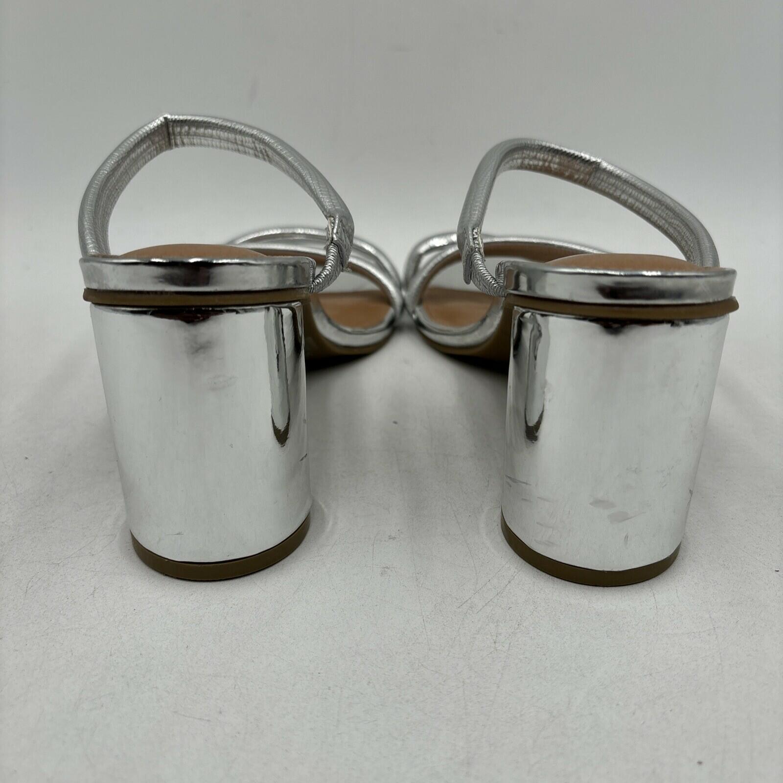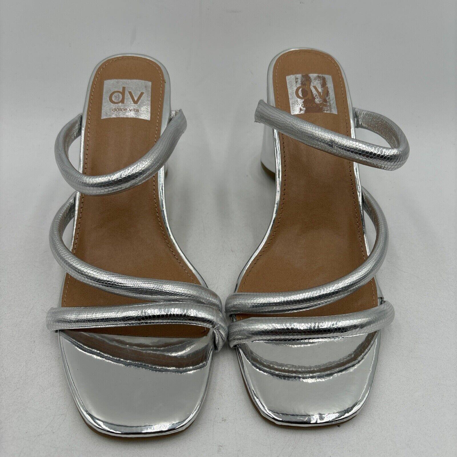 Dolce Vita MONA Silver Faux Leather Square Toe Slip Strappy Sandals, Size 8M - Very Good