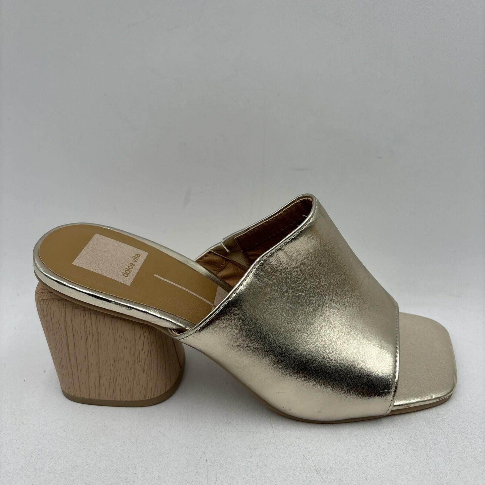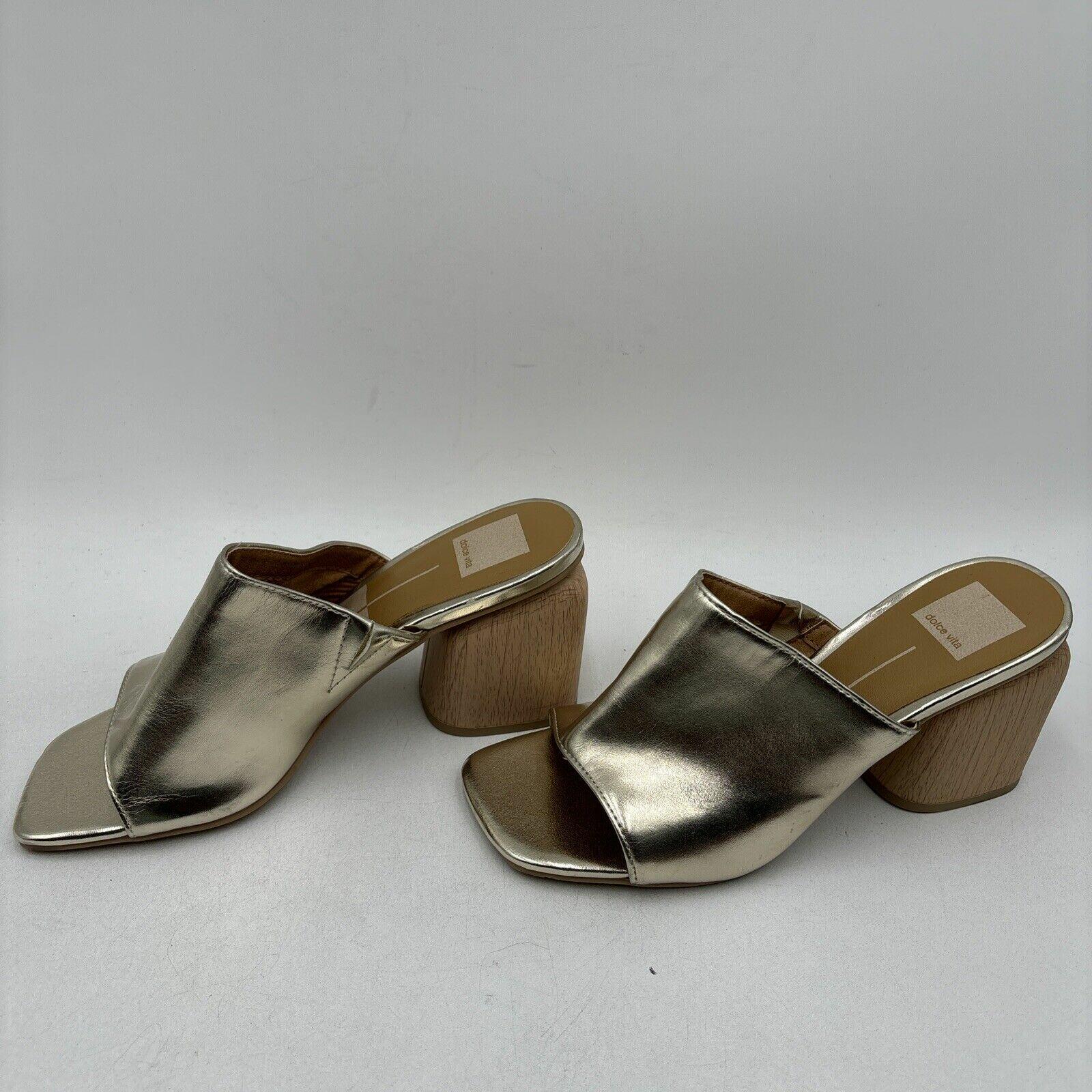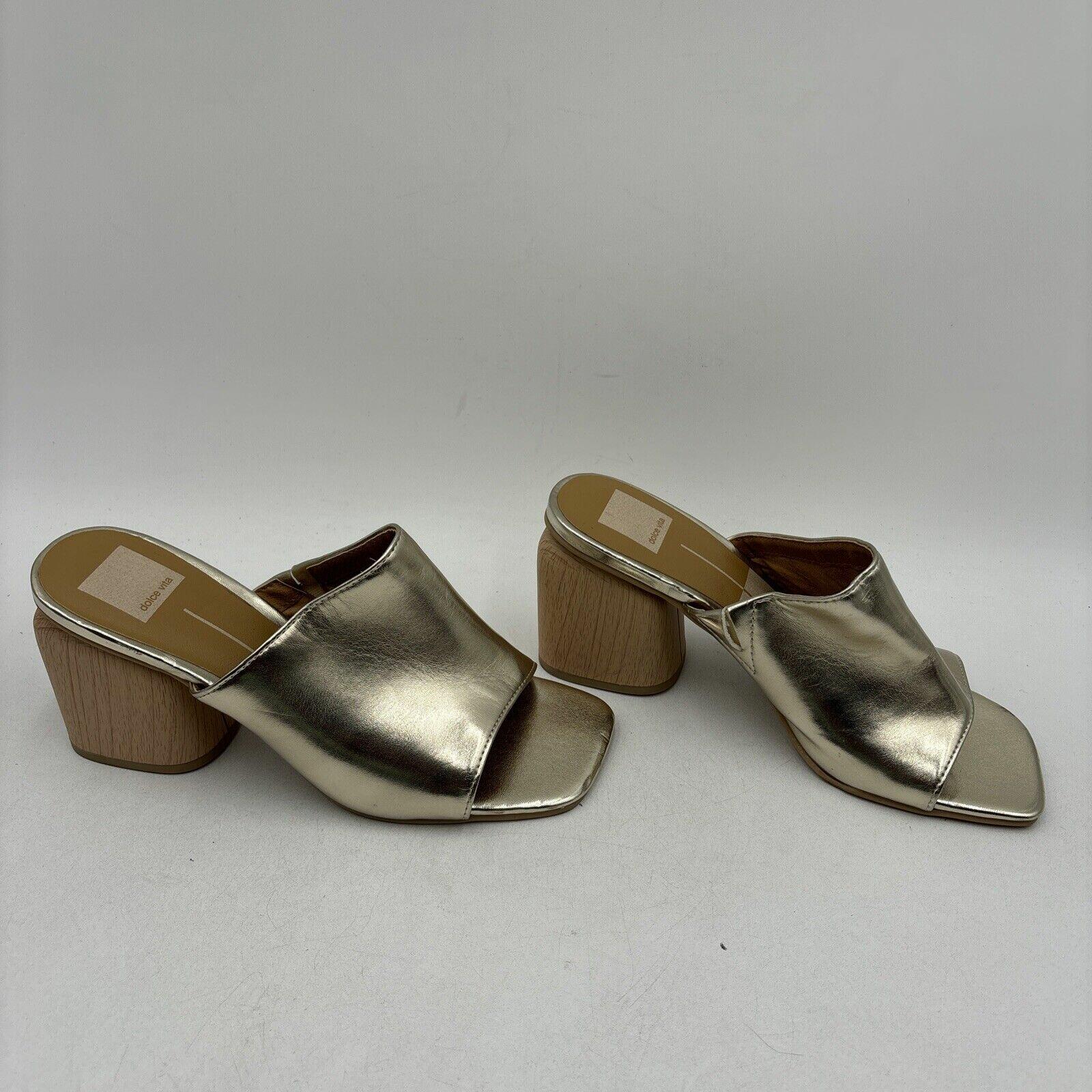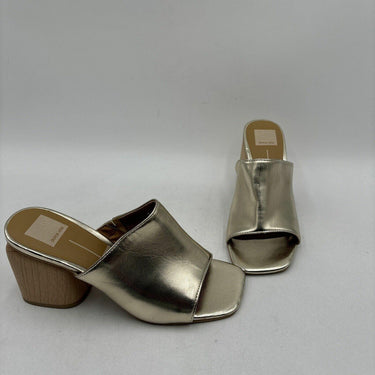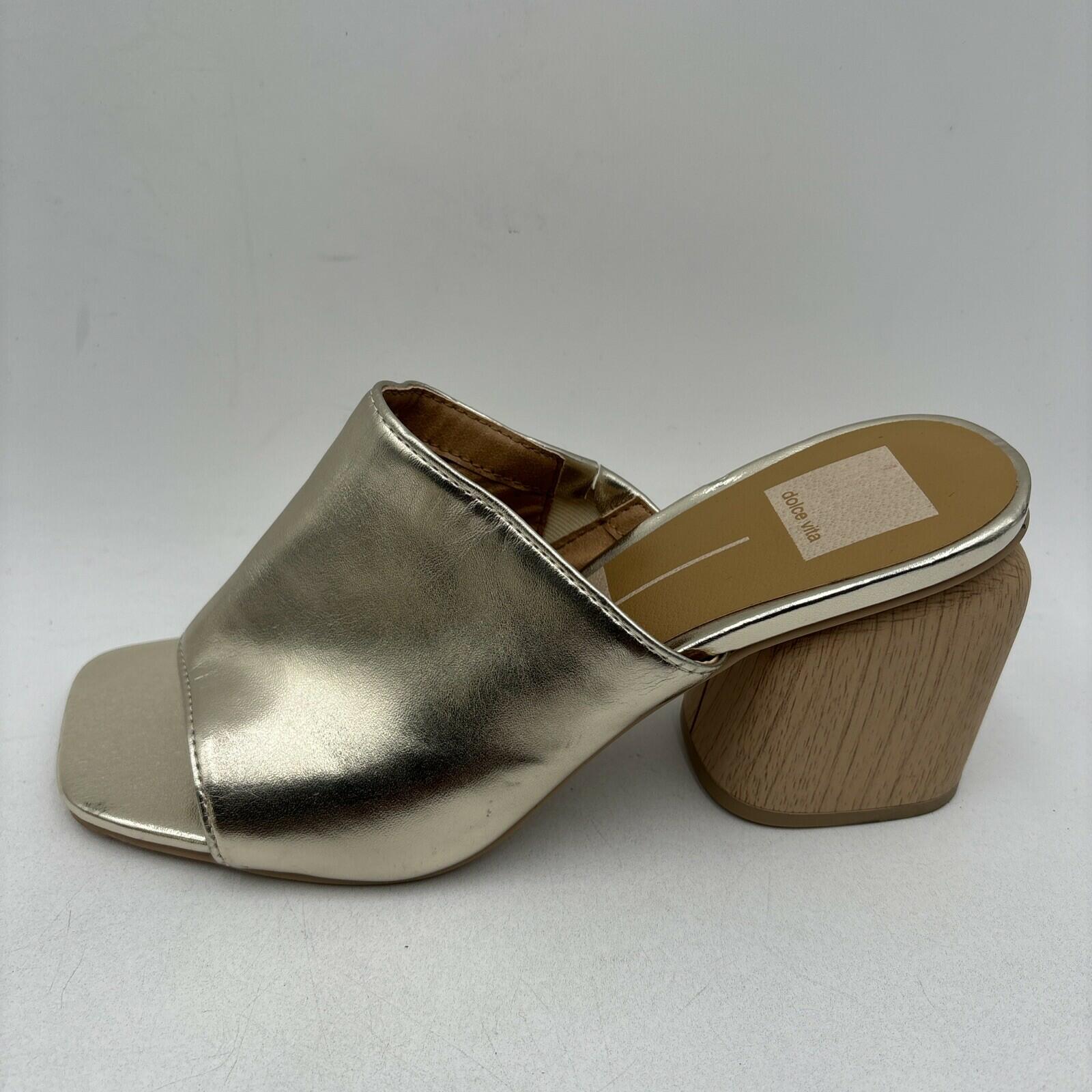 DOLCE VITA Nicco Gold Metallic Open Toe Block-Heel Slip On Sandals, Size 8.5 - Very Good