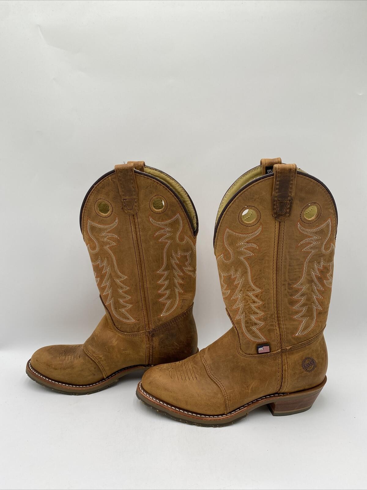 Crafted for both casual and workwear settings, the Double-H Women's Daniela Leather Boots blend practicality with classic style. In a versatile brown hue, these size 9M boots feature a mid-calf shaft and a round toe design, catering to a comfortable fit and easy wearability.
