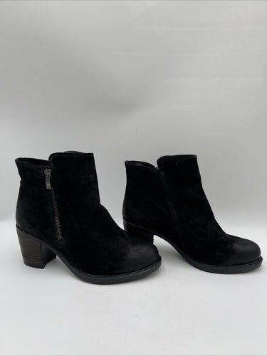 The black suede material is soft and durable, making them a great investment for your wardrobe. These boots are size 39 and have a non-customized, vintage look. The Eric Michael brand is known for their quality footwear and these boots live up to that standard.