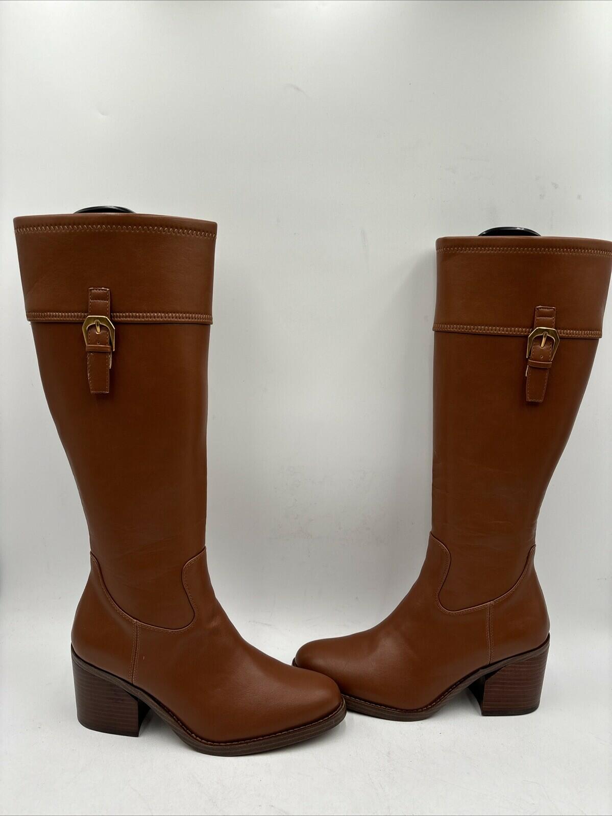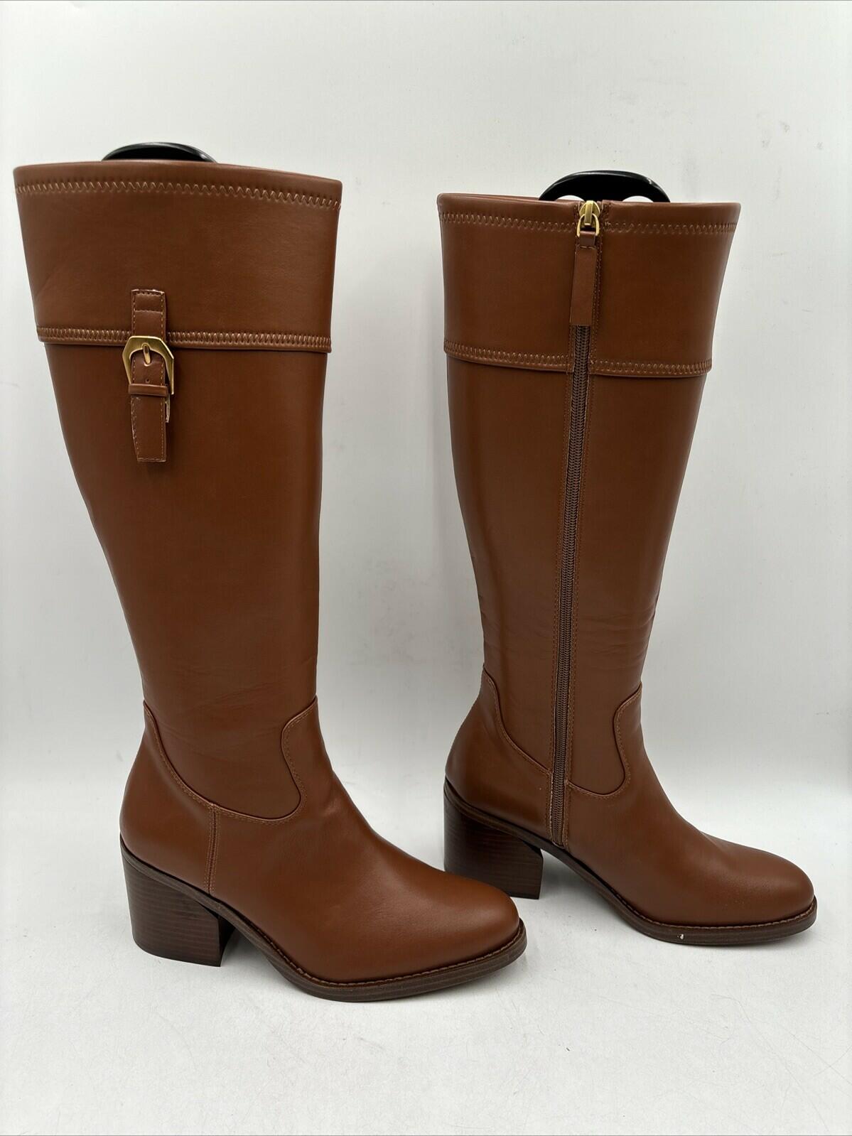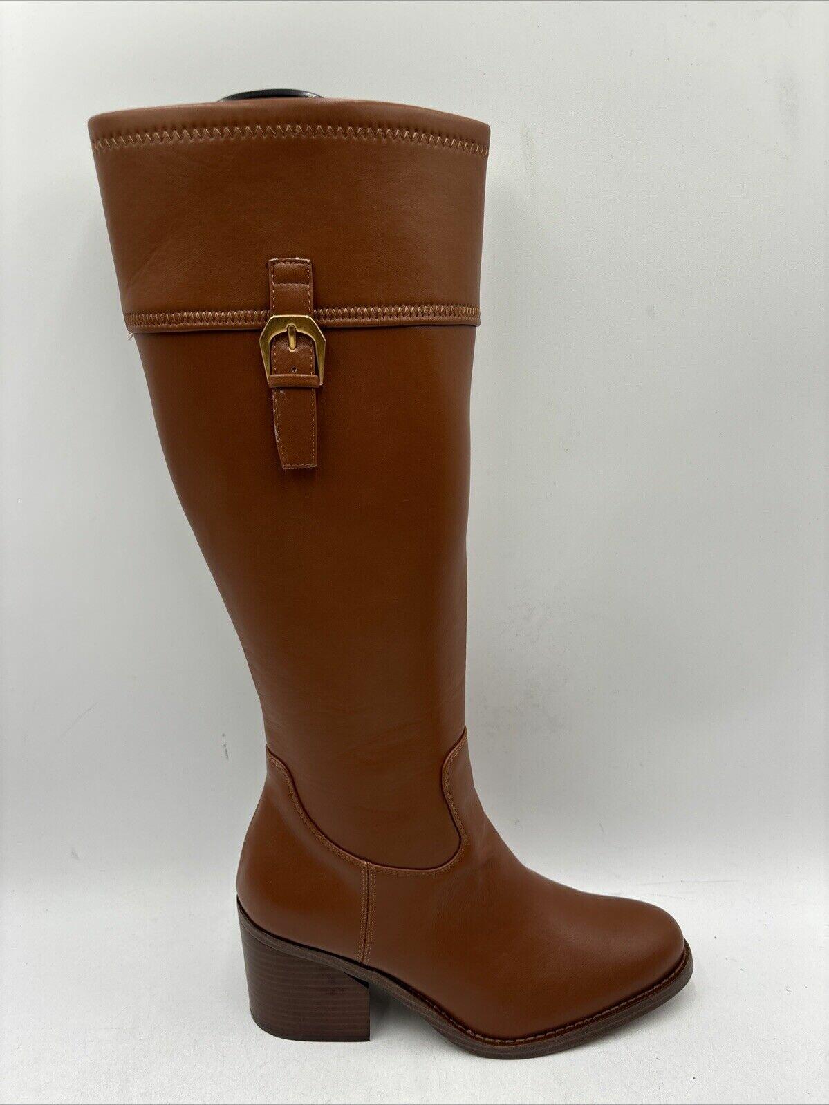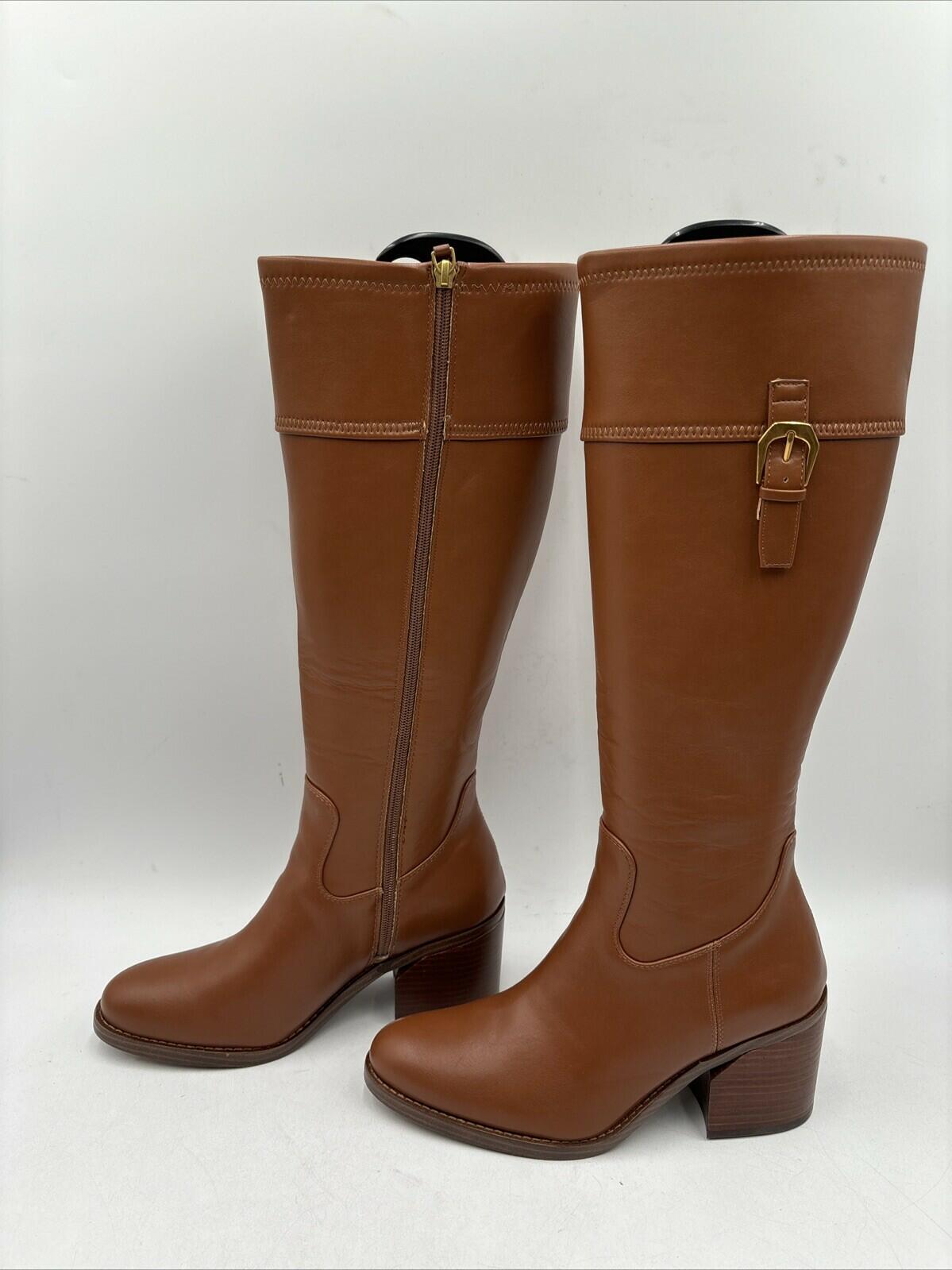 Franco Sarto ADABELLA Caramel Almond Toe Synthetic Side Zip Knee Boots, Size 9.5 - Very Good