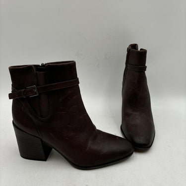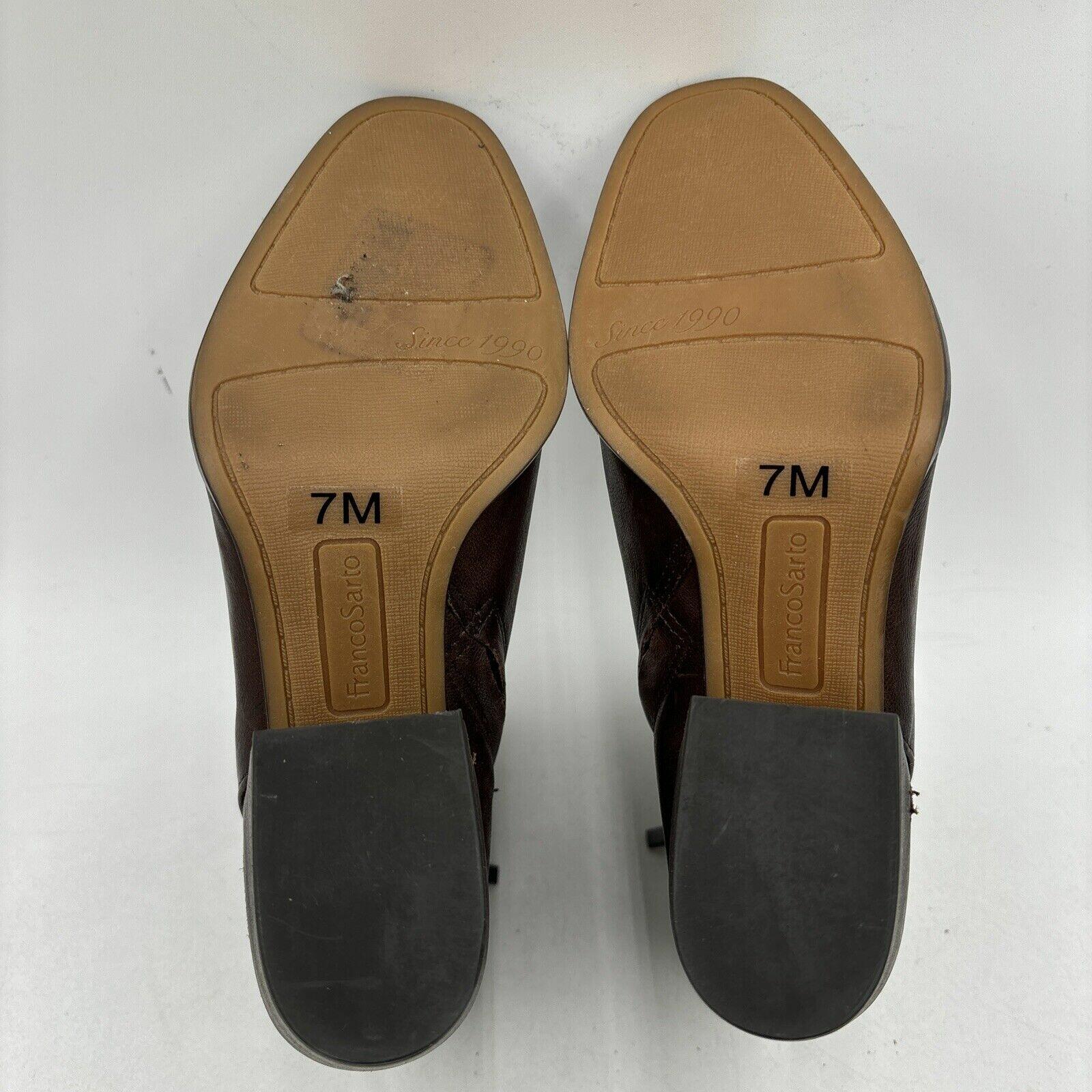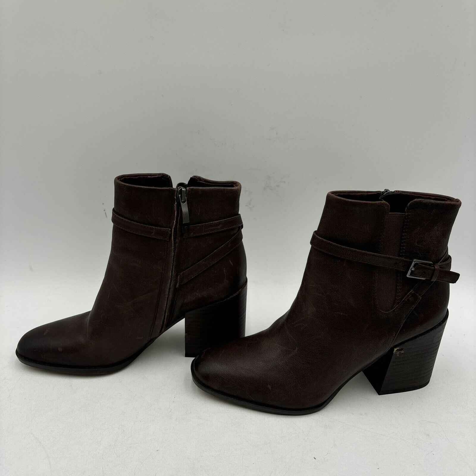Franco Sarto CHELLE Brown Leather Side Zip Block Heel Ankle Boots Women Size 7 M - Very Good