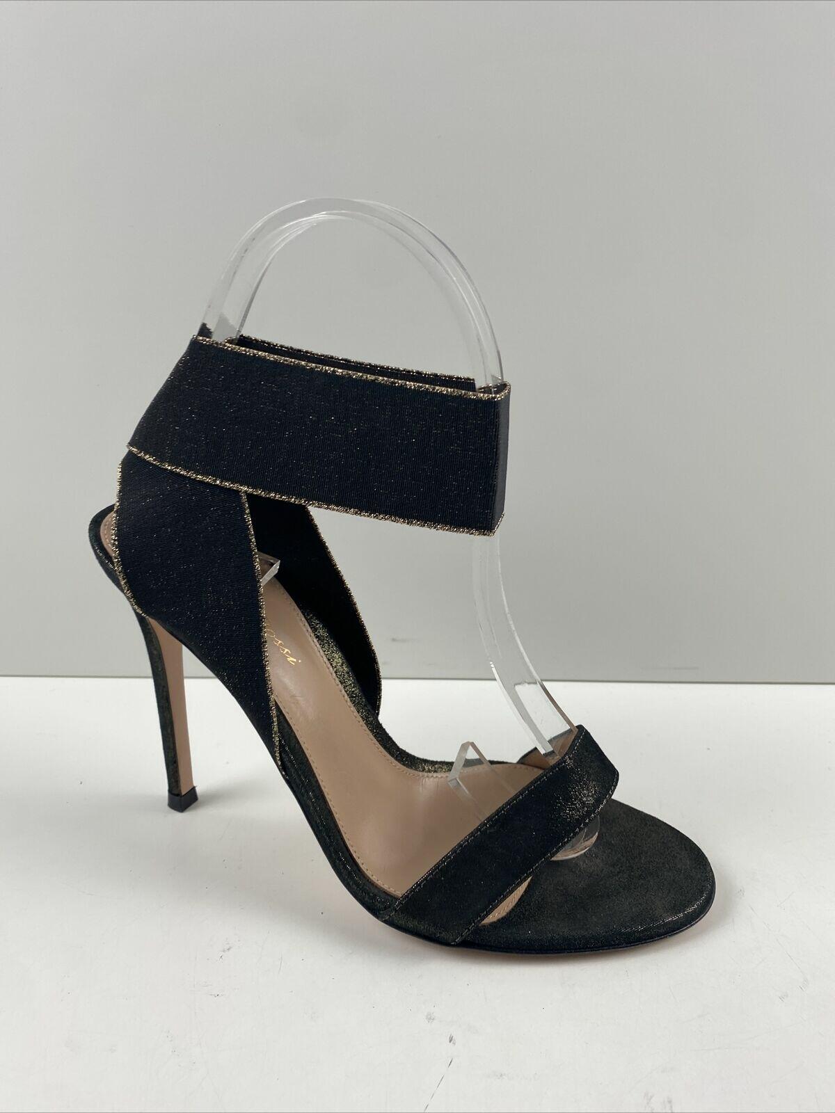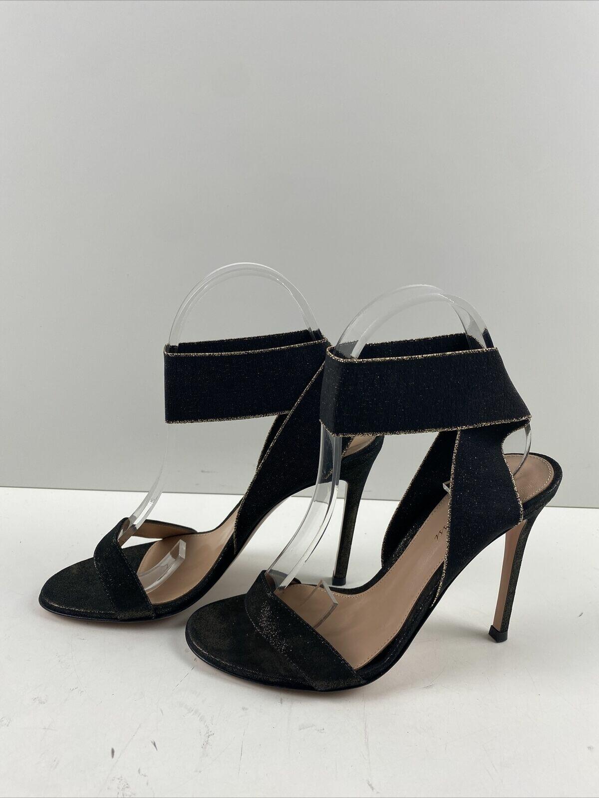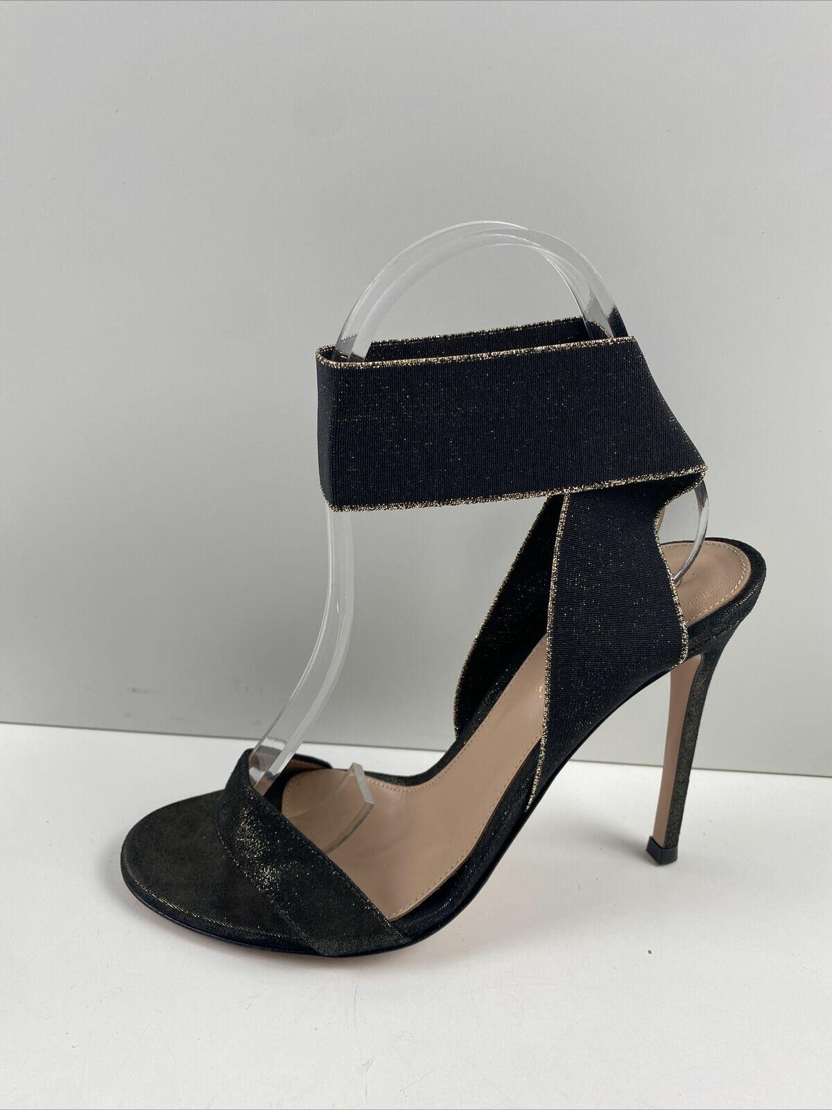 Gianvito Rossi Black/Gold Fabric Elastic Ankle Wrap High Heel Sandals Size 37 - Very Good