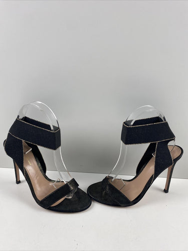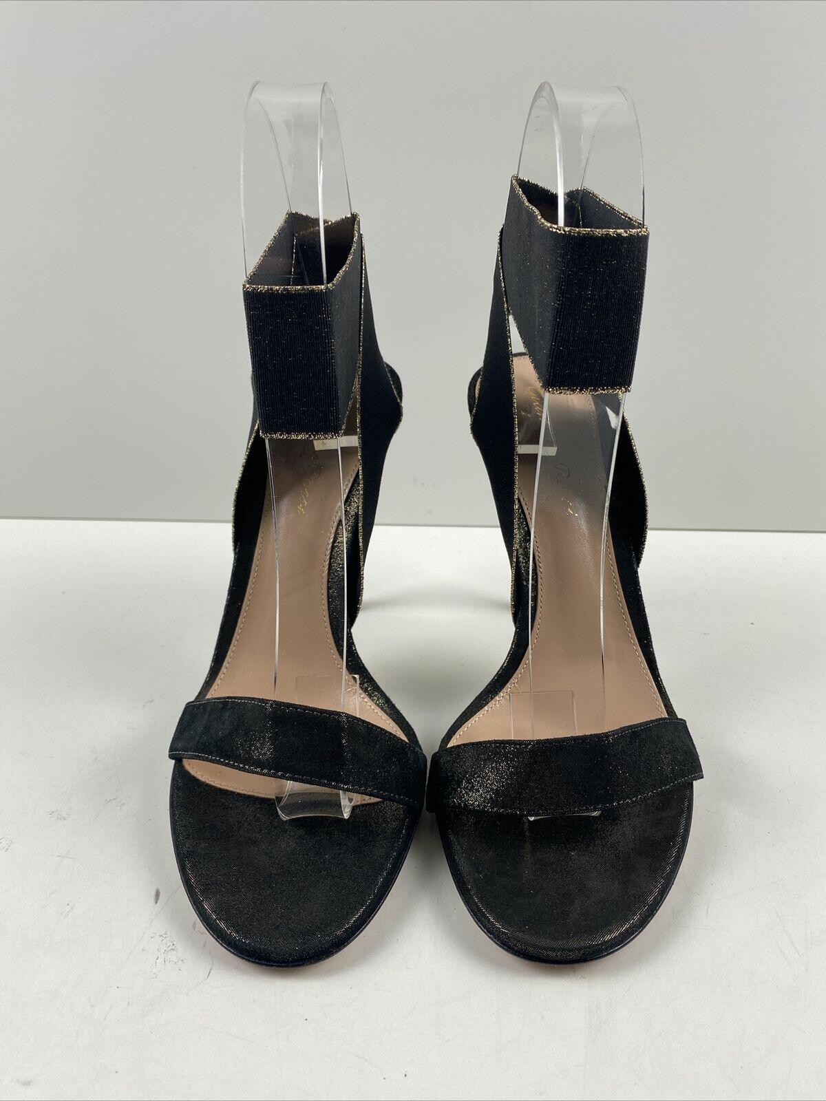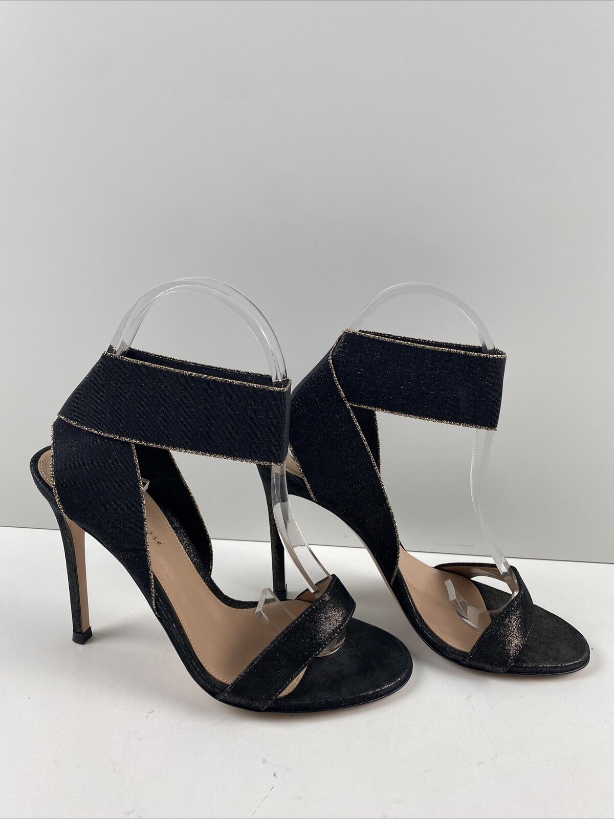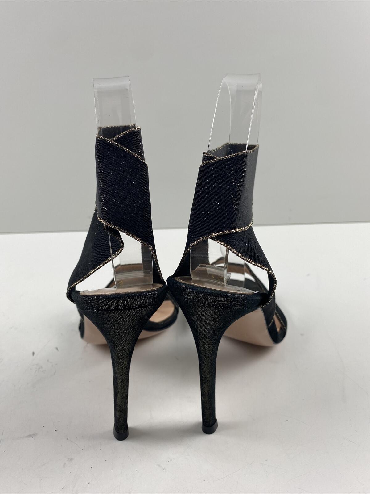 Gianvito Rossi Black/Gold Fabric Elastic Ankle Wrap High Heel Sandals Size 37 - Very Good