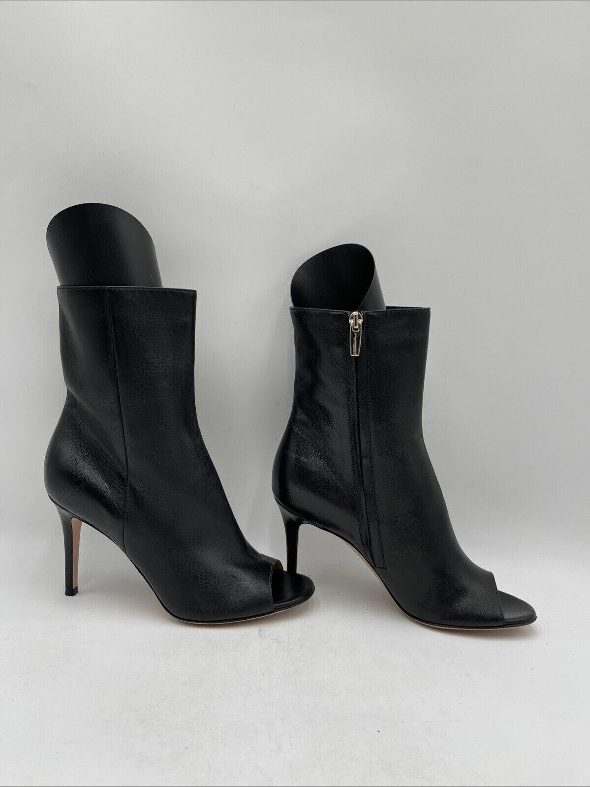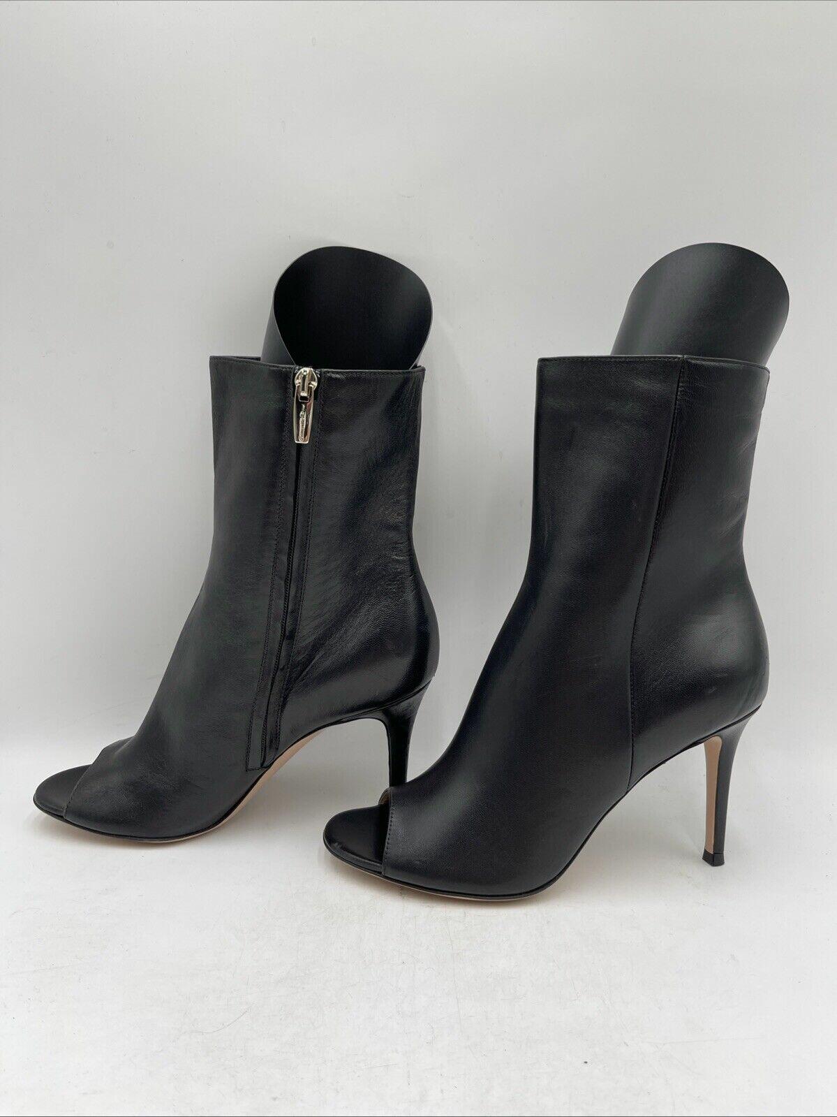 Gianvito Rossi Black Leather Peep Toe Side Zip High Heel Ankle Boots Size 38 - Very Good - Ufashion