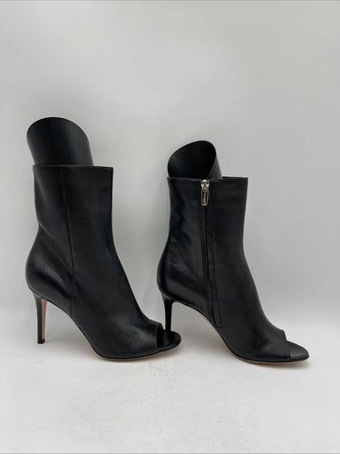 Gianvito Rossi Black Leather Peep Toe Side Zip High Heel Ankle Boots Size 38 - Very Good