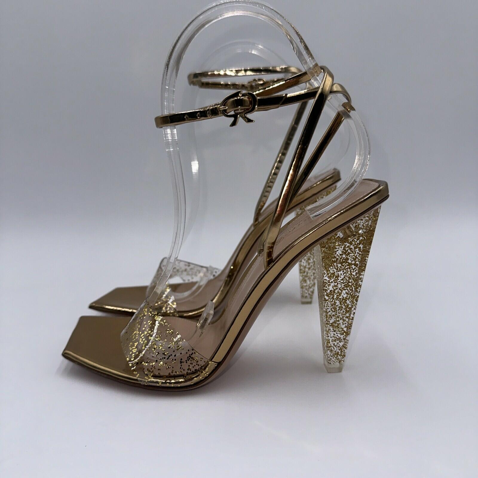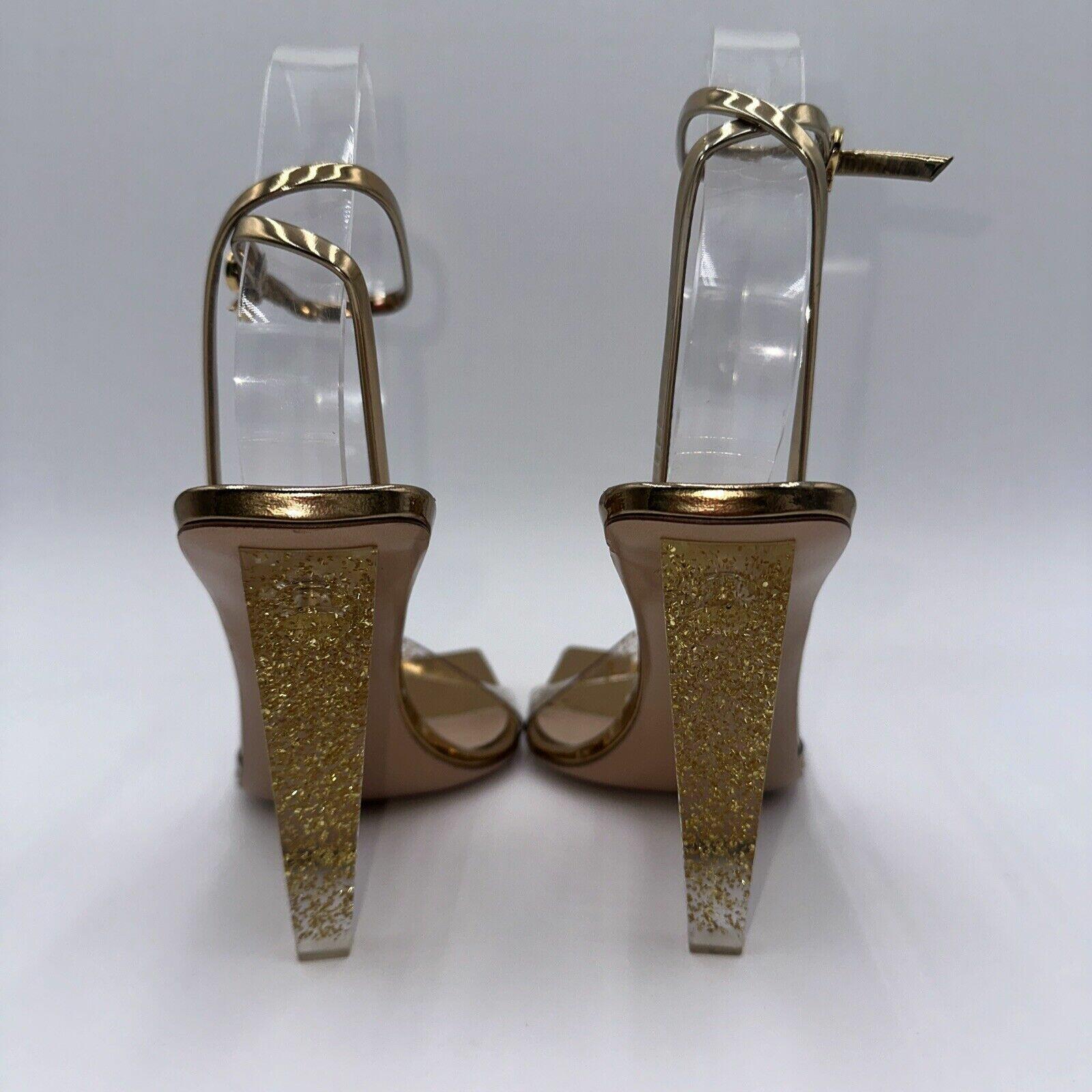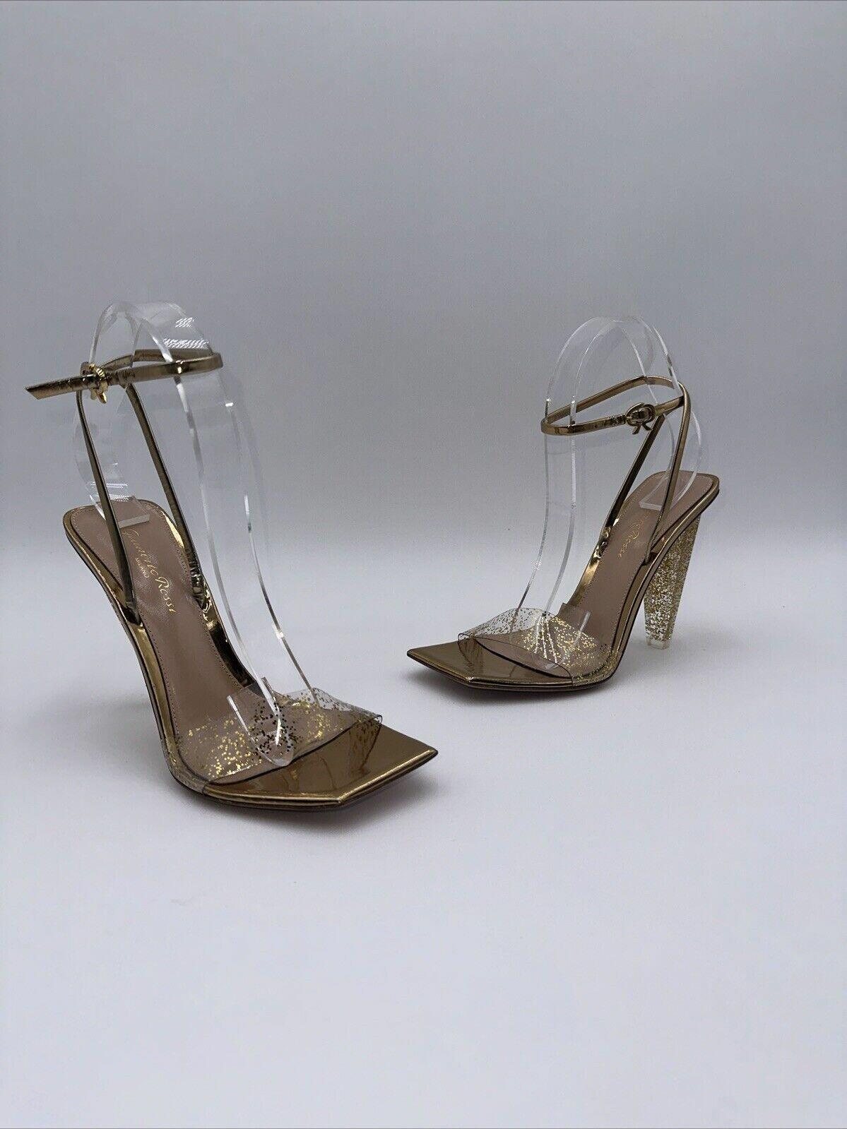 Gianvito Rossi Gold Glitter Stiletto Sandals Leather Heel Size 37