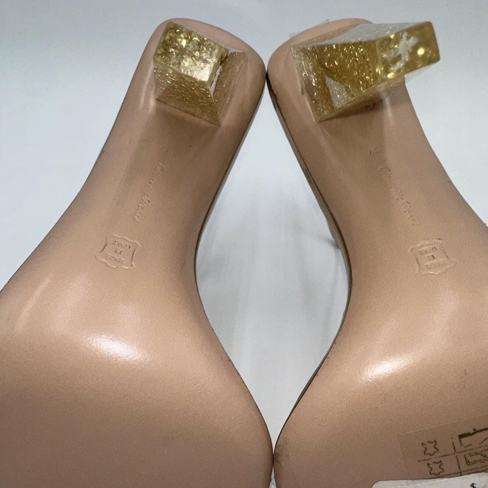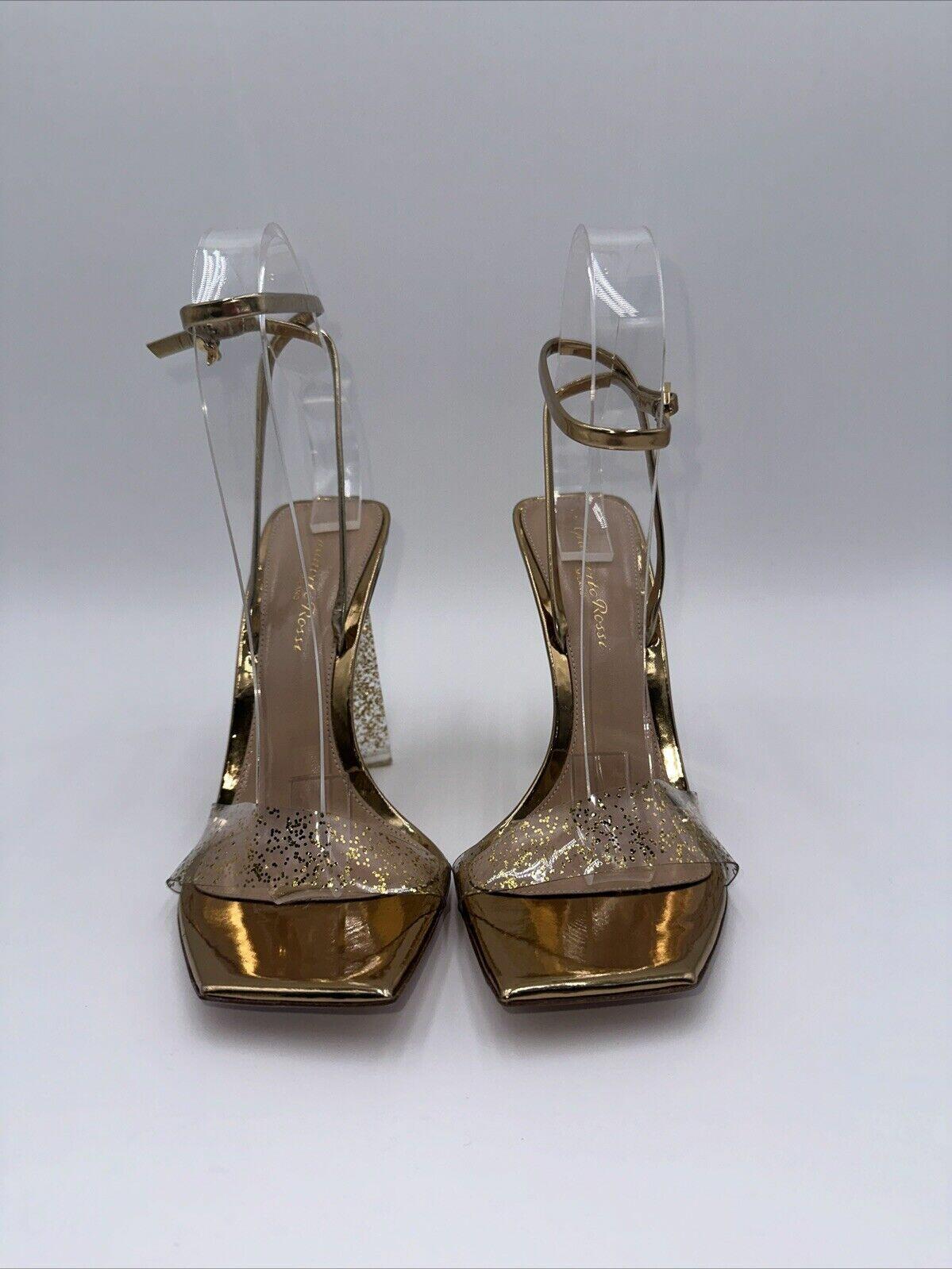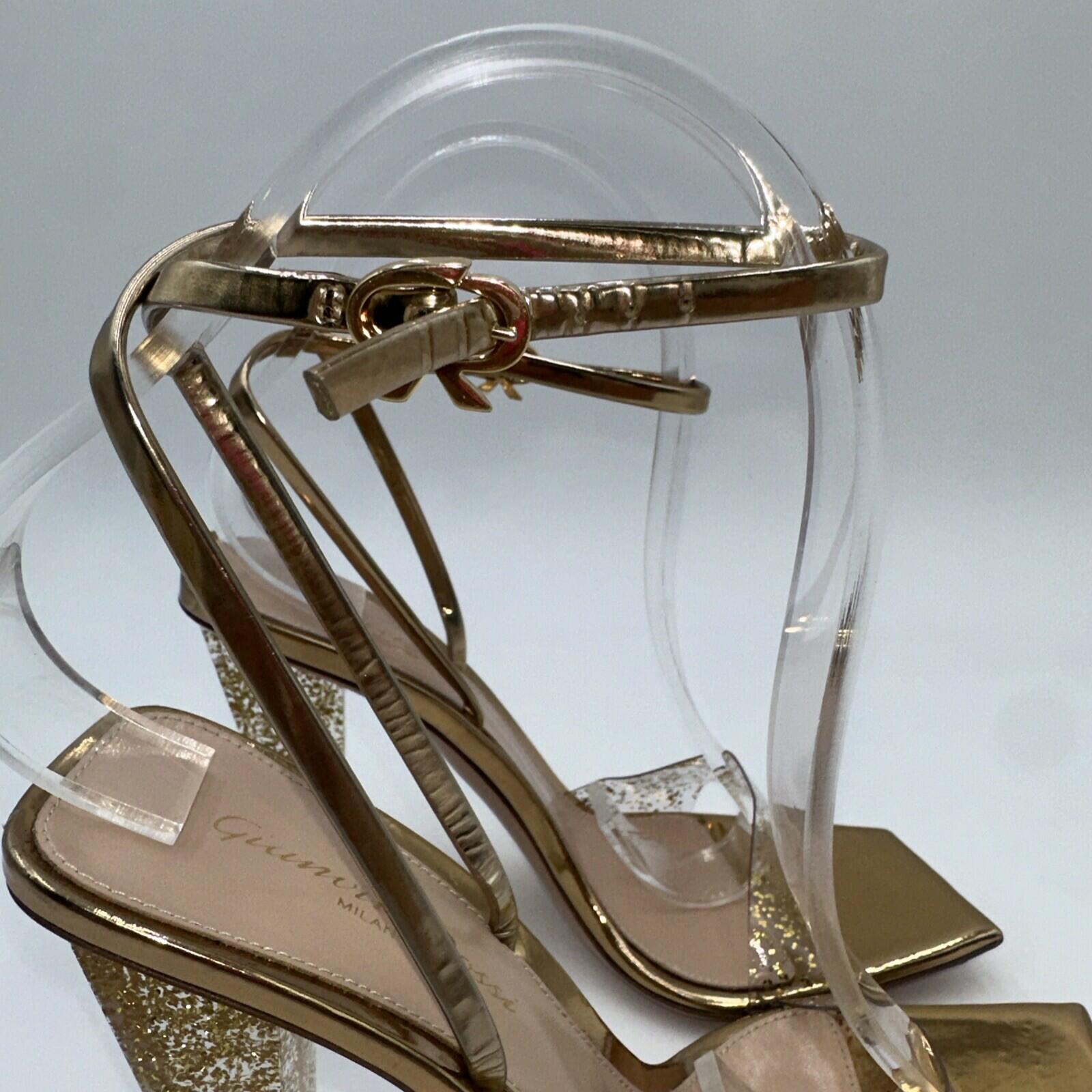 Gianvito Rossi Gold Glitter Stiletto Sandals Leather Heel Size 37