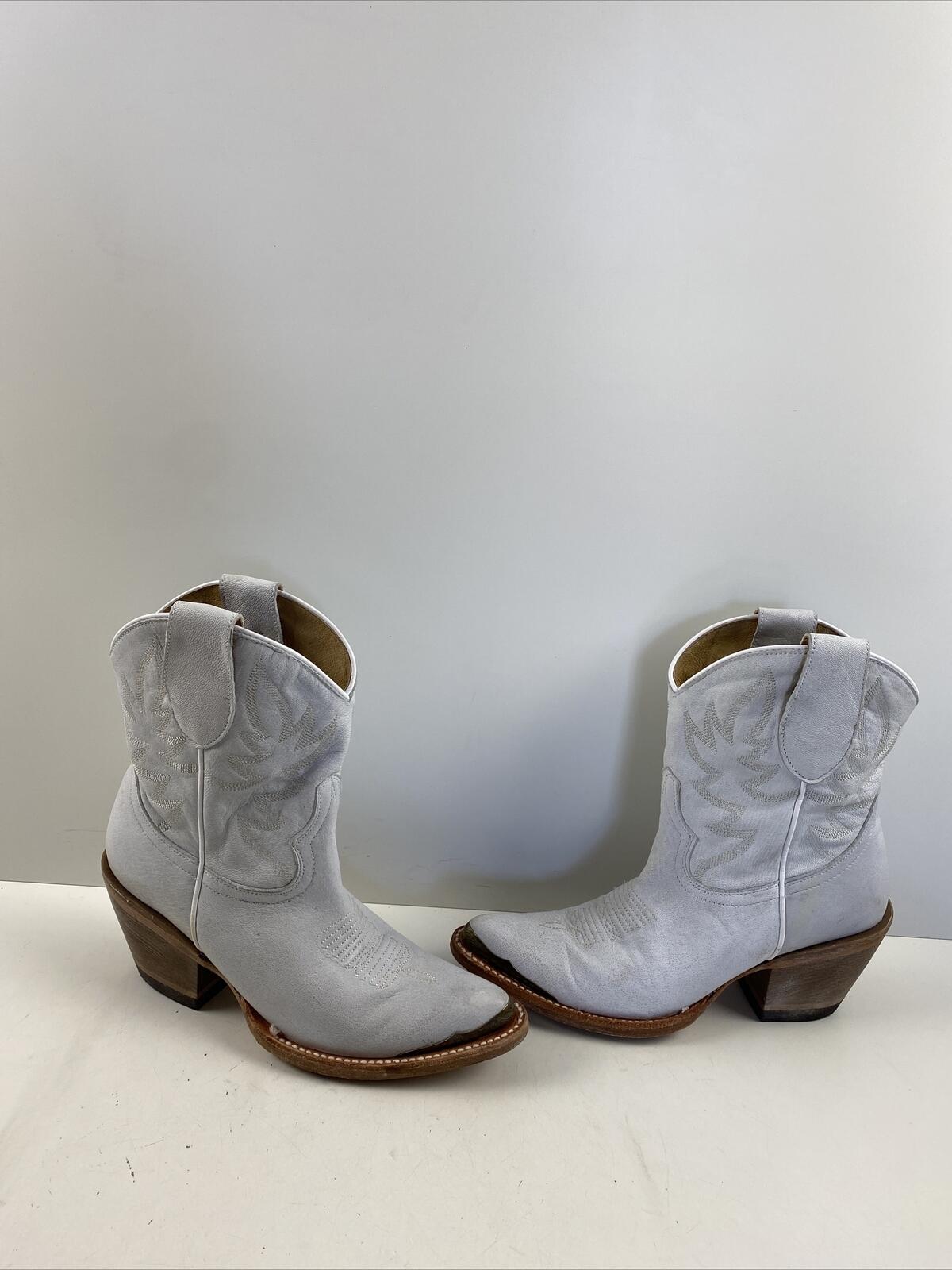 Idyllwind WHEELS White Leather Round Toe Pull On Western Booties Women Size 6.5B - Very Good
