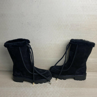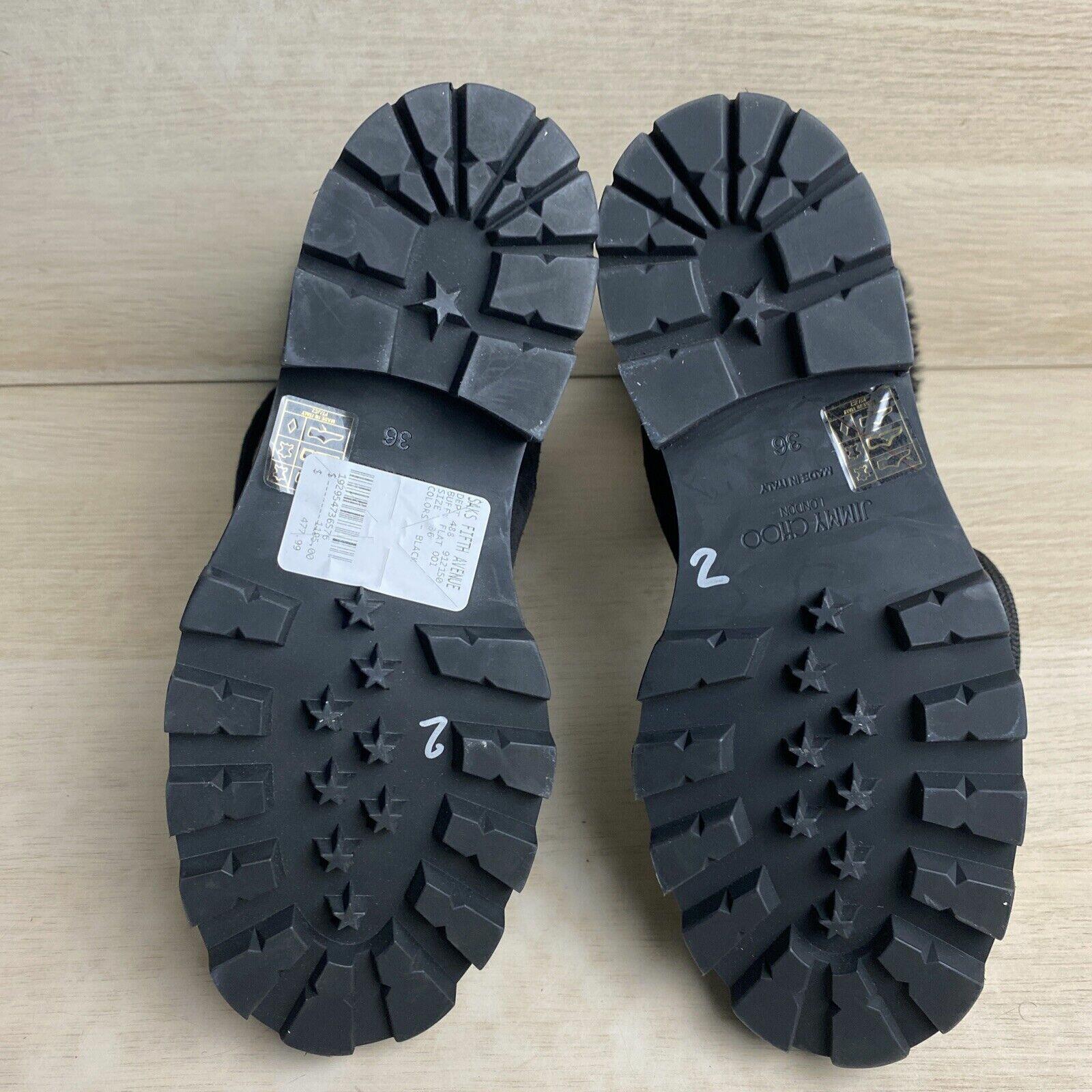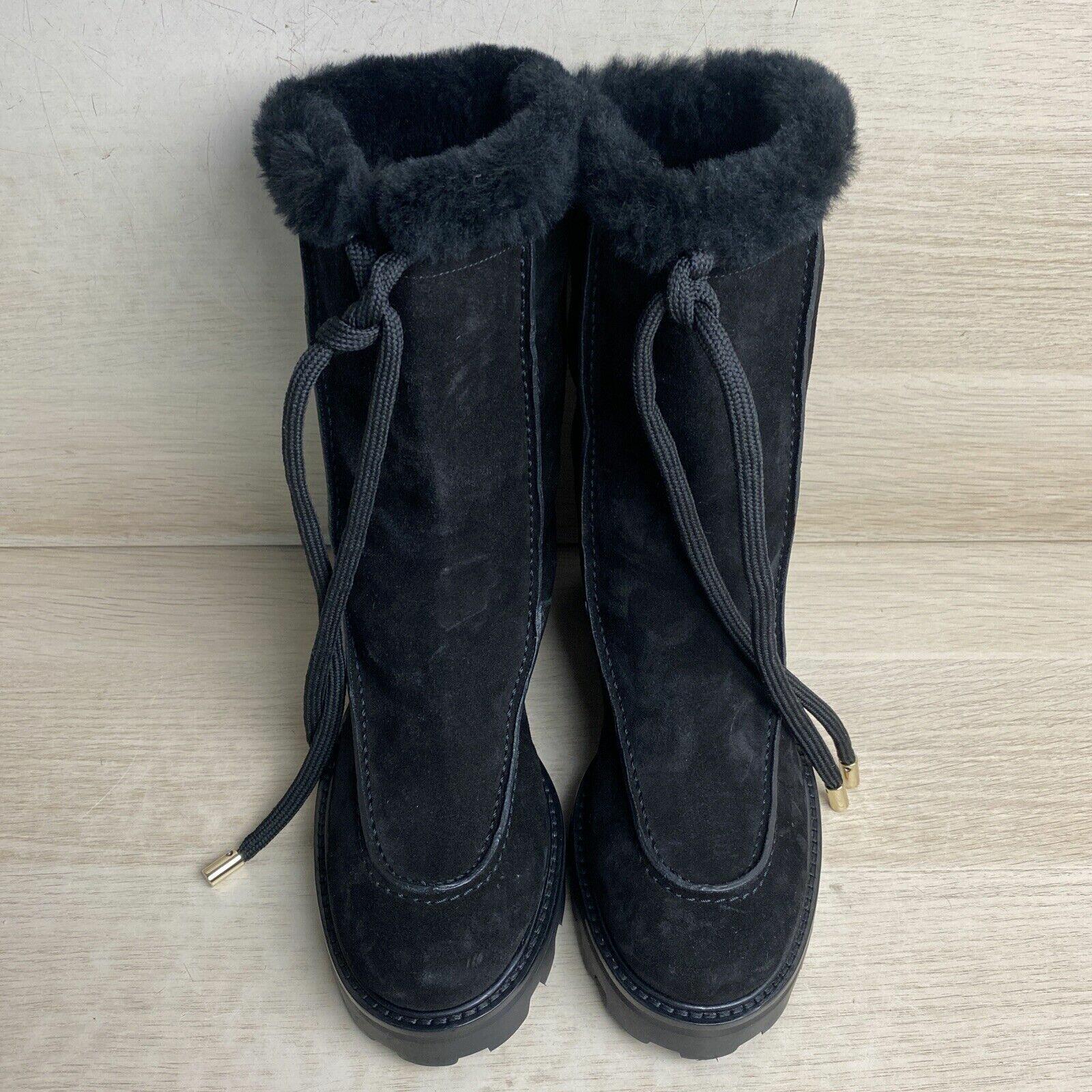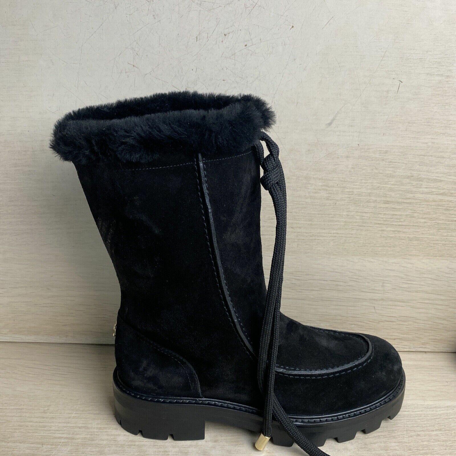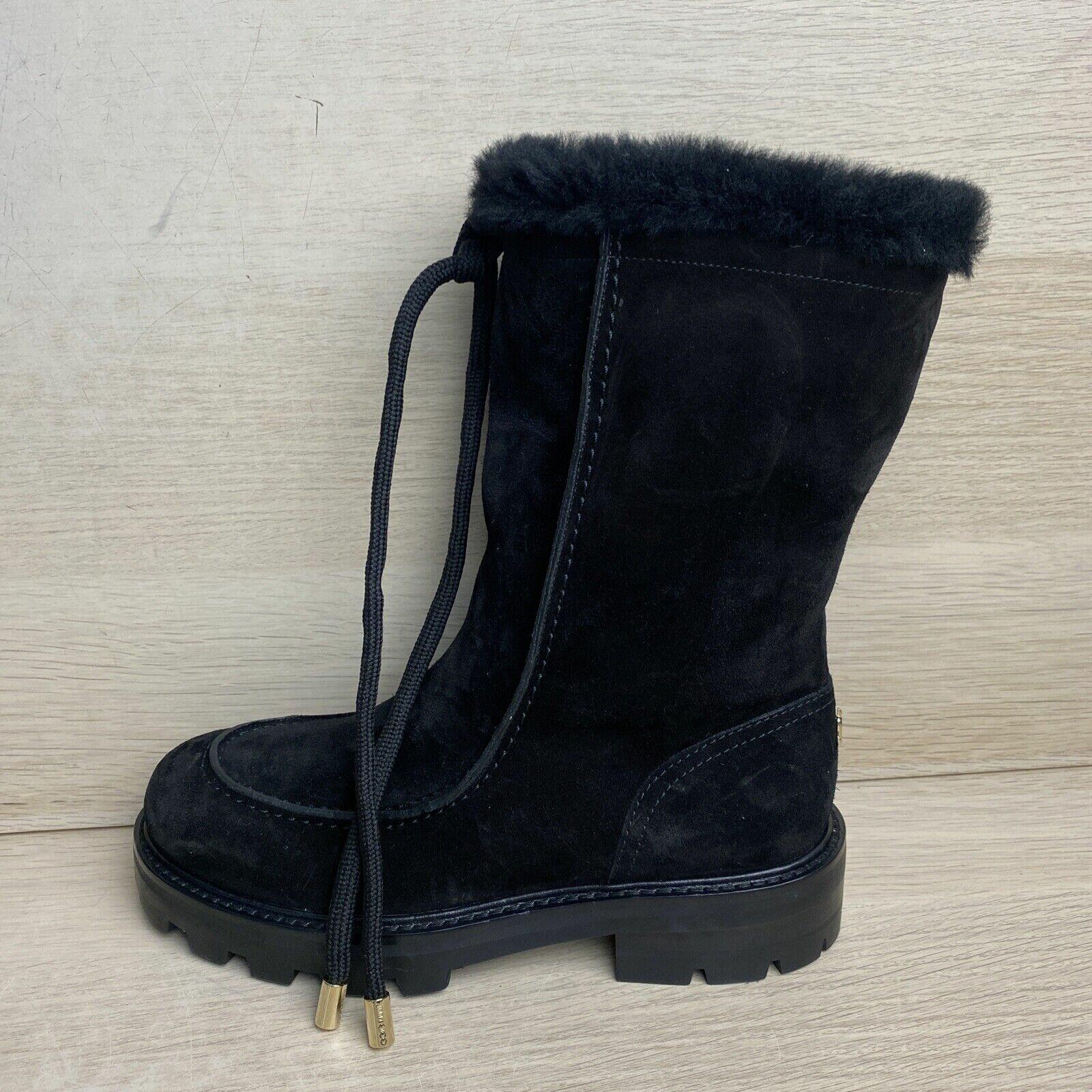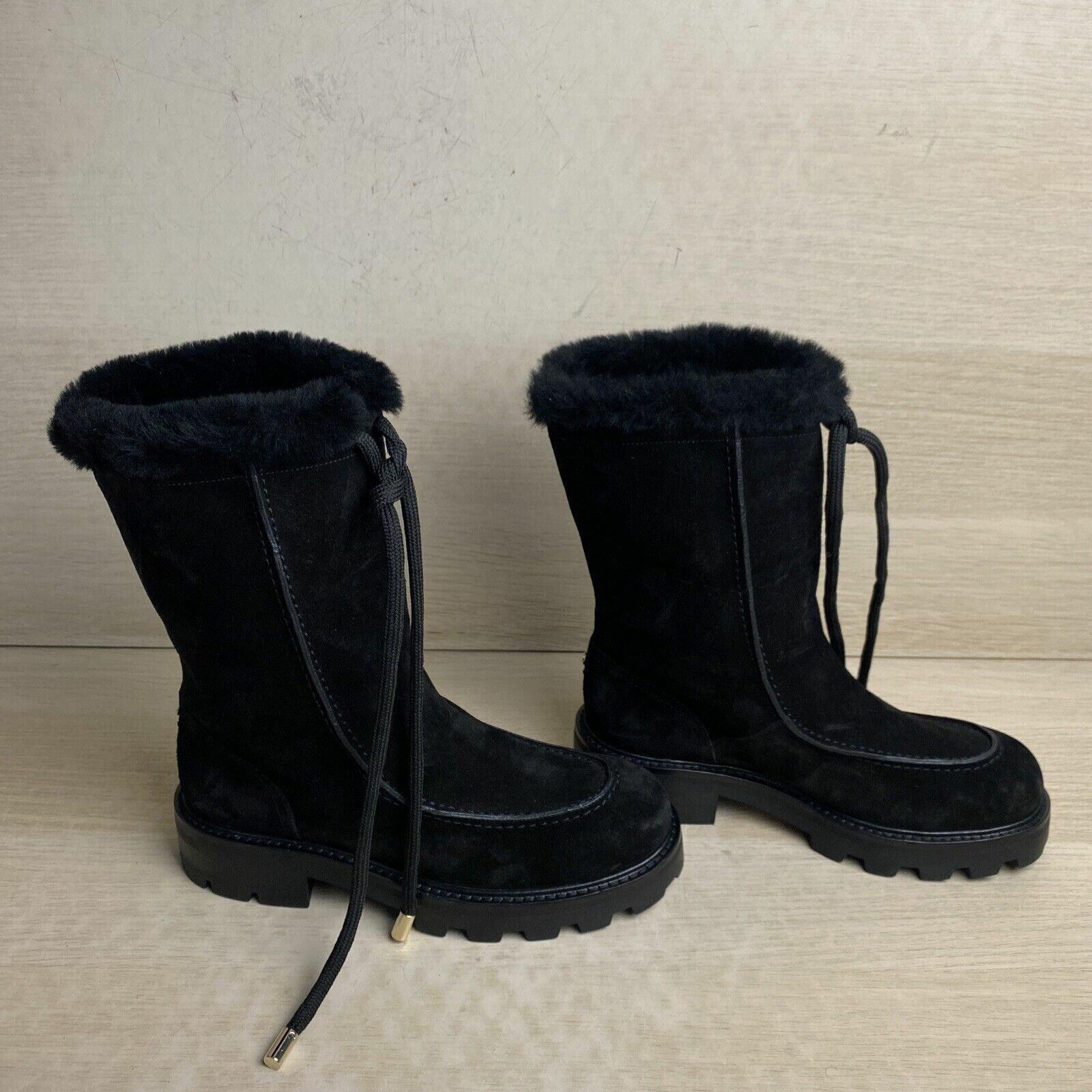 JIMMY CHOO “Buffy Flat” Black Suede Fur Lined Round Toe Pull On Winter Boots, 36 - Very Good